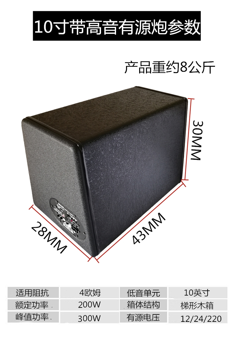 자동차 서브 우퍼 오디오 10 인치 12V24V 자동차 트렁크 서브 우퍼 블루투스 홈 액티브 오디오