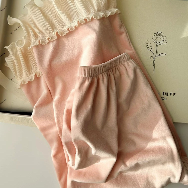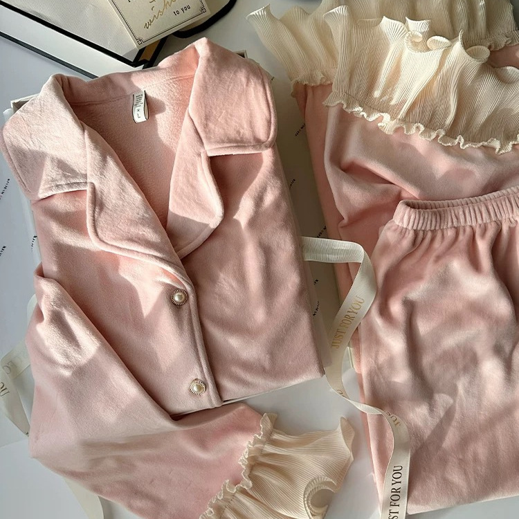 프랑스 공주풍 잠옷 여성용 가을 겨울 섬 벨벳 양면 벨벳 두꺼운 달콤한 러플 고급 홈웨어