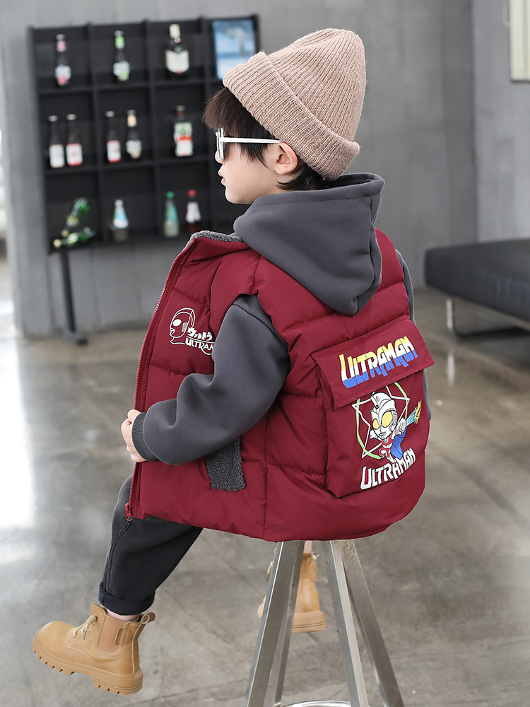 소년 조끼 어린이 2024 년 새 가을 겨울 아기 한국 스타일 두껍게 면화 윈치 아우터 착용 울트라 맨 조끼스토어 가기