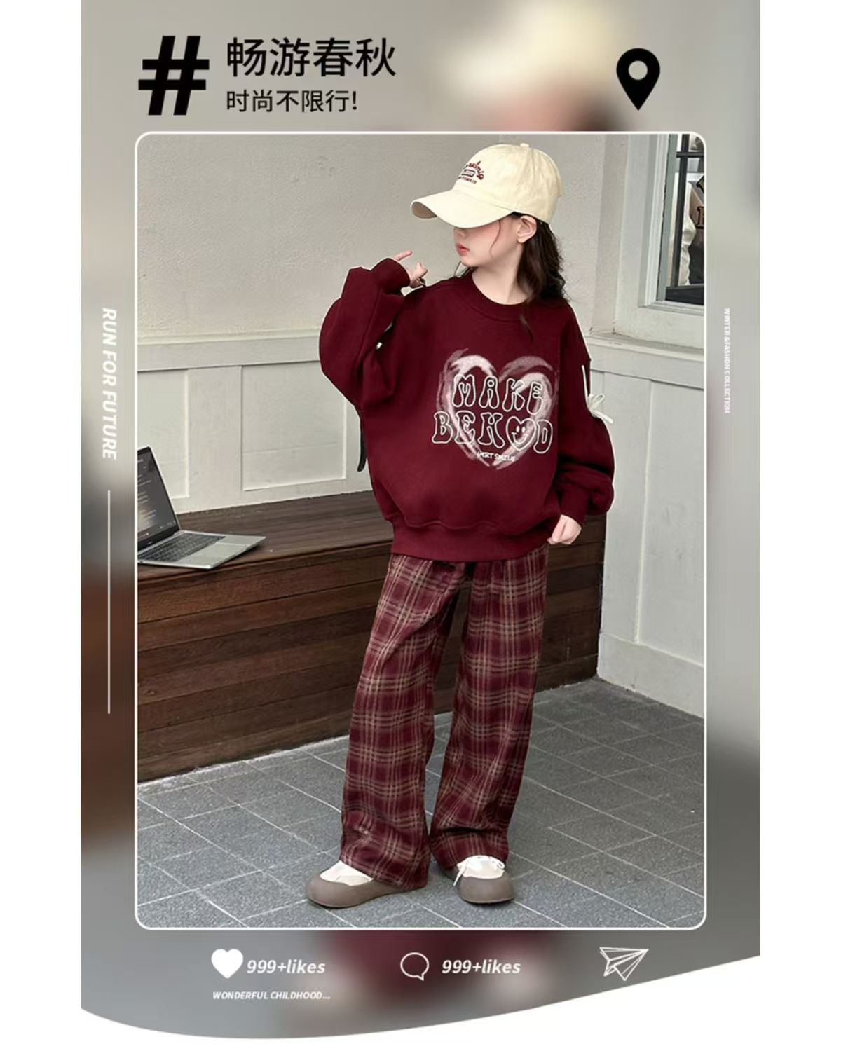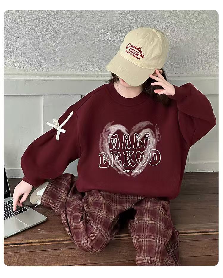 어린이 여성 기모 세트 새로운 서양식 가을과 겨울 기모 두꺼운 땀 중간과 큰 어린이 사랑 후드 격자 무늬스토어 가기