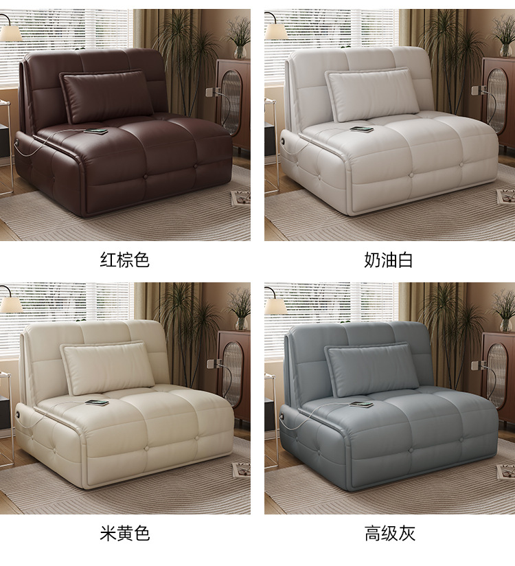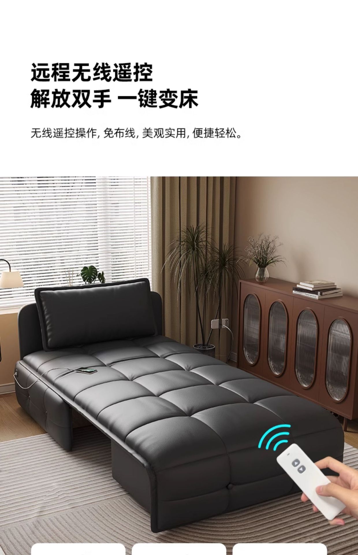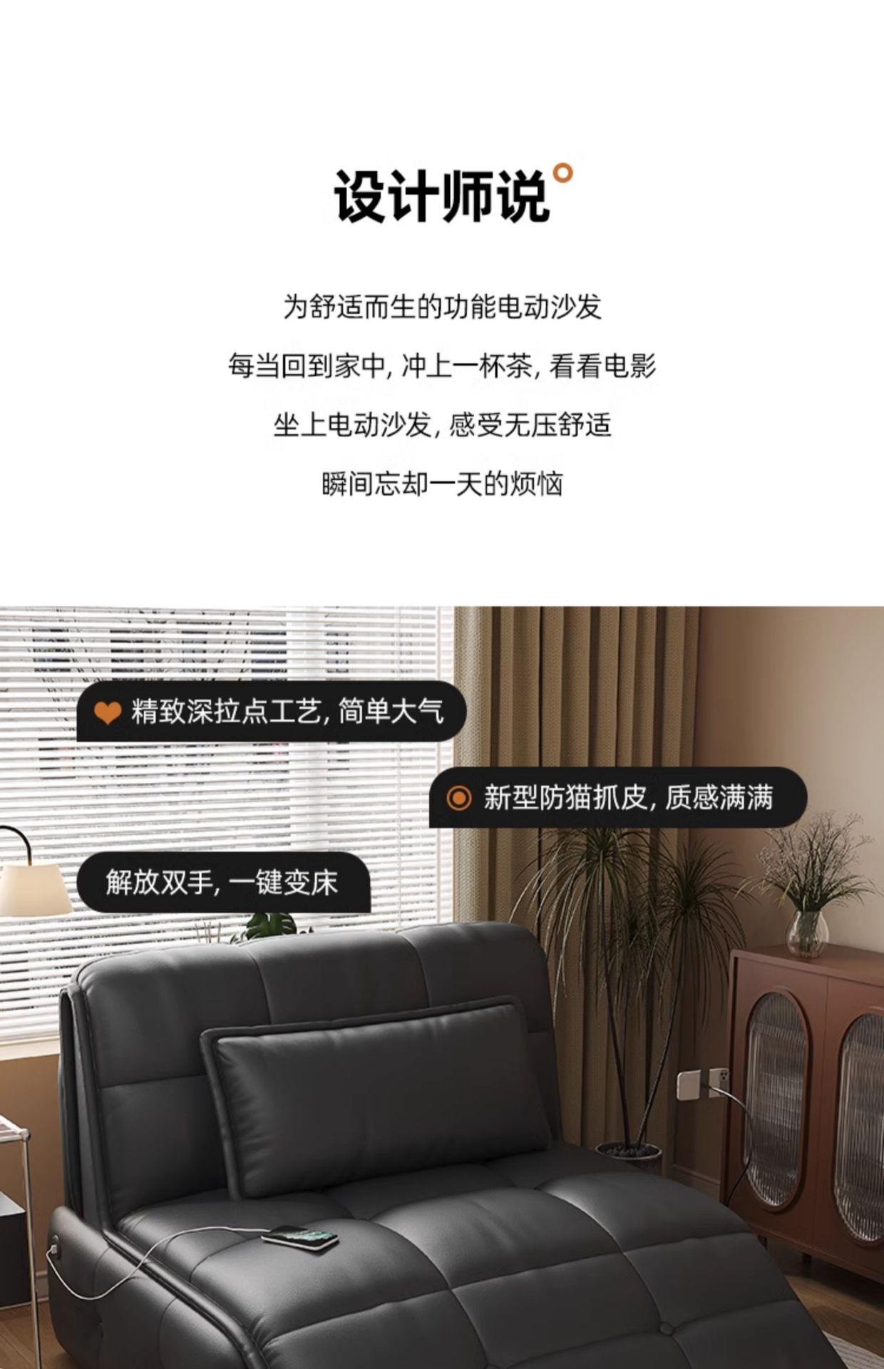 가죽 전기 접이식 소파 베드 이중 목적 작은 아파트 거실 연구 아파트 스마트 개폐식 스토리지 소파 베드