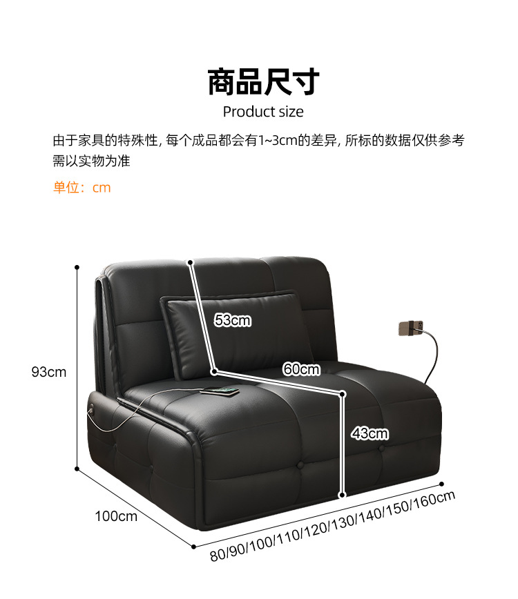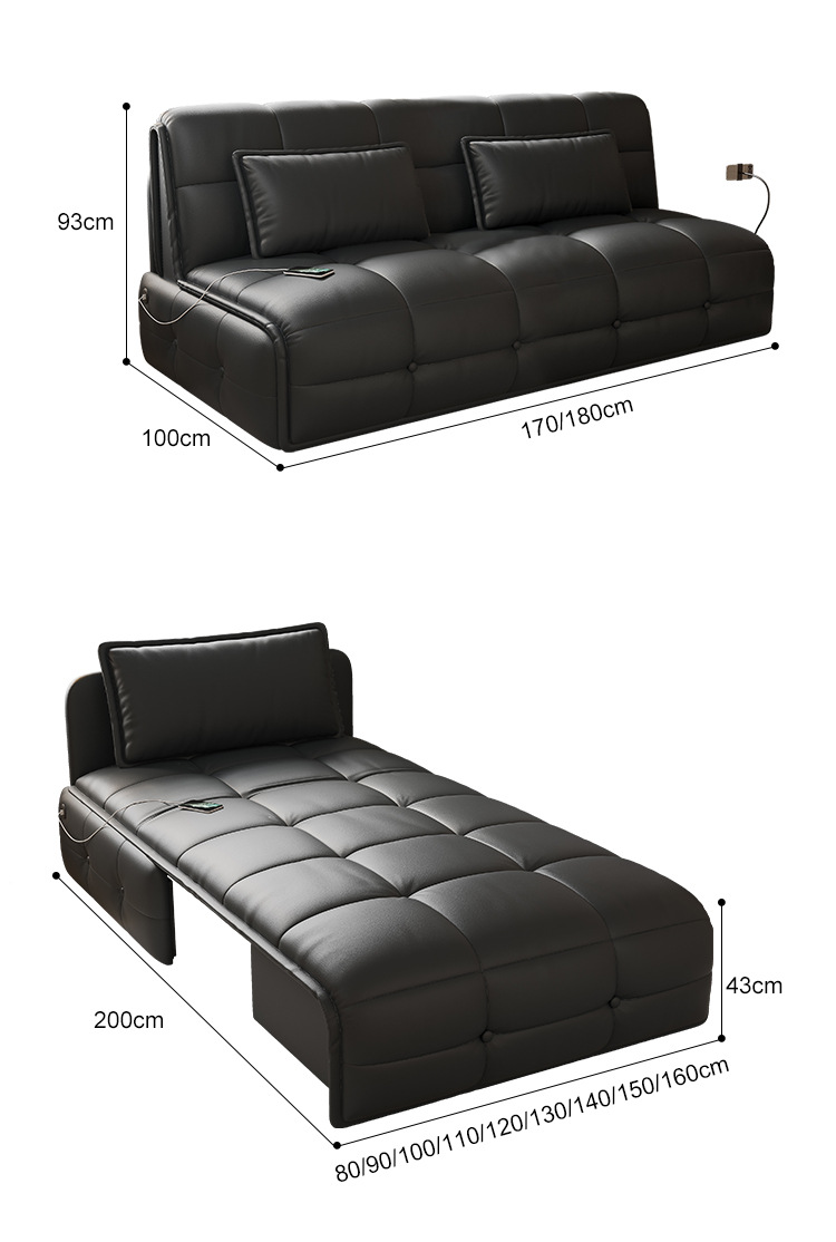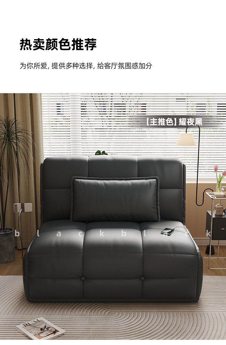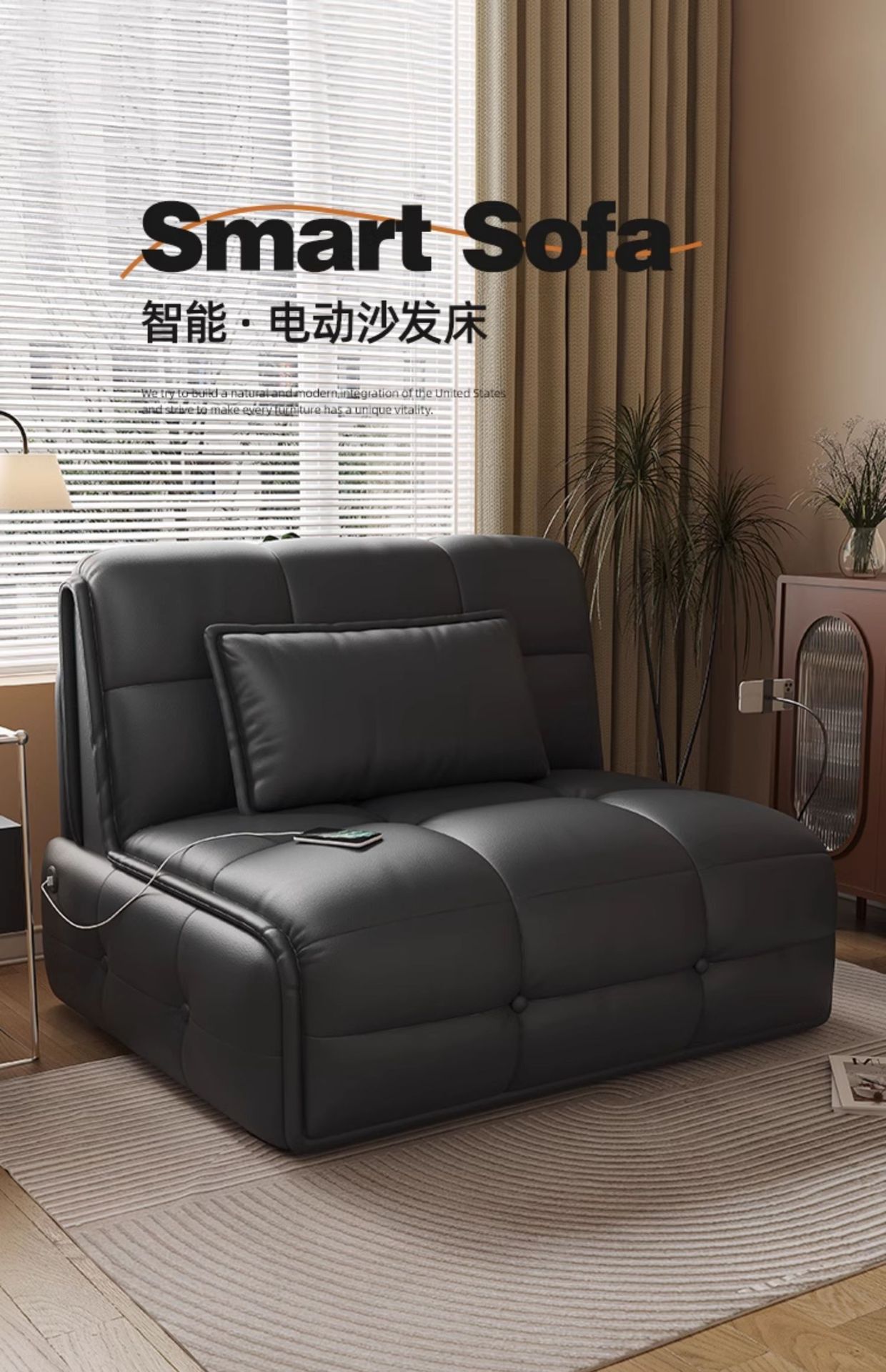 가죽 전기 접이식 소파 베드 이중 목적 작은 아파트 거실 연구 아파트 스마트 개폐식 스토리지 소파 베드