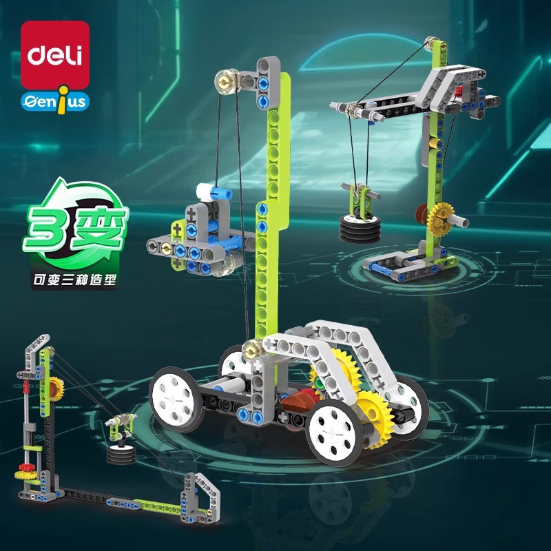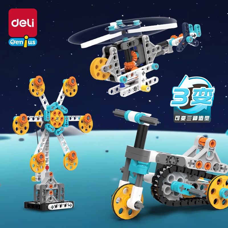 델리 어린이 빌딩 블록 기어 기계 과학 및 교육 교육 퍼즐 조립 장난감 어린이 뇌 지능 개발 트럭 장난감스토어 가기