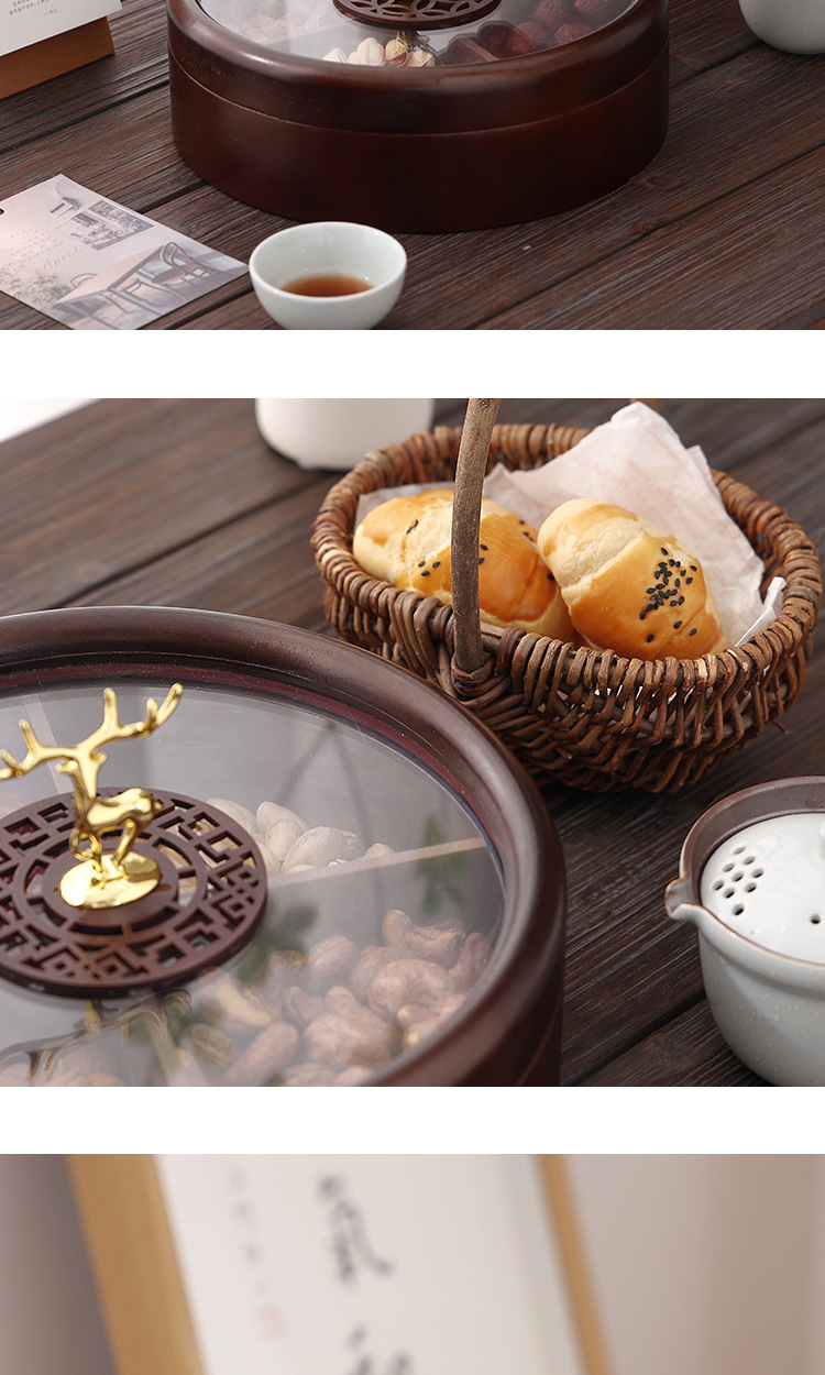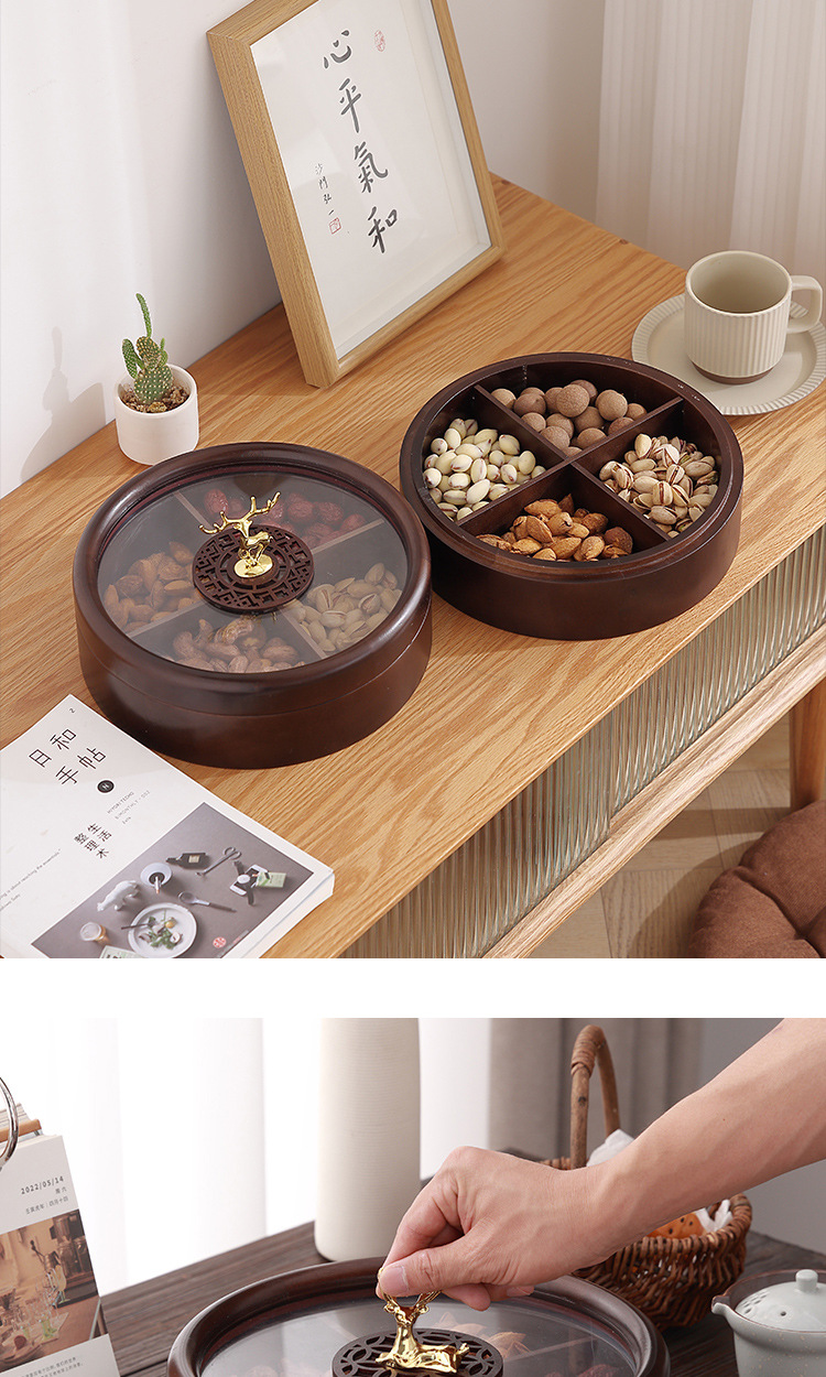 새로운 중국 스타일의 단단한 나무 사탕 상자 뚜껑 입구와 고급 빈티지 저장 상자 웨딩 창조적 인 거실 커피 테이블 말린 과일 접시스토어 가기