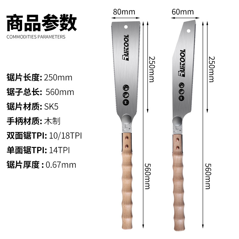2 피스 양면 톱 일본 트리플 패스트 톱 SK5 목공 테논은 나무 정밀도가 정원 톱을 보았다