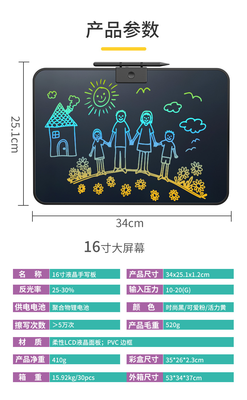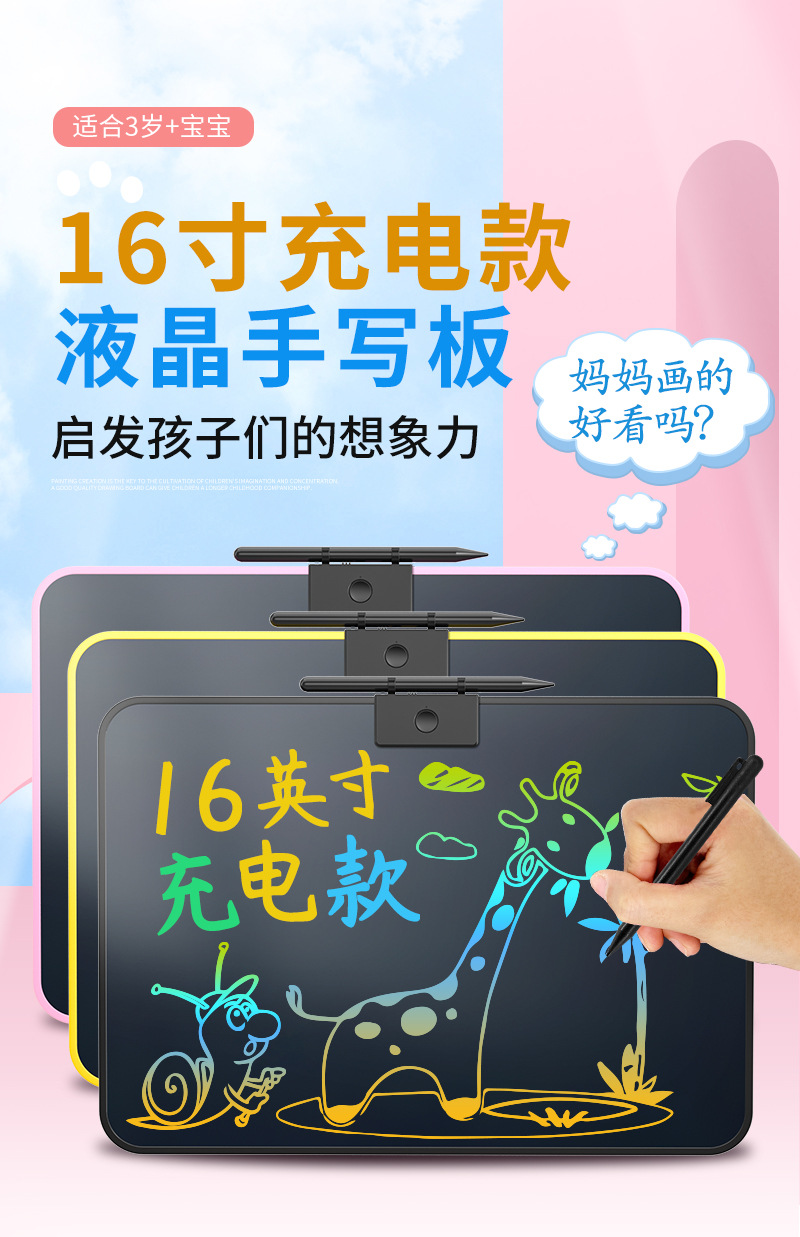16inch LCD 필기 보드 어린이용 가정용 지울 수 있는 그림 낙서 교육용 필기 보드 컬러 필기 보드
