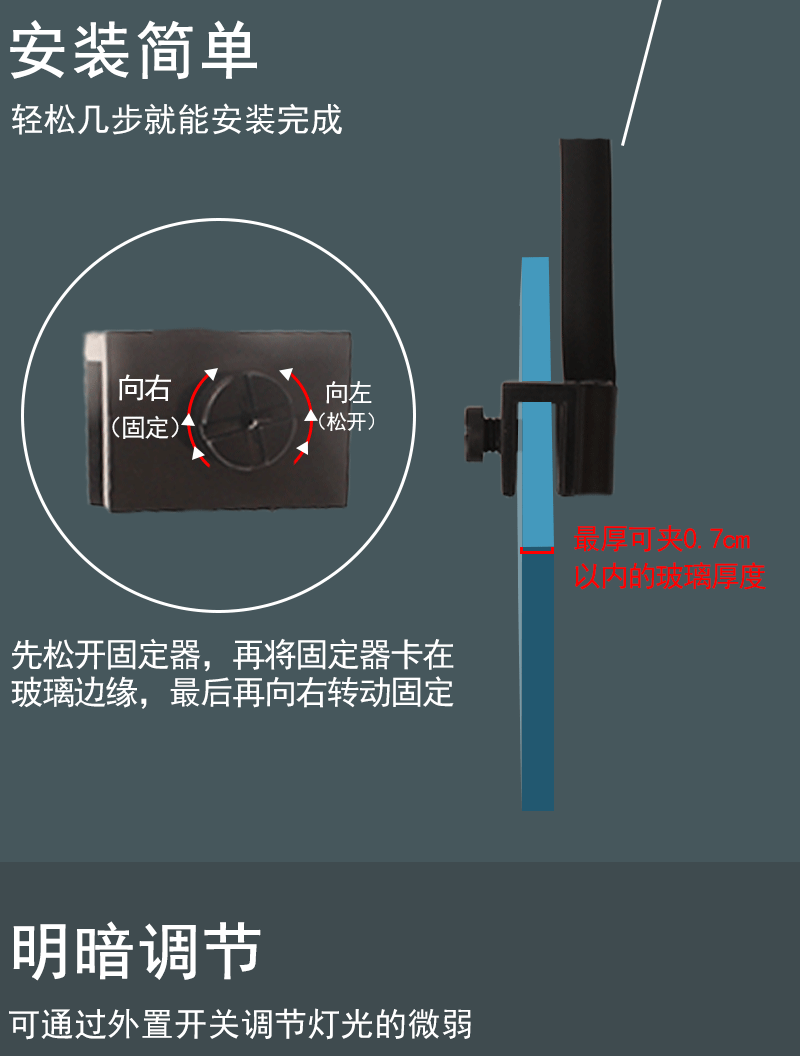 • 새로운 밝기 조절이 가능한 USB 소형 클립 램프
