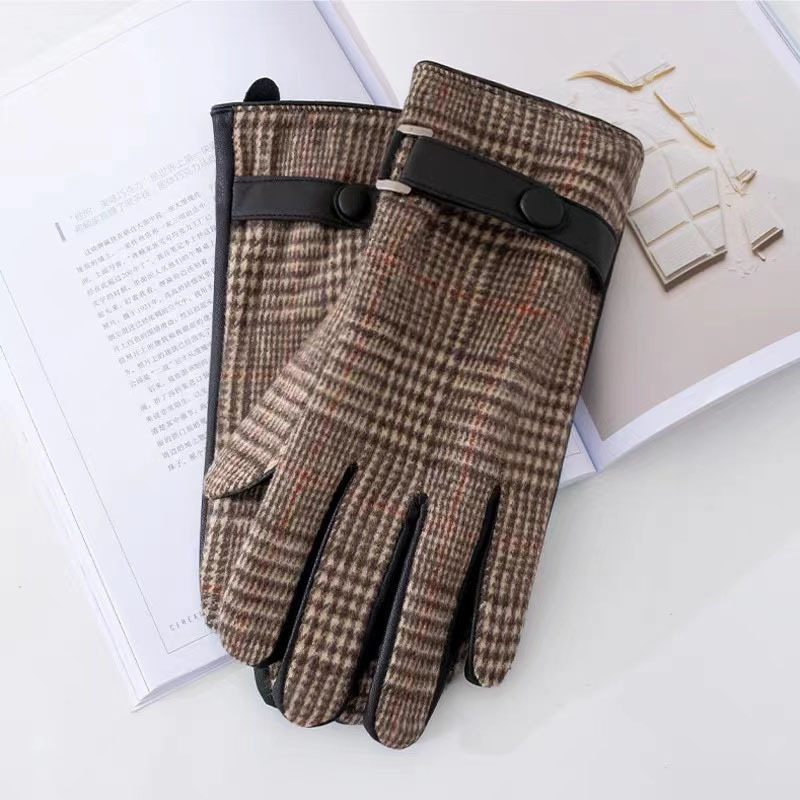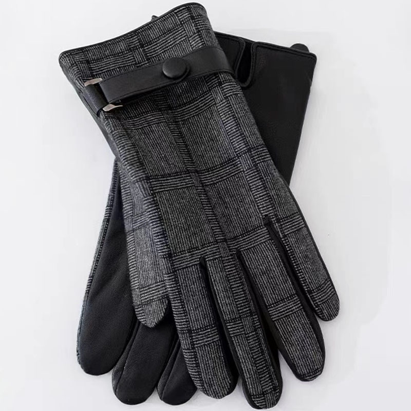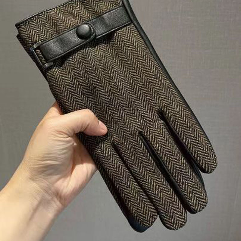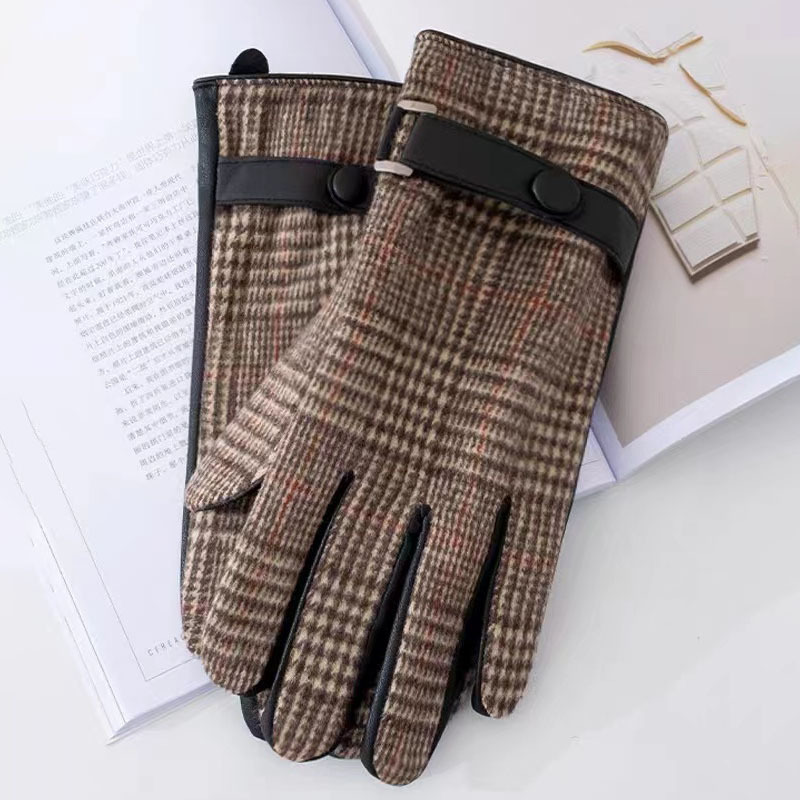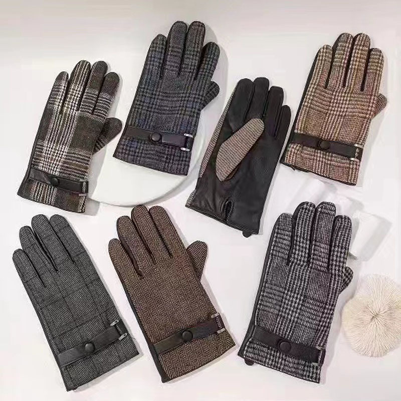 영국산 모직 체크 장갑 클래식 가죽 천 소재 플러스 벨벳 두꺼운 보온 남성용 자전거 방풍 장갑 도매