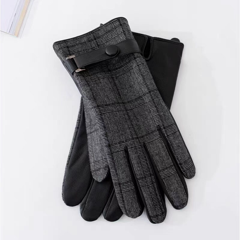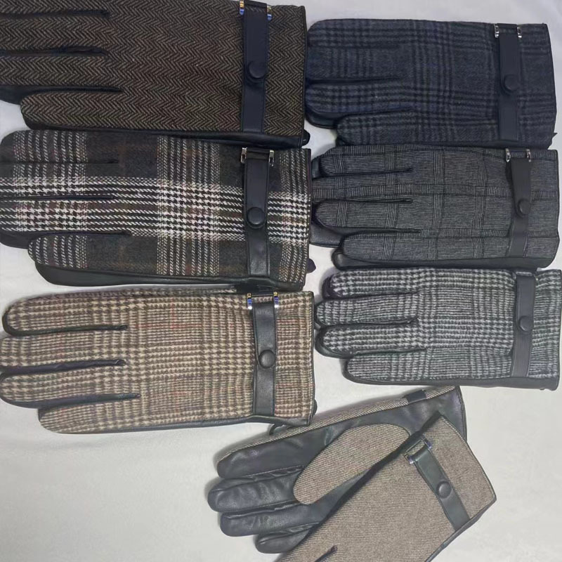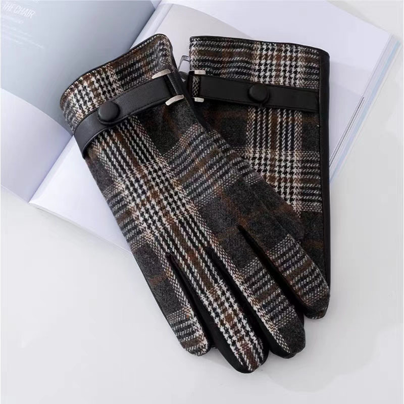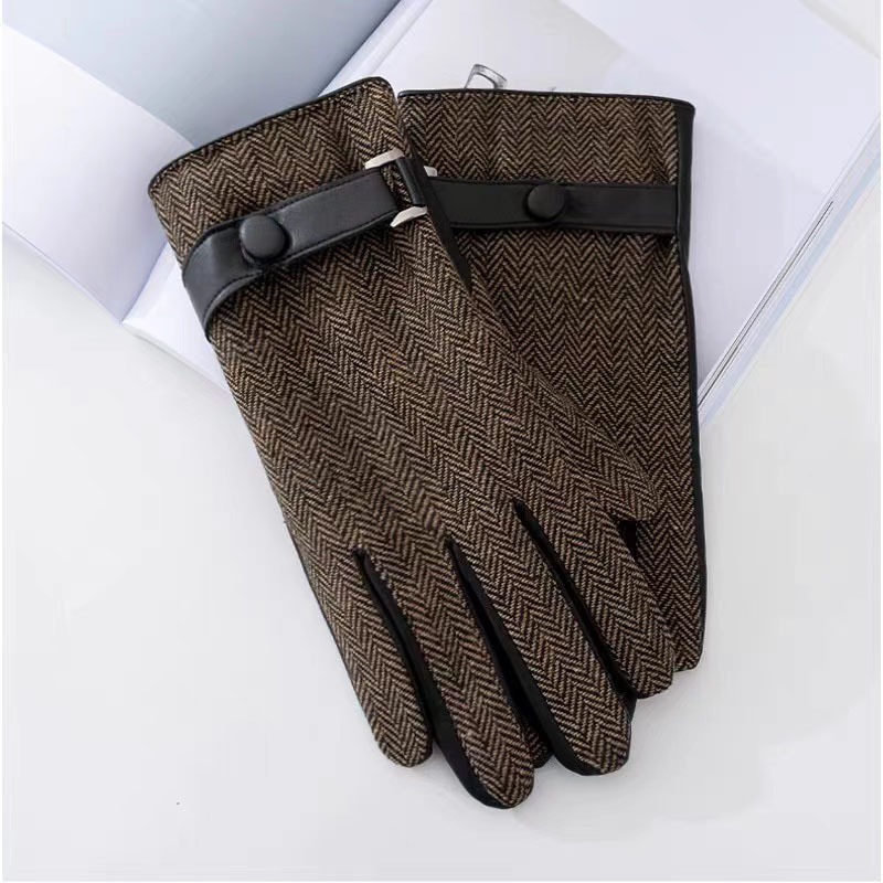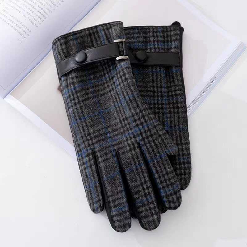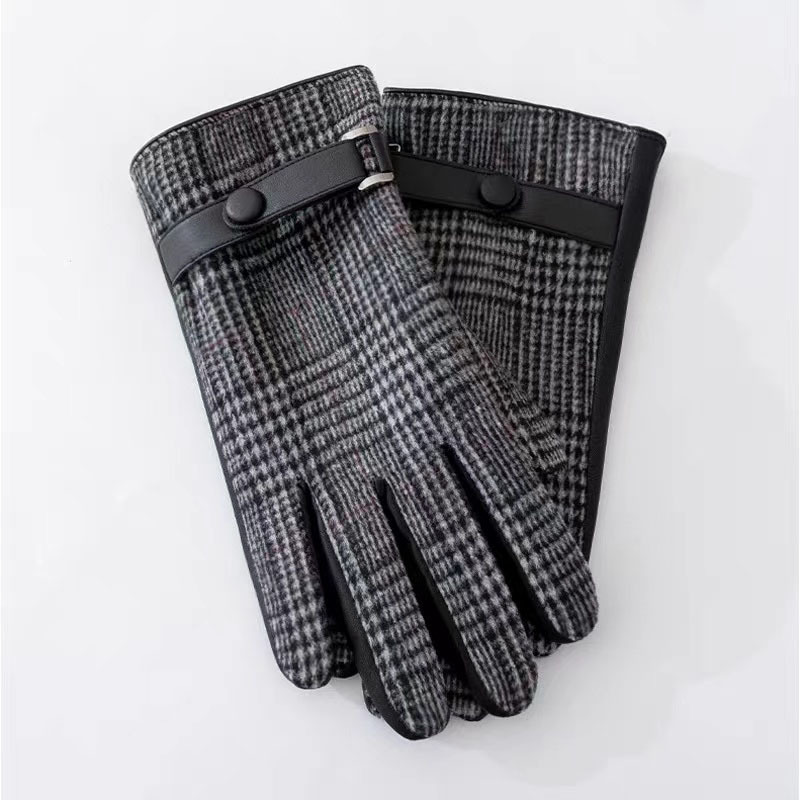 영국산 모직 체크 장갑 클래식 가죽 천 소재 플러스 벨벳 두꺼운 보온 남성용 자전거 방풍 장갑 도매