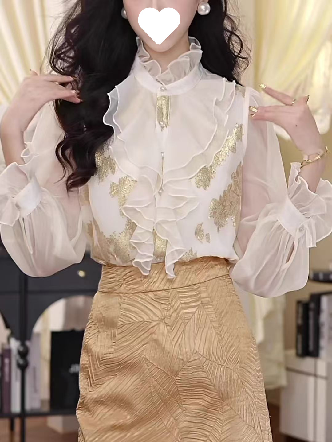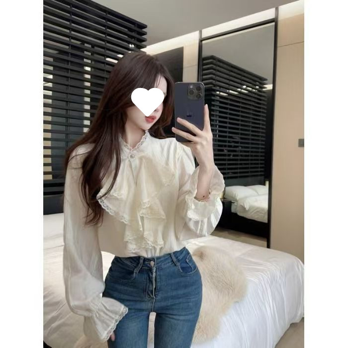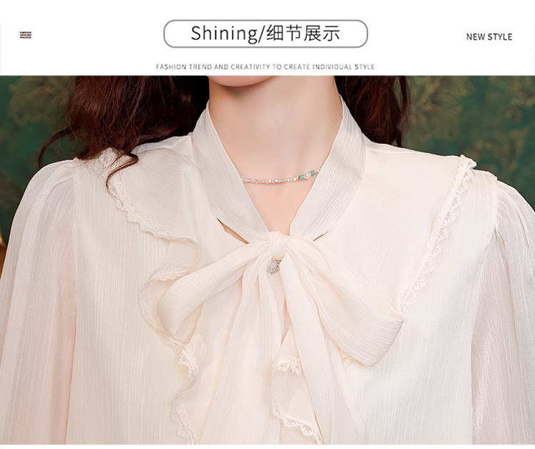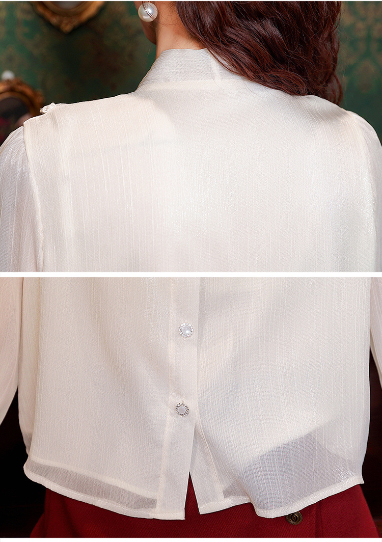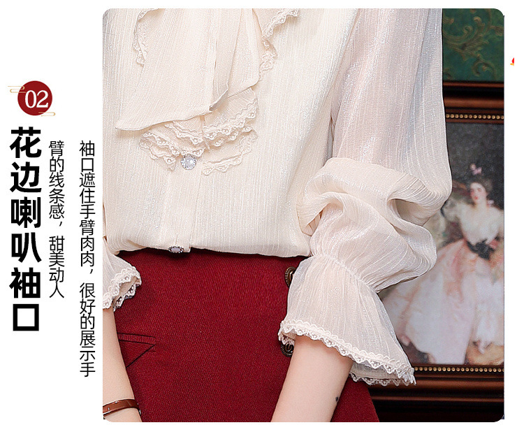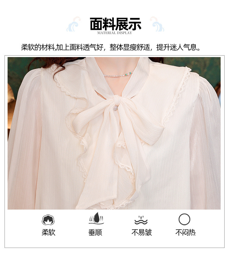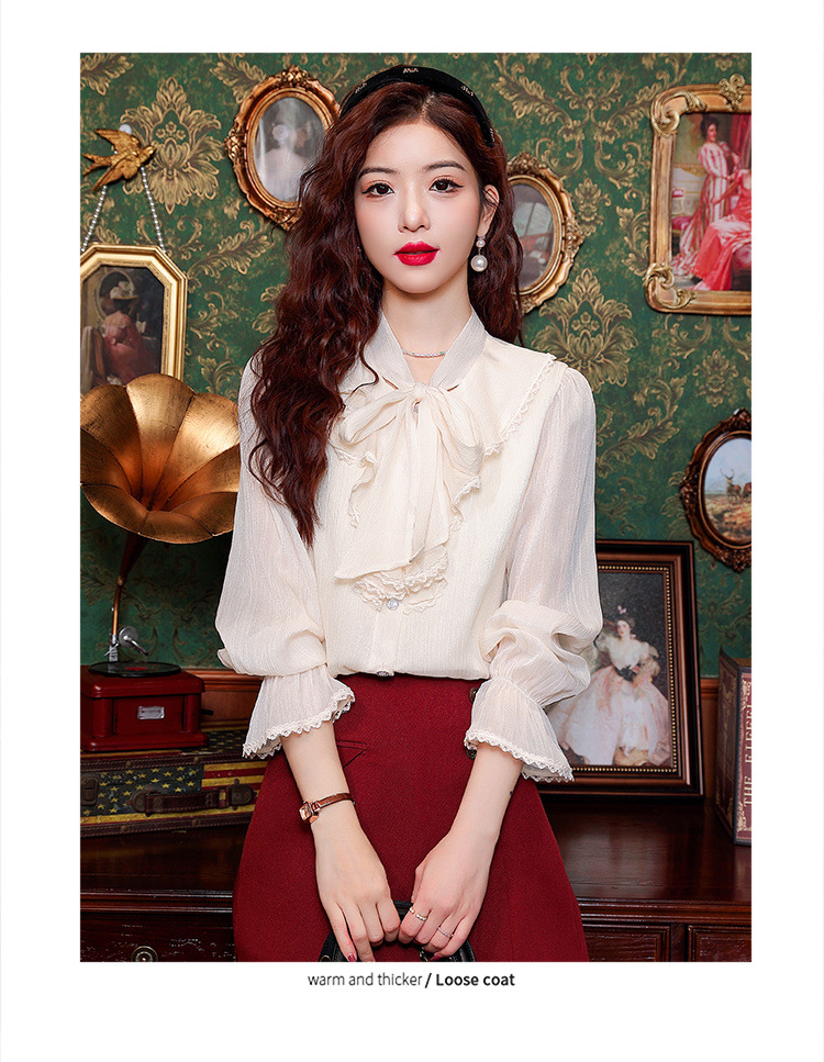 Y9Z 시리즈 레트로 리본 장식 긴팔 쉬폰 셔츠 여성용 봄 신상품 다용도 슬림핏 패셔너블한 벨 슬리브스토어 가기