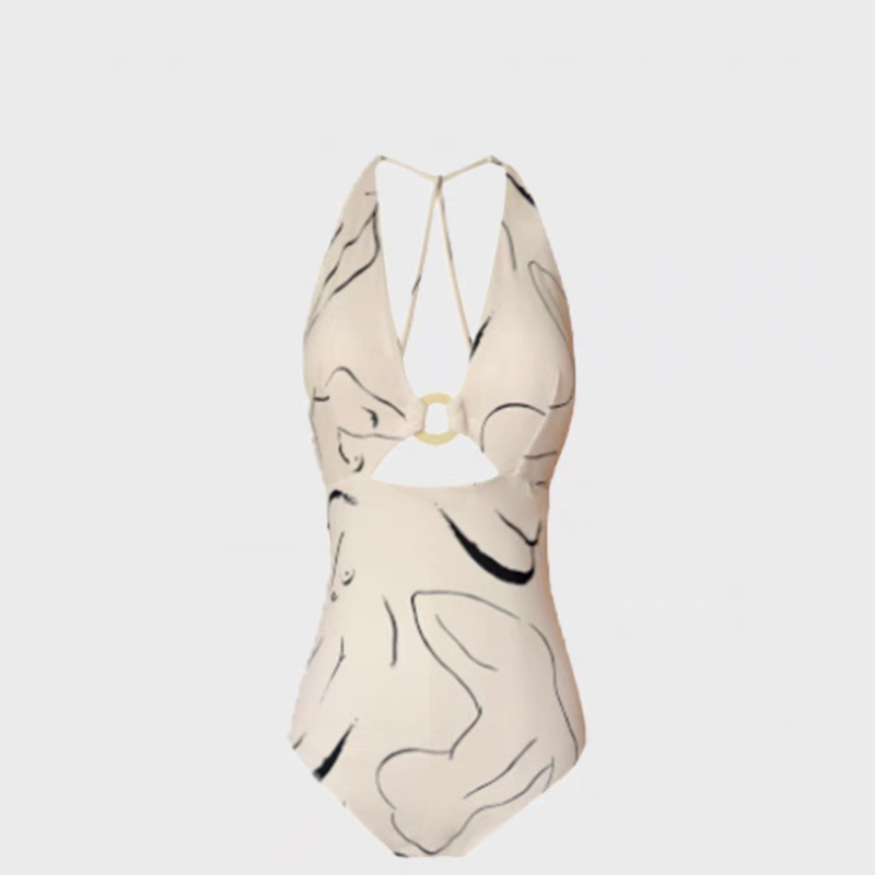 빈티지 홍콩 스타일 섹시한 스파이스 소녀 사이드 트라이앵글 딥 V-넥 백리스 화이트 벨리 커버 수영복 여성용 온천 홀리데이 수영복