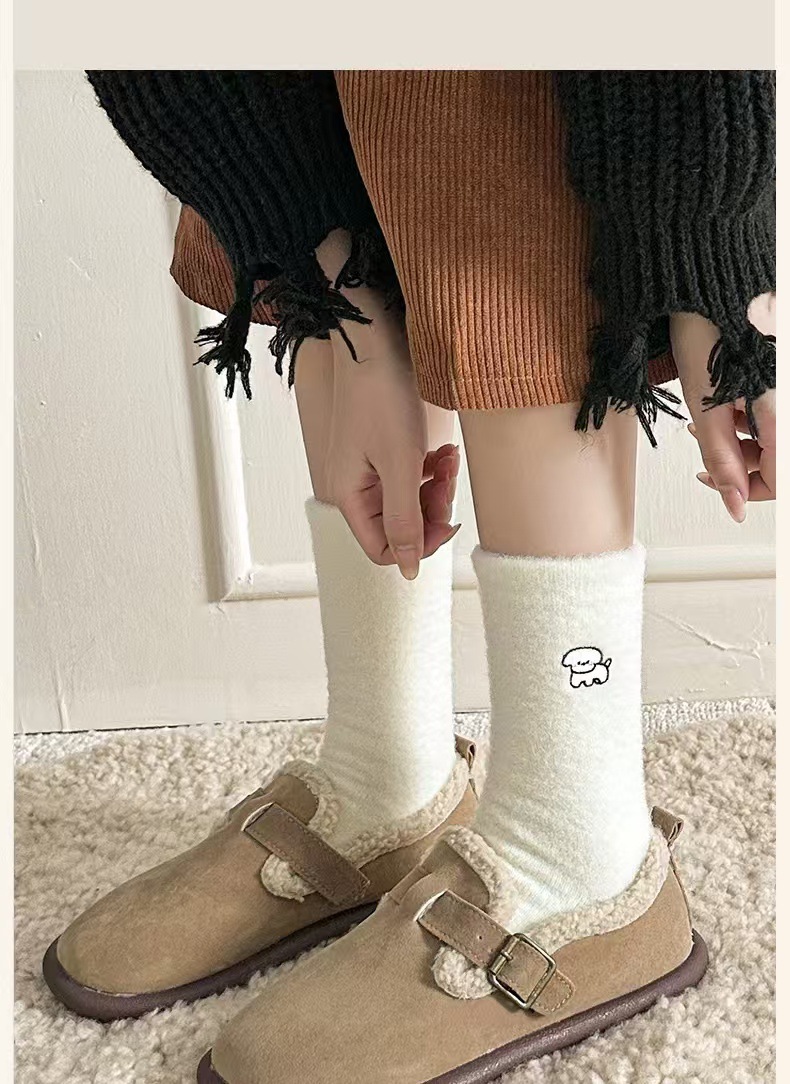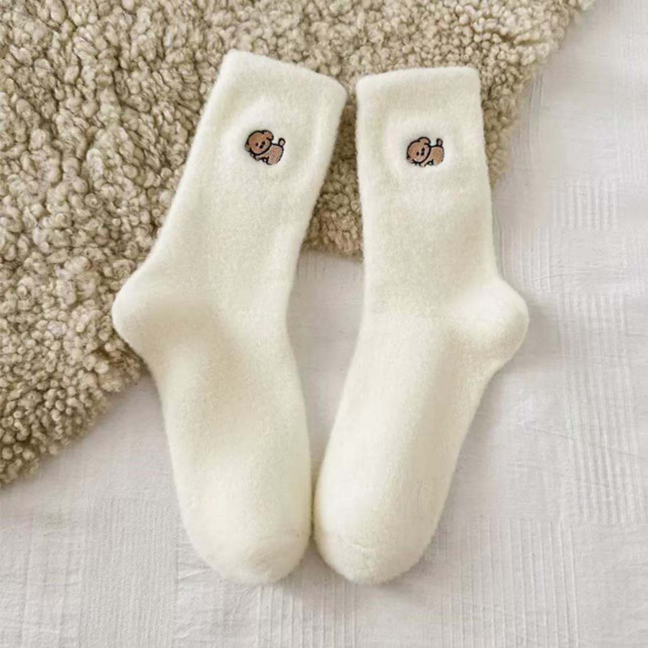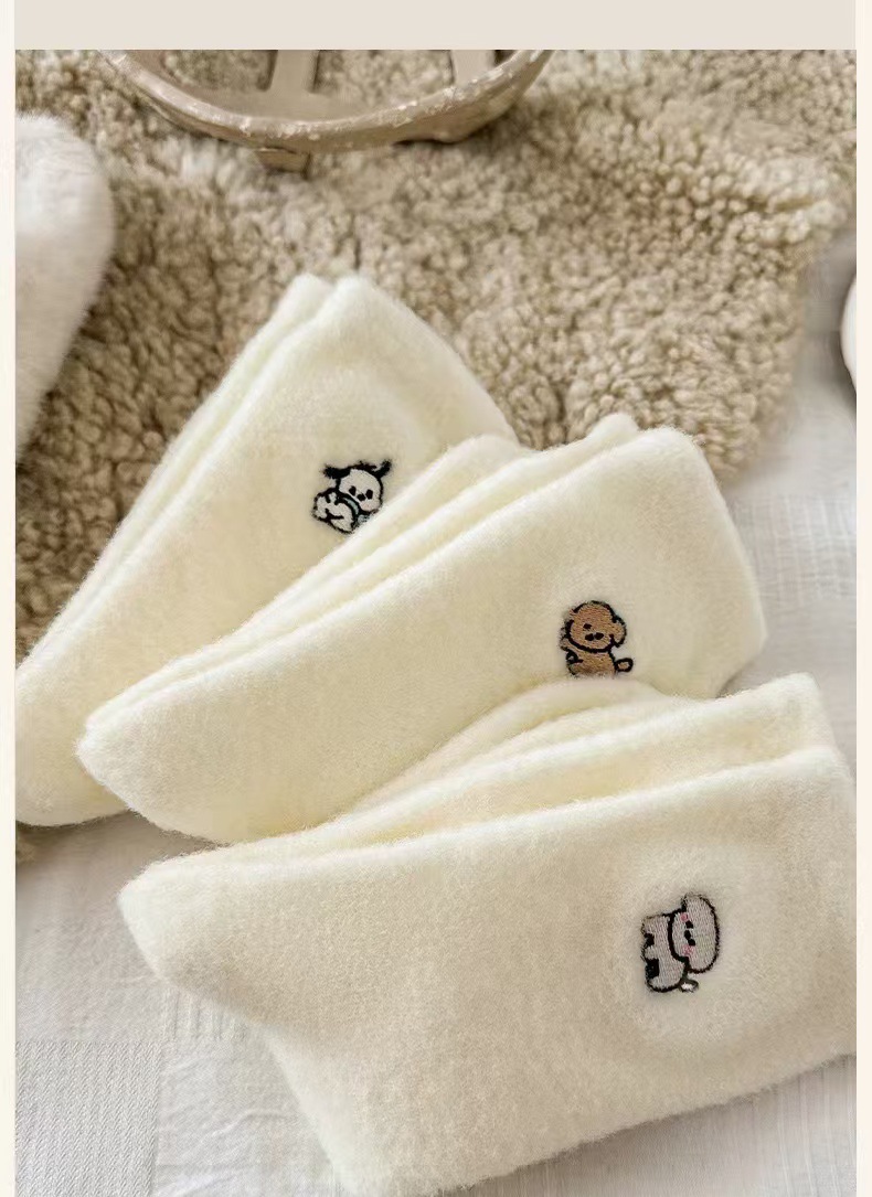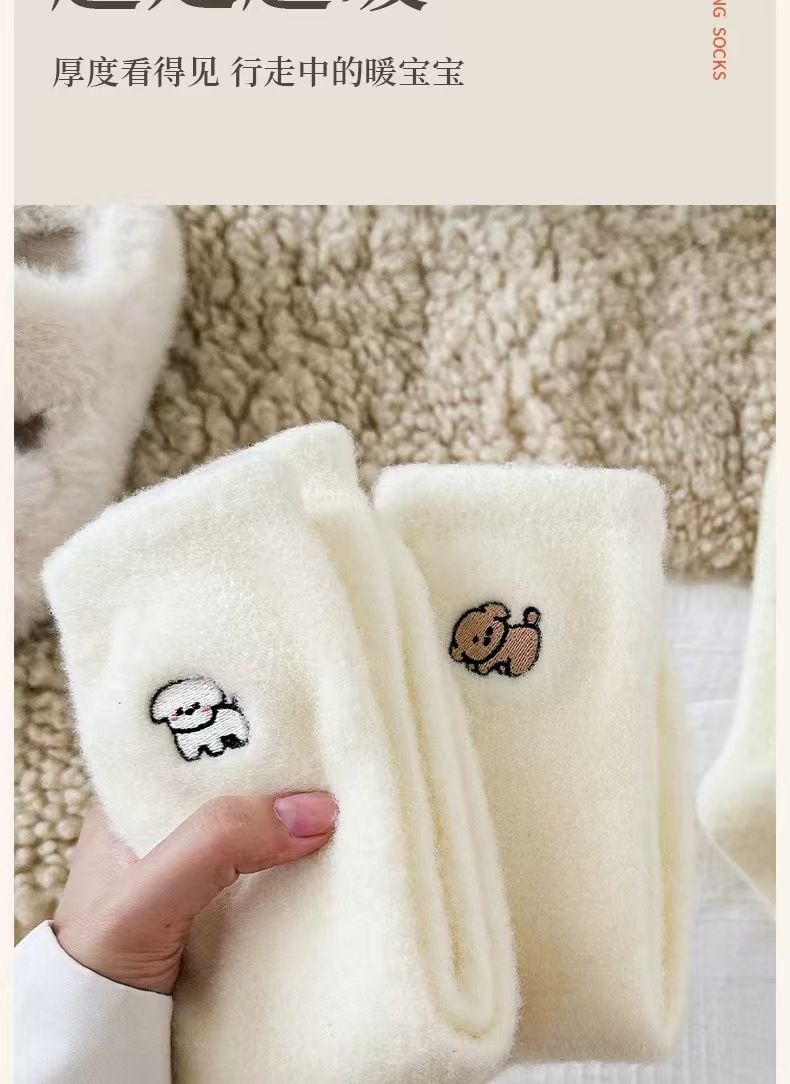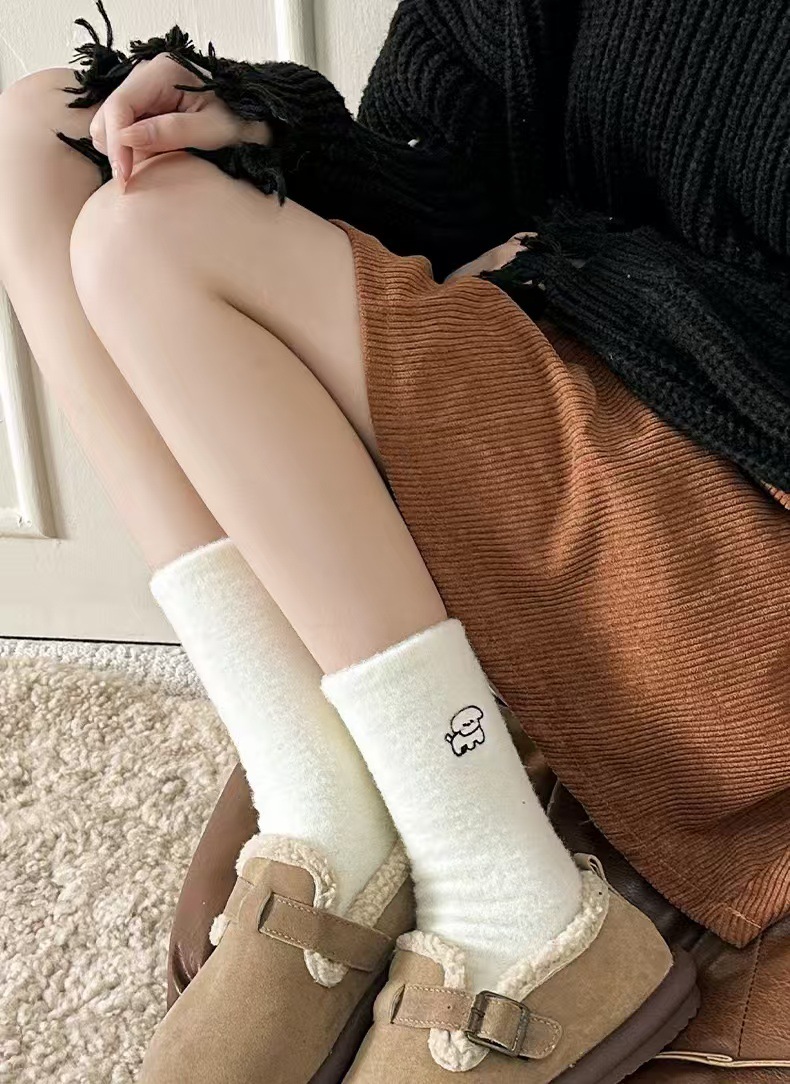 흰색 호주 벨벳 자수 양말 가을과 겨울 기모 두껍게 자수 일본 귀여운 강아지 양말 모피