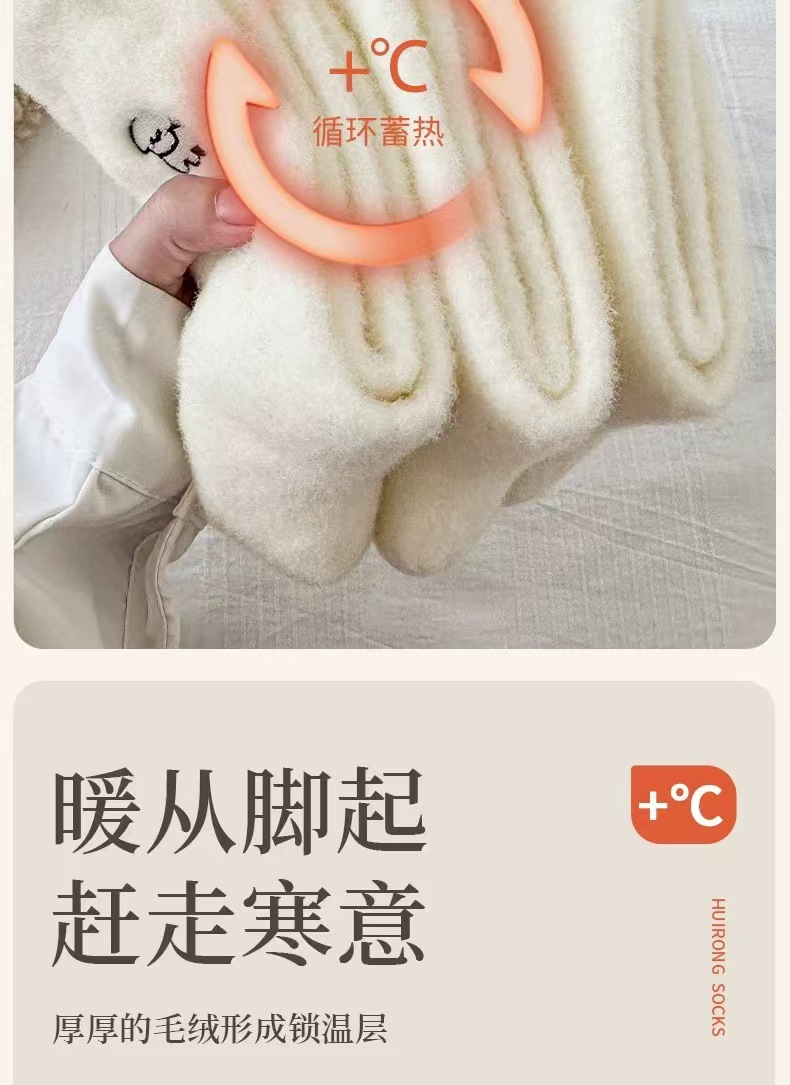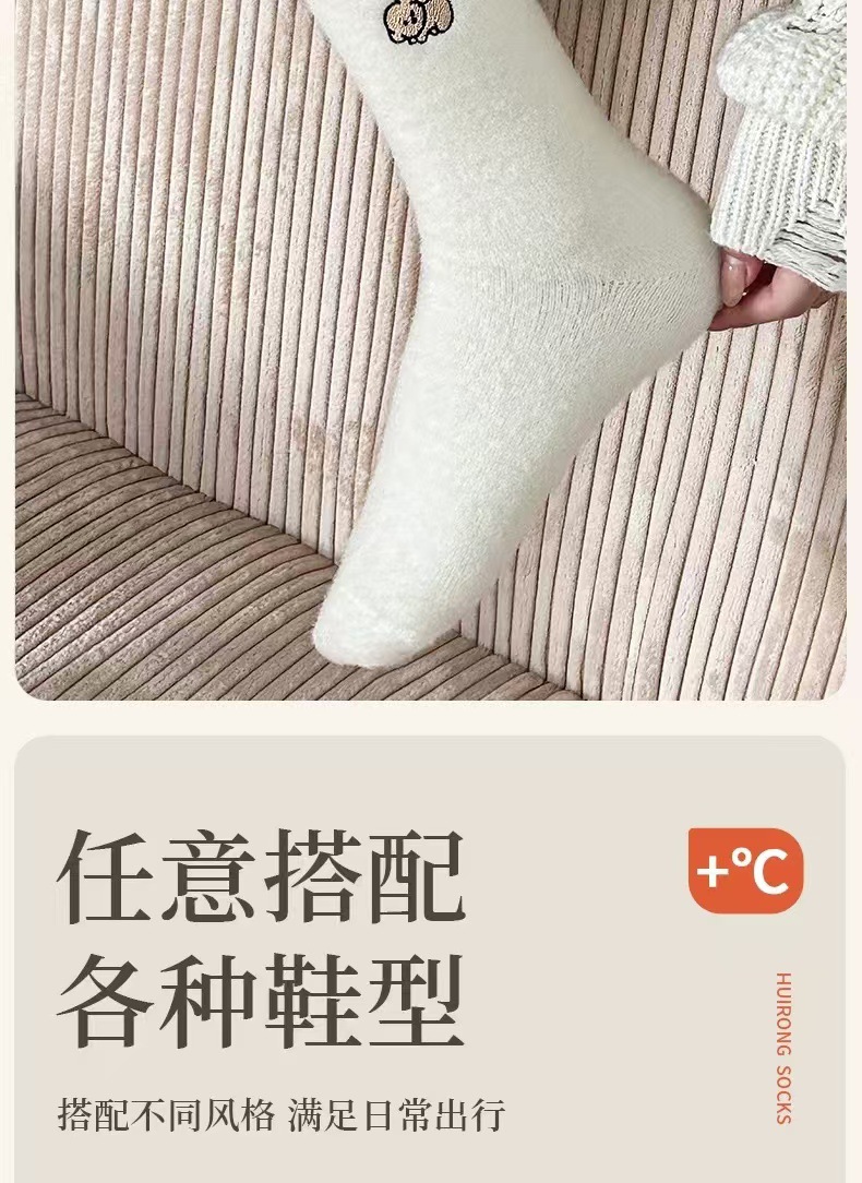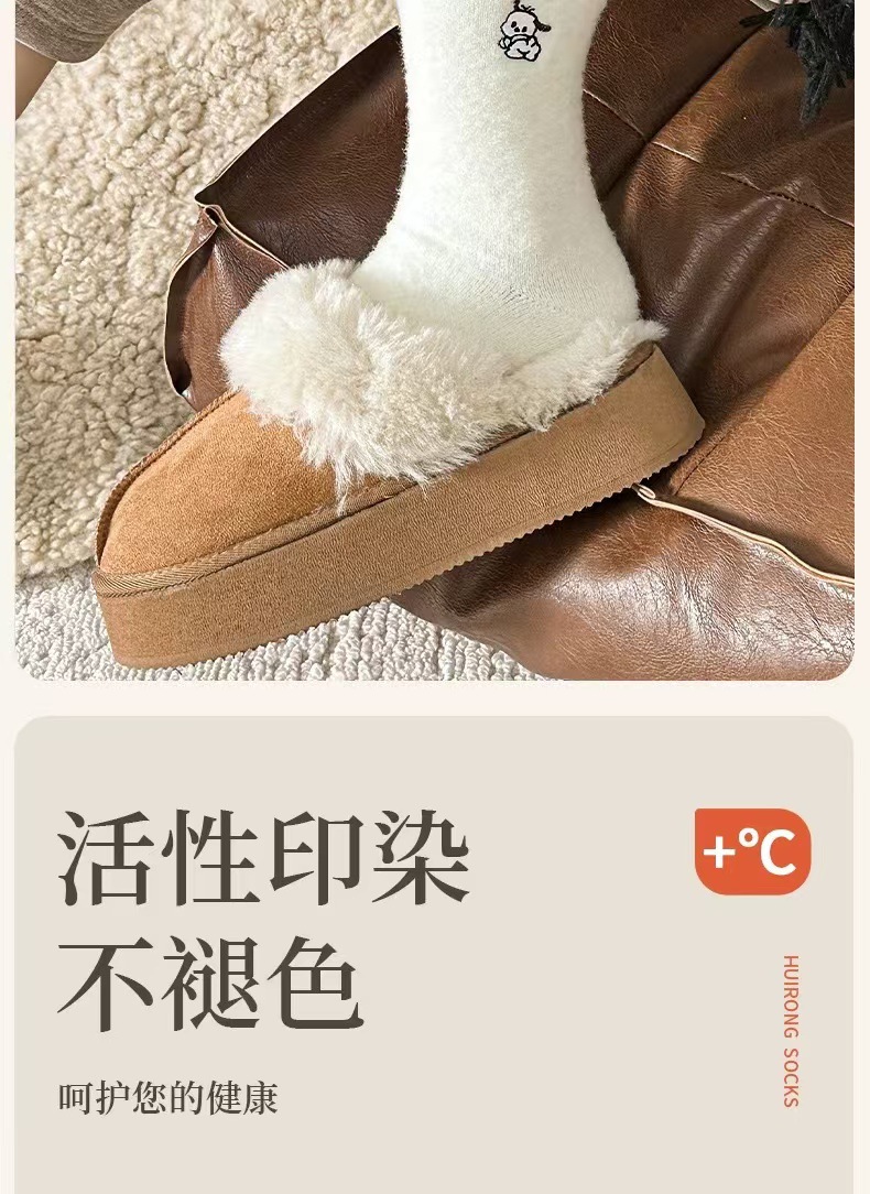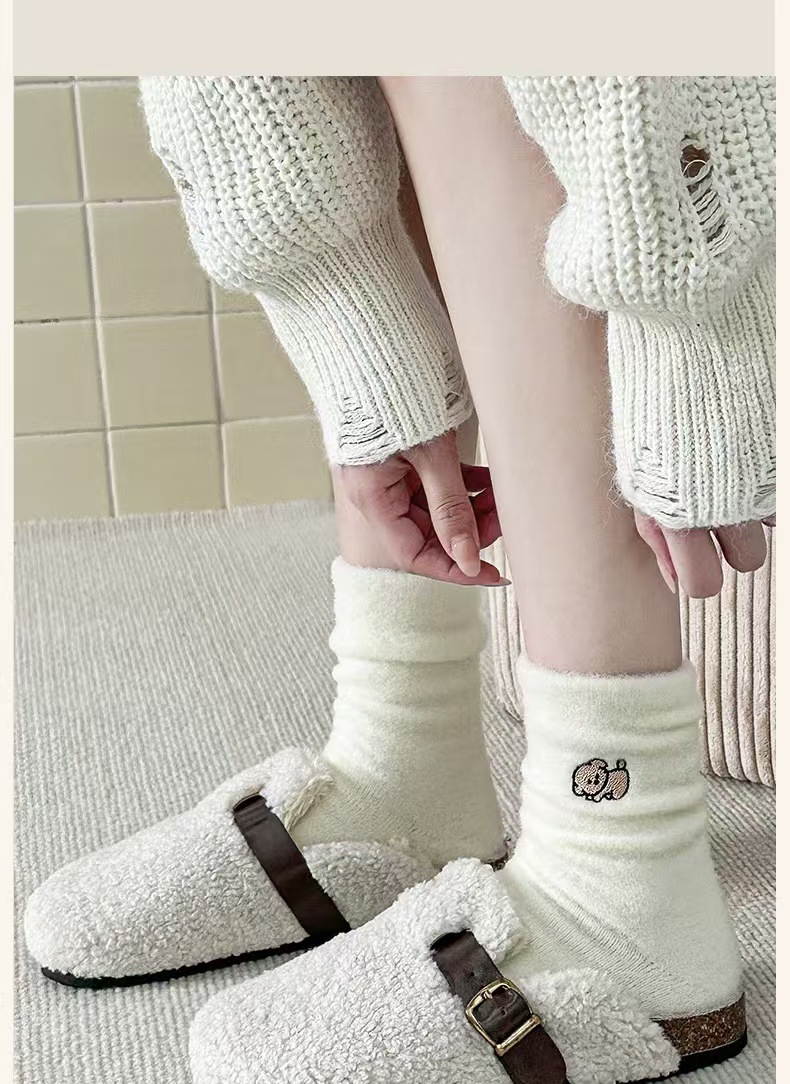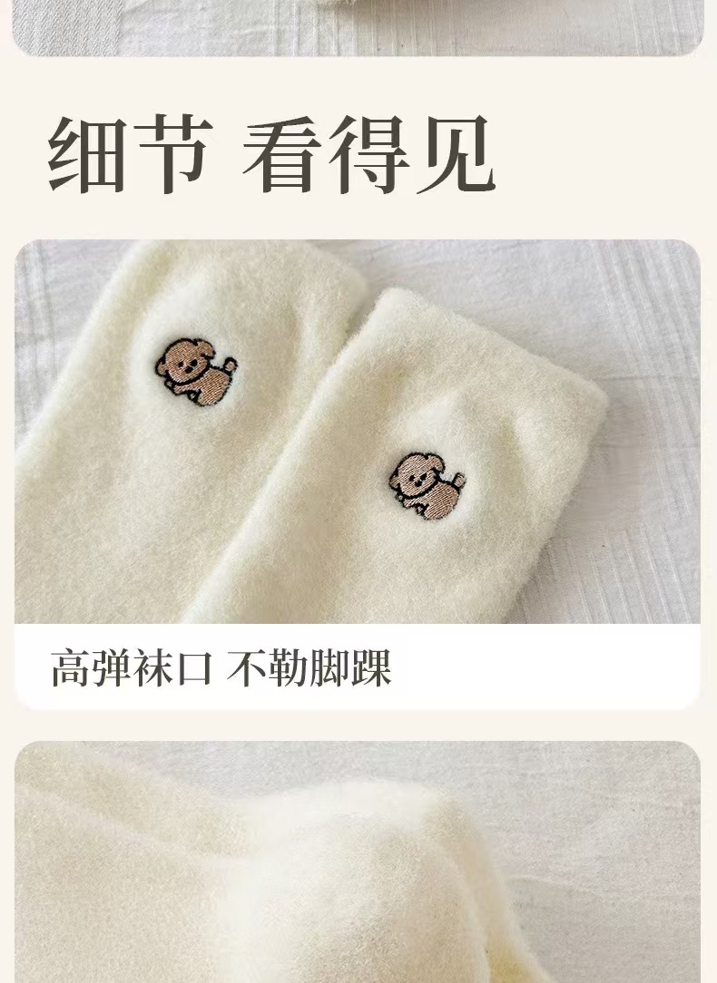 흰색 호주 벨벳 자수 양말 가을과 겨울 기모 두껍게 자수 일본 귀여운 강아지 양말 모피