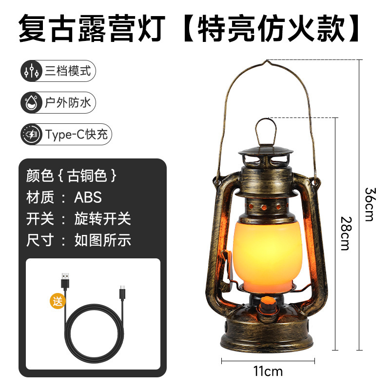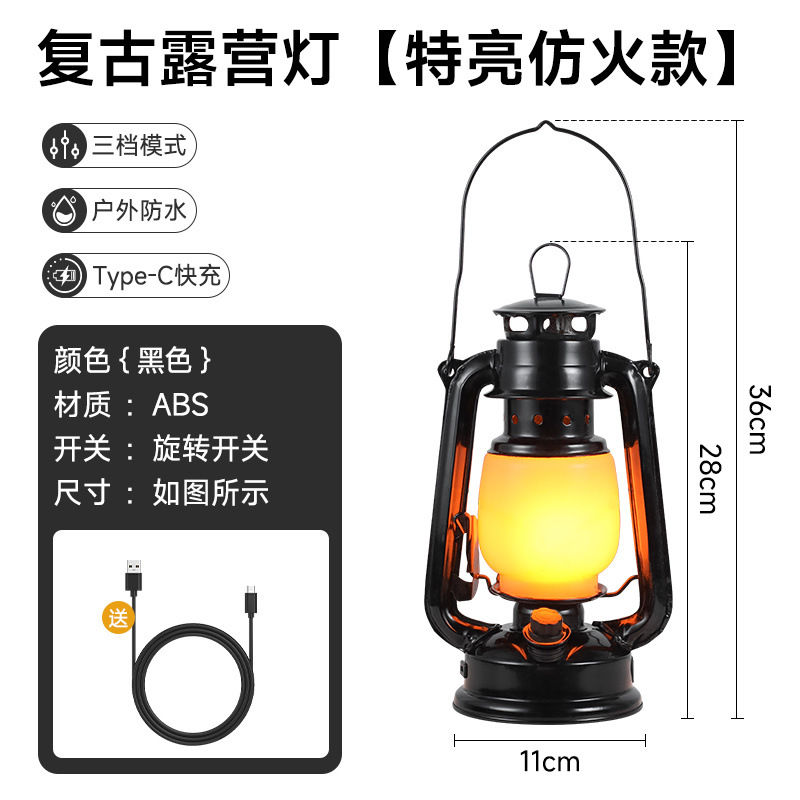 • 레트로 스타일 - 매우 밝은 모조 화재 모델 + Type-C 고속 충전 + 대기 399h