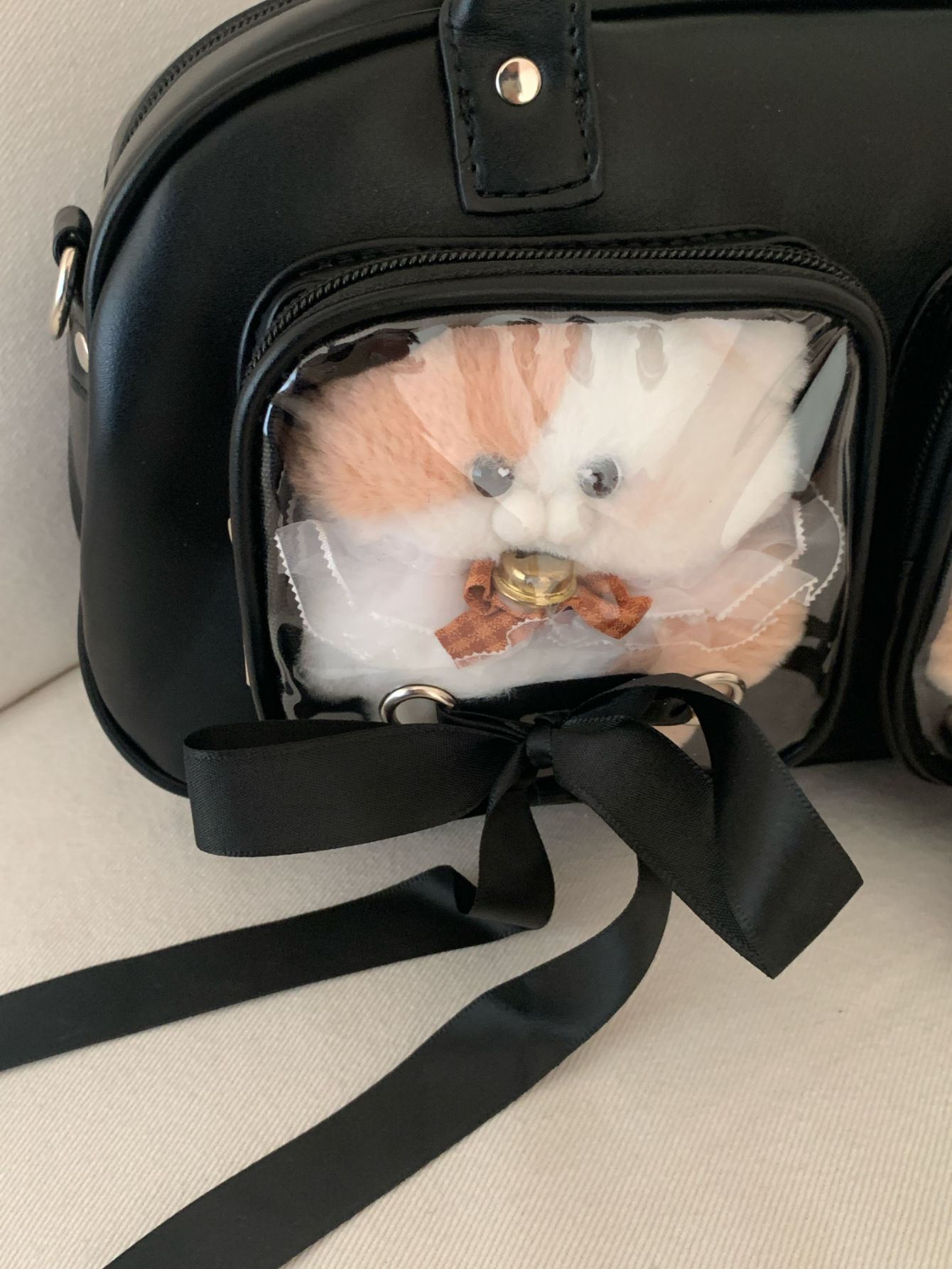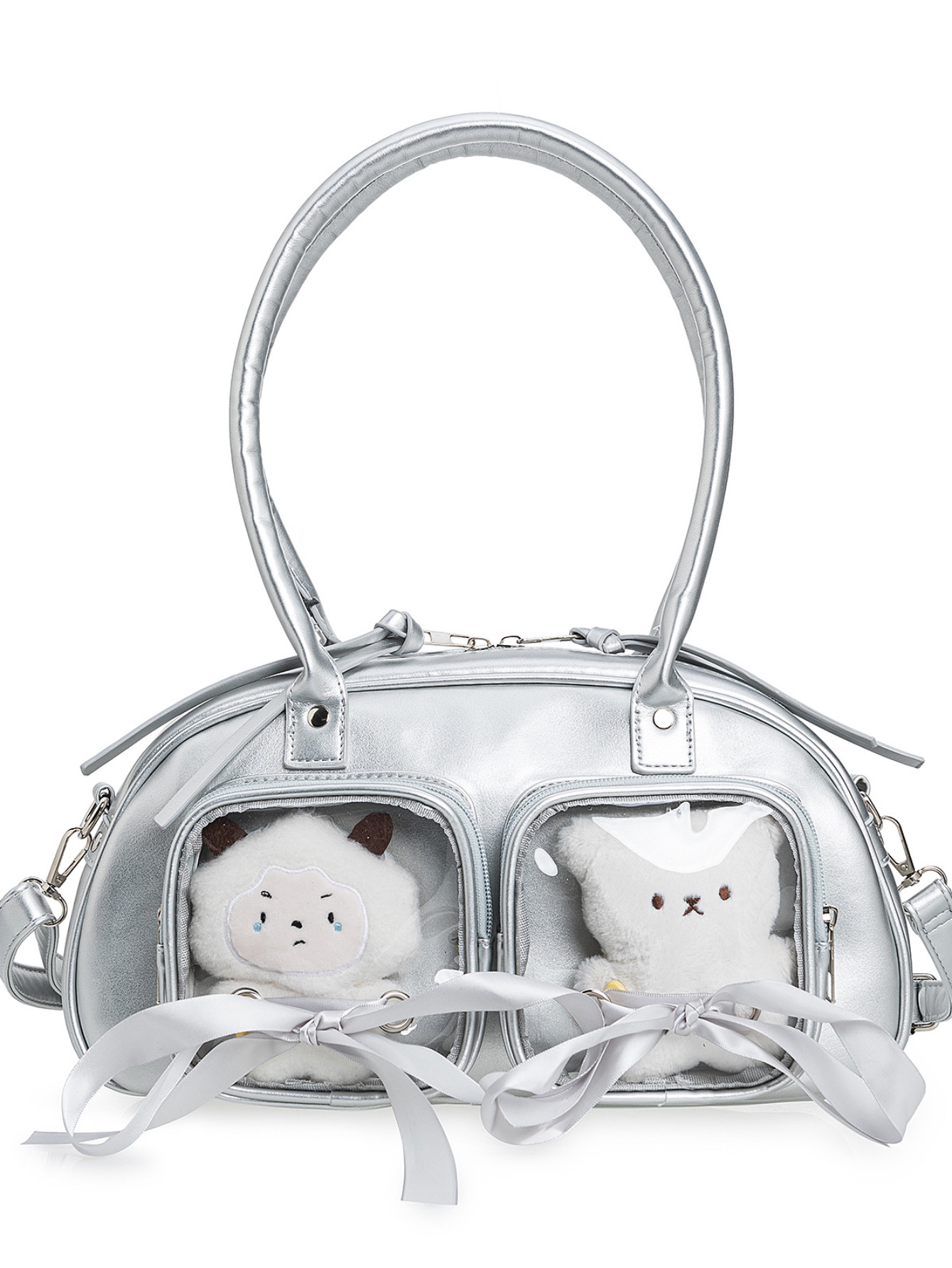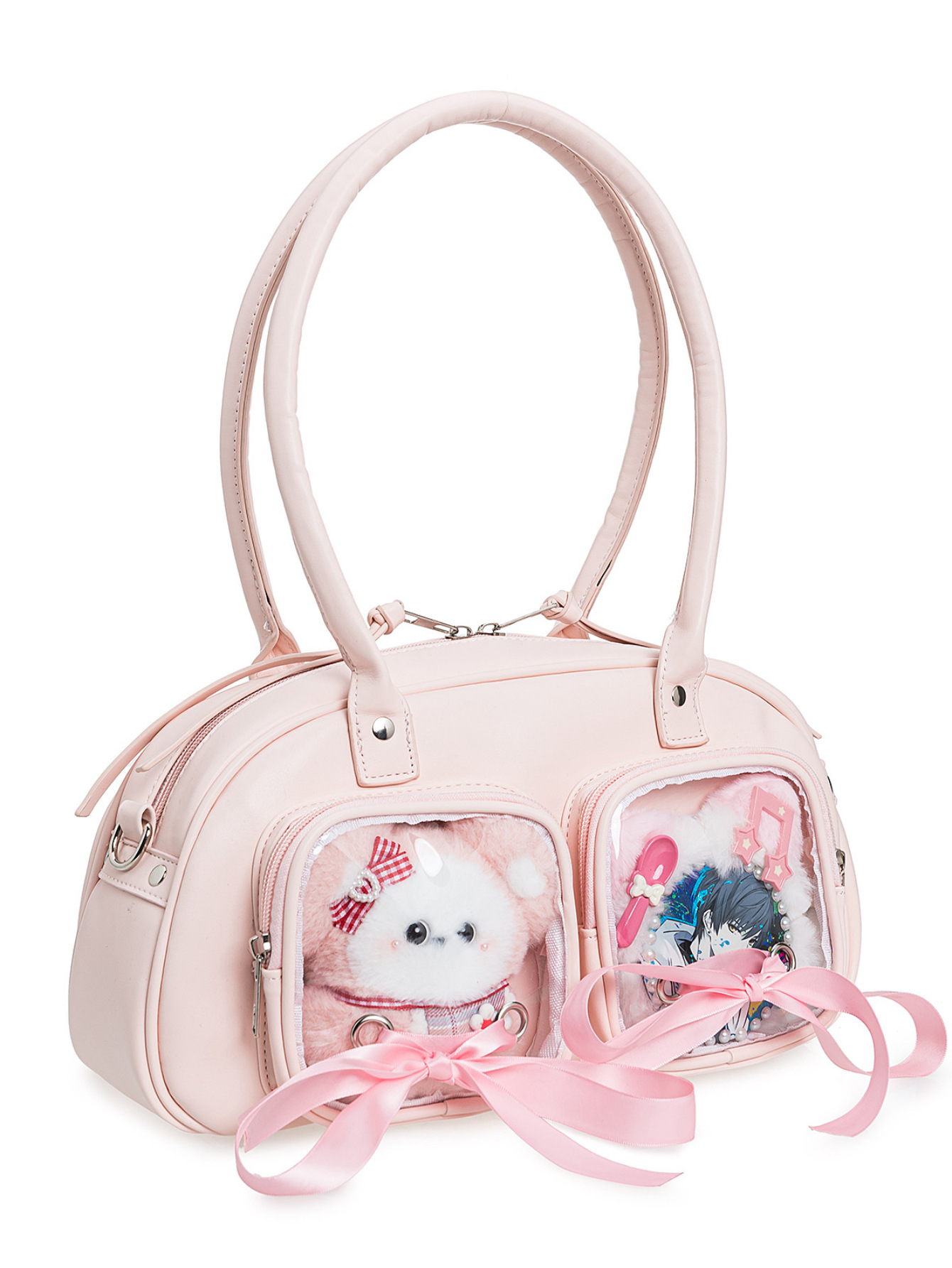 일본식 대학 스타일 2 차원 리본 활 투명 인형 통증 가방 대용량 올 매치 숄더 크로스 바디 백