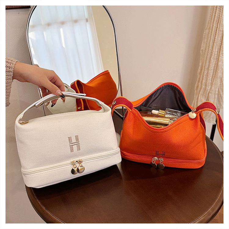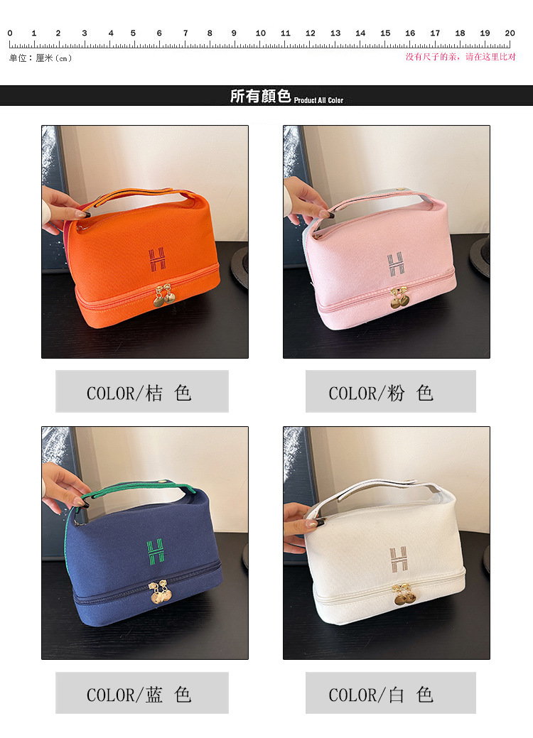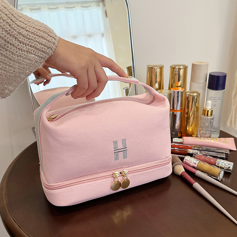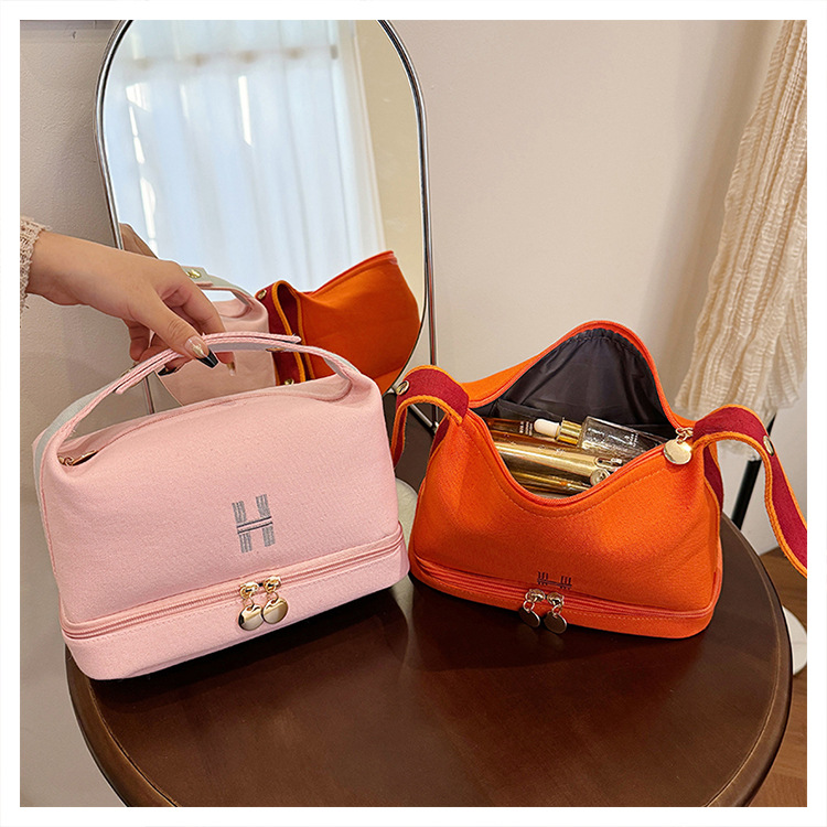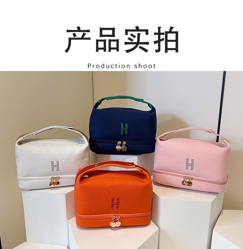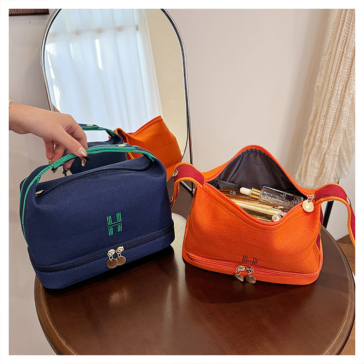 2026년 신제품 아마존 휴대용 캔버스 화장품 가방 대용량 휴대용 여행 수납 가방 이중층 도시락 가방