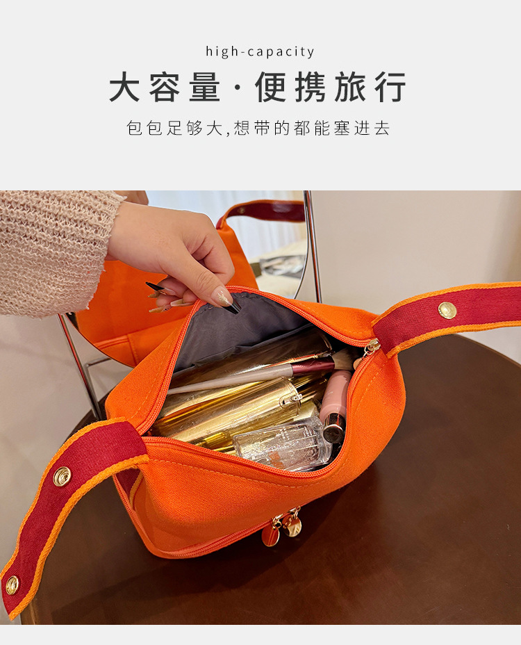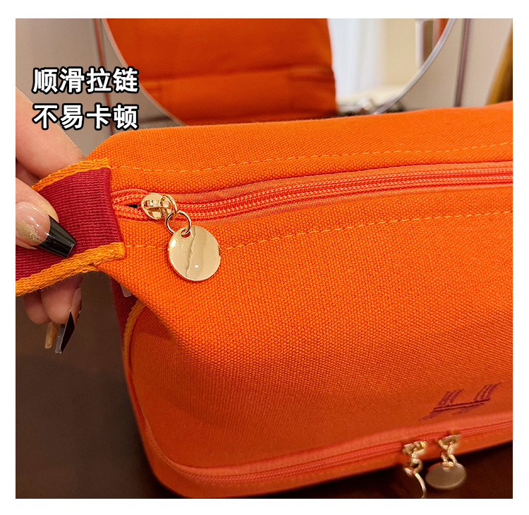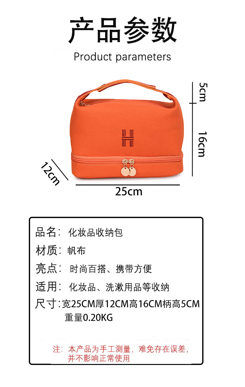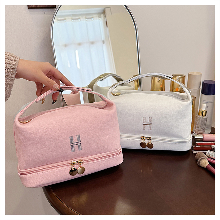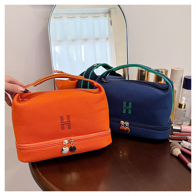 2026년 신제품 아마존 휴대용 캔버스 화장품 가방 대용량 휴대용 여행 수납 가방 이중층 도시락 가방