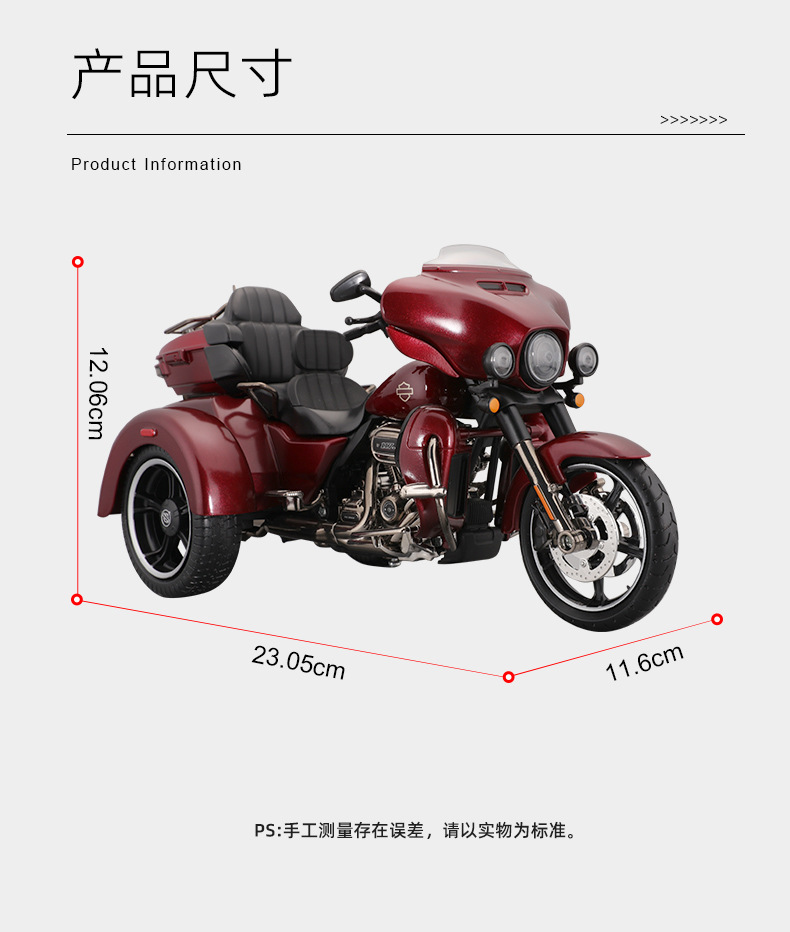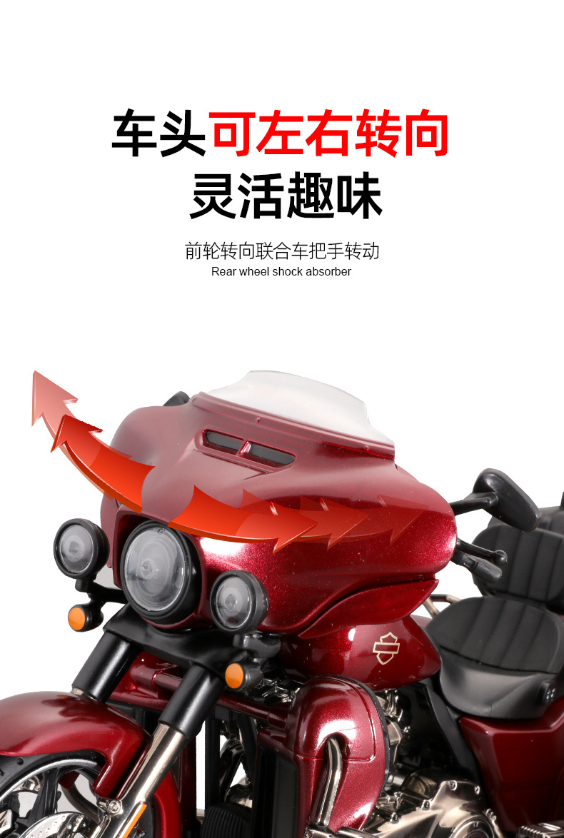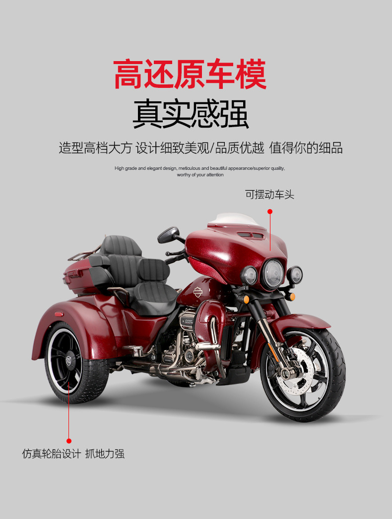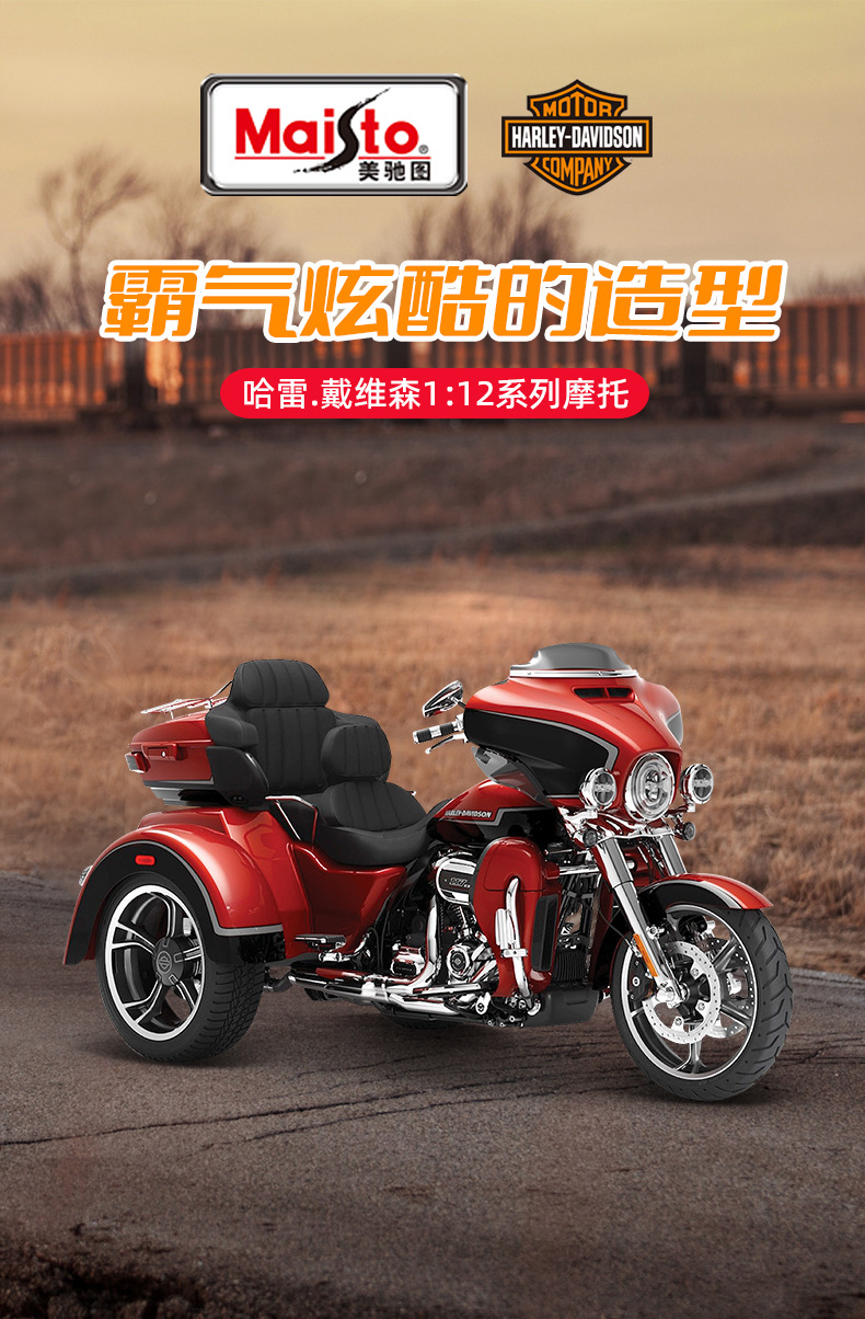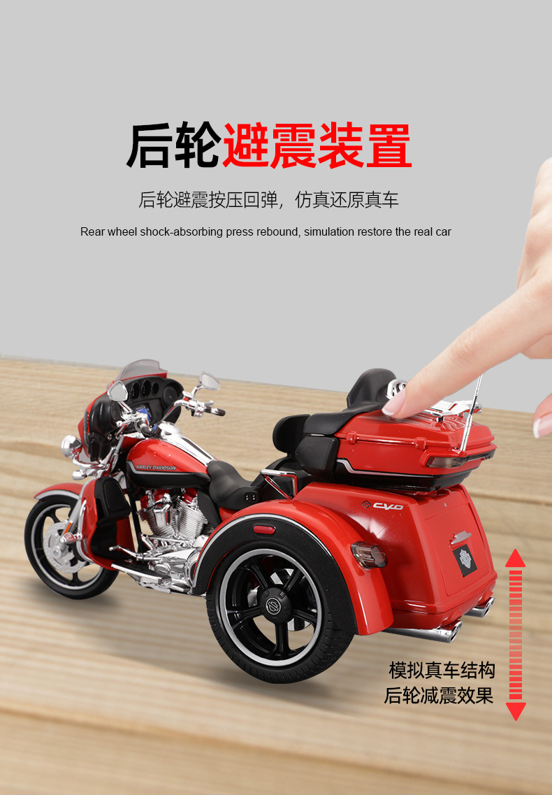 메치투 1:12 할리데이비슨 삼륜 오토바이 장난감 시뮬레이션 합금 모델 남성 장식품 자동차 모델 선물스토어 가기