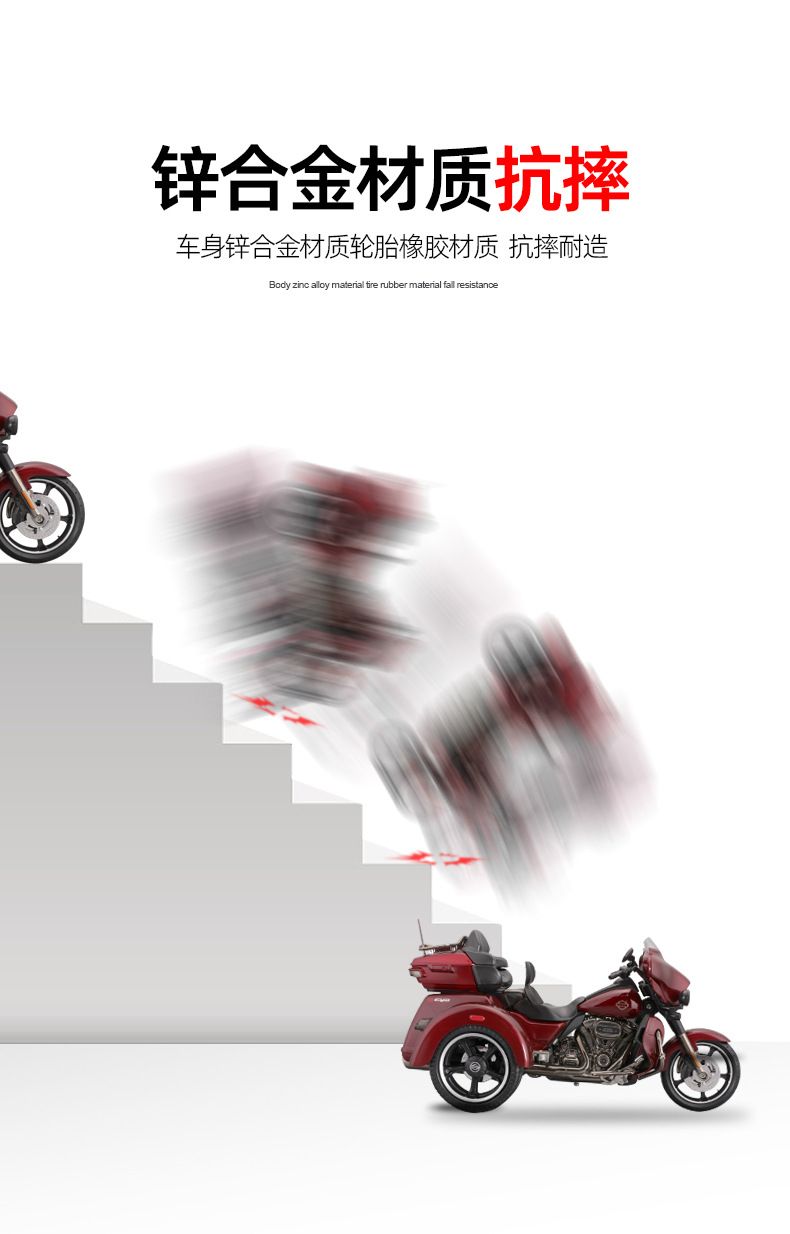 메치투 1:12 할리데이비슨 삼륜 오토바이 장난감 시뮬레이션 합금 모델 남성 장식품 자동차 모델 선물