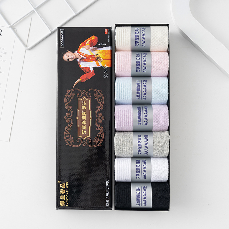챔피언 보증 7A 아로마 테라피 탈취제 양말 여성 7 쌍의 선물 상자 튜브 양말 단색 통기성 남성 비즈니스 양말스토어 가기