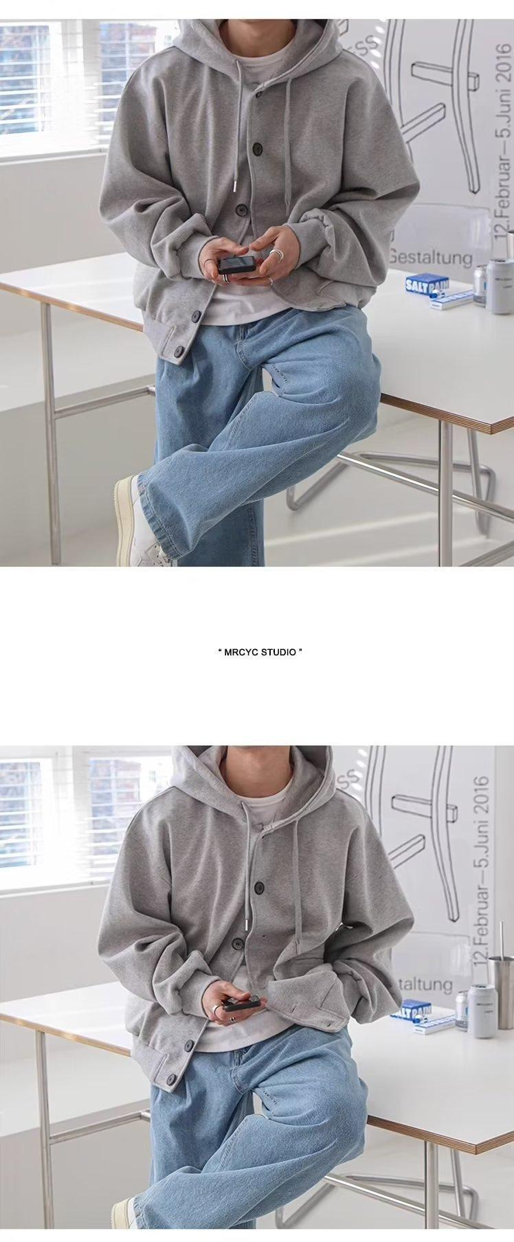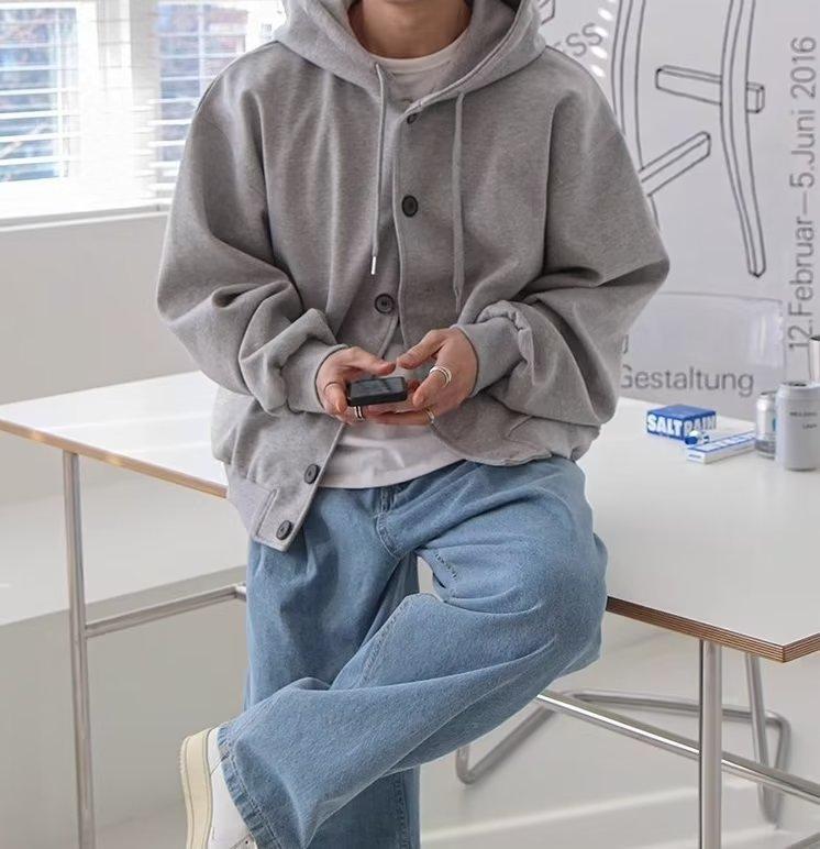 느슨한 땀 남자 일본 스타일 게으른 스타일 패션 디자인 센스 니쉬 솔리드 컬러 올 매치 후드 2024 패션 브랜드 잘 생긴스토어 가기