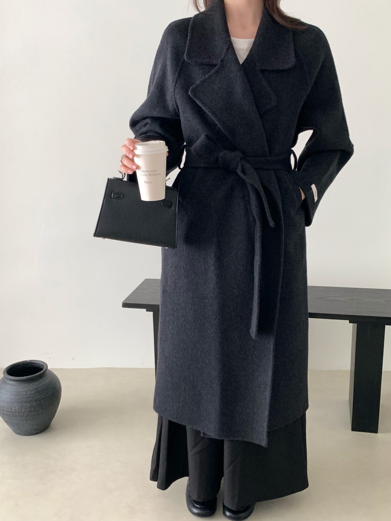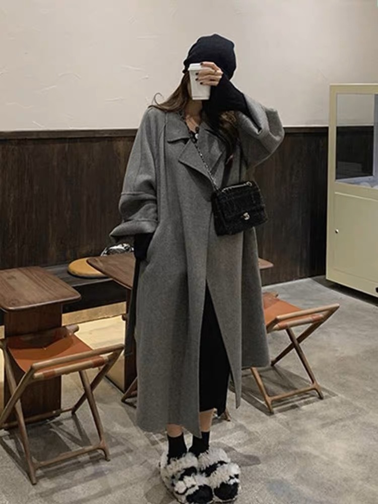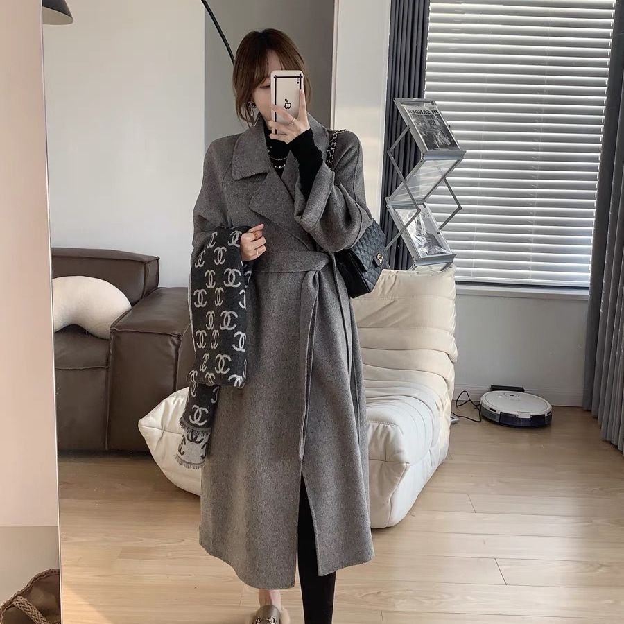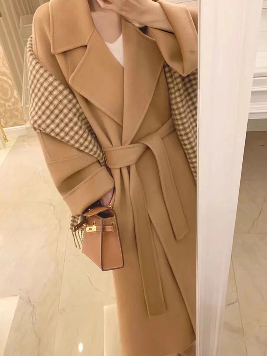 시칠리아 양면 울 코트 레드 벨트 슈트 칼라 롱 울 코트 여성용 레이지 스타일스토어 가기