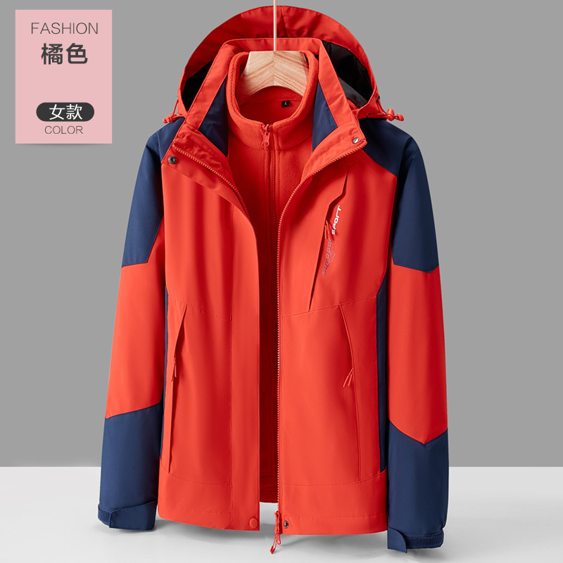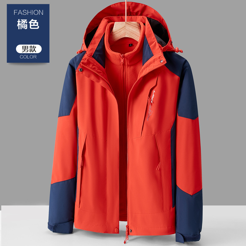오렌지 오렌지 야외 폭행 의류 남녀 3 대 1 가을과 겨울 기모 두꺼운 방수 작업복 인쇄스토어 가기
