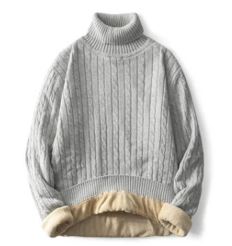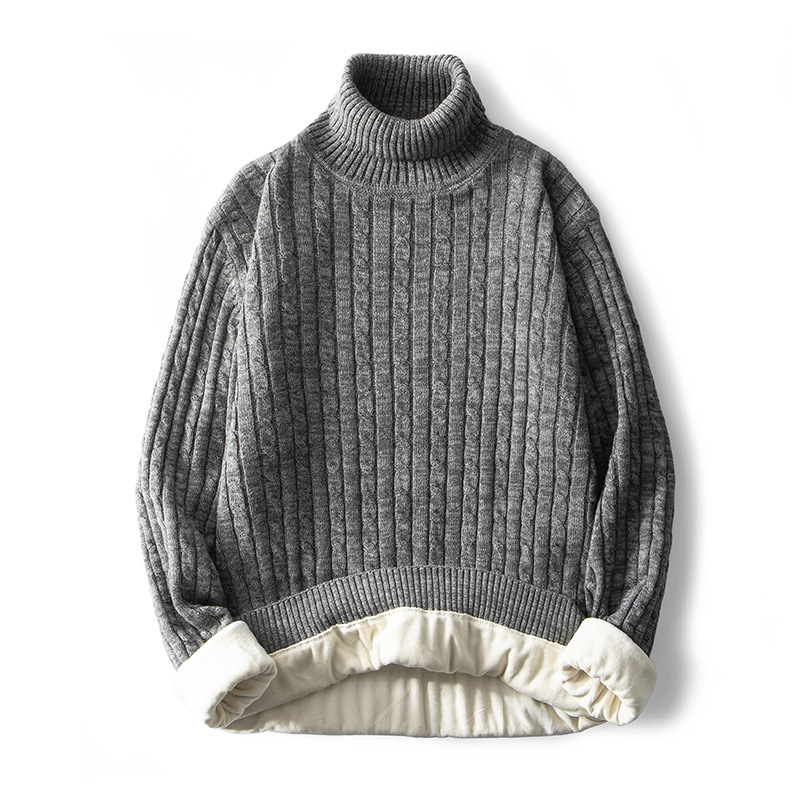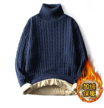 毛衣男士秋冬季加绒加厚保暖纯色高领棉毛衣衣针织衫秋衣跨境