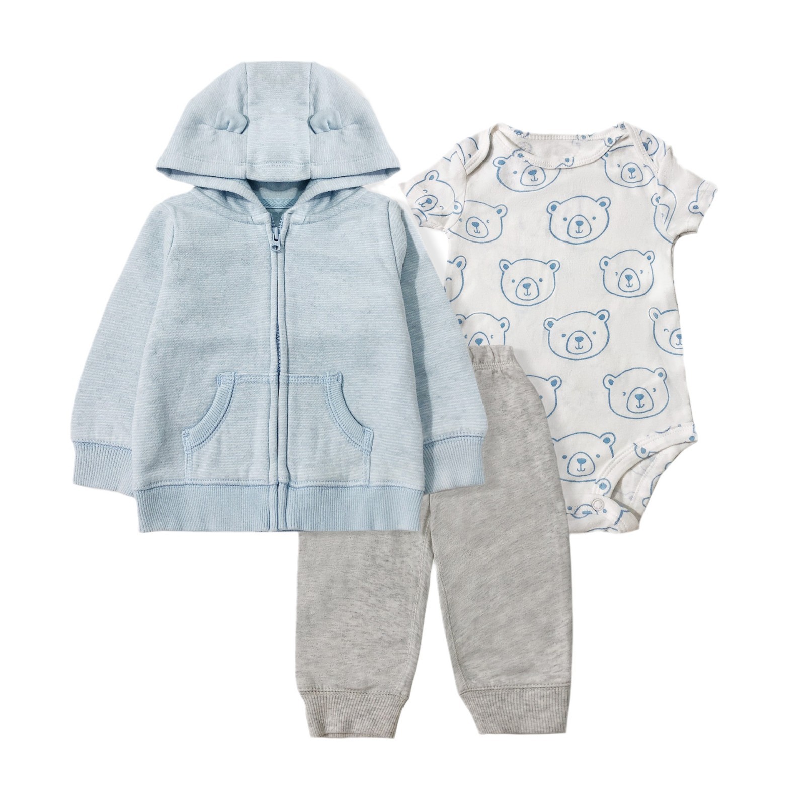 아기의 가을과 겨울 캐주얼 세트 소년의 아기의 벨벳 자켓 코튼 팬츠 반팔 탑 3 피스 아기 옷스토어 가기