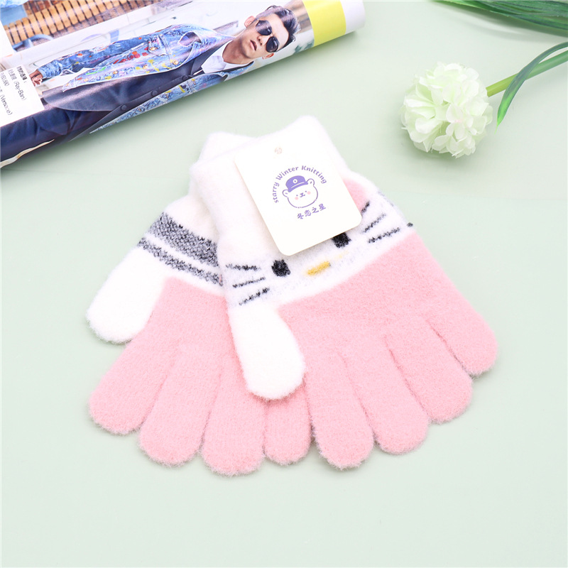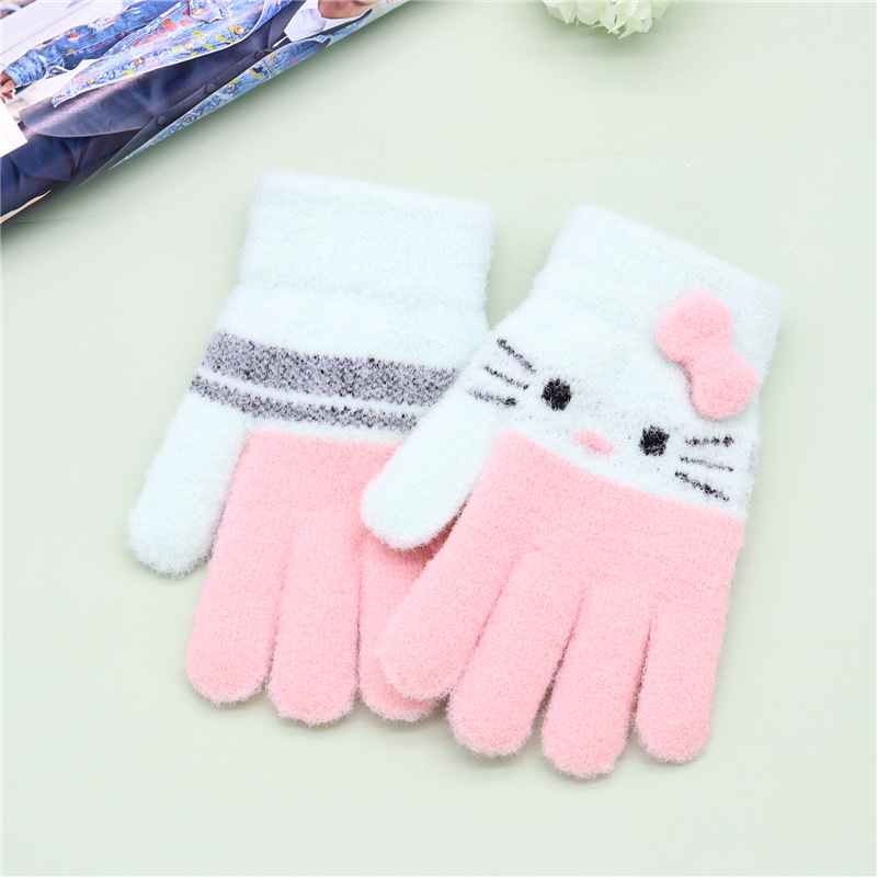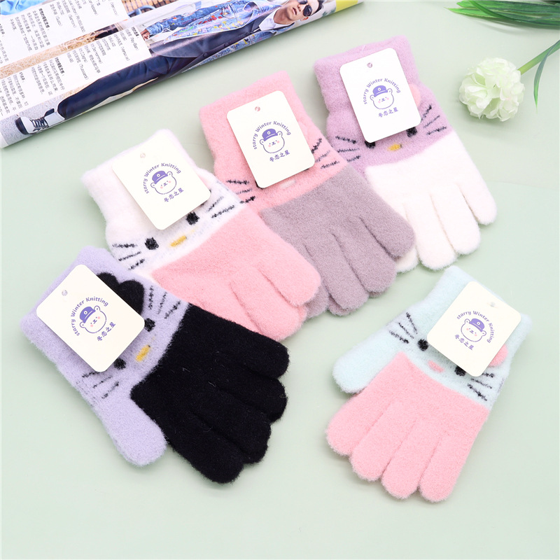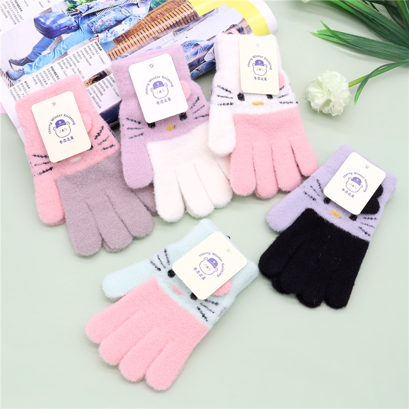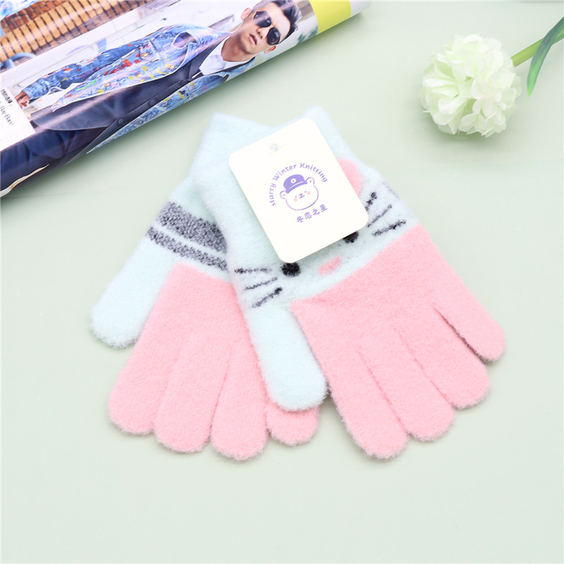 3 ~ 8 세 어린이 귀여운 전체 손가락 장갑 따뜻한 겨울 귀여운 양모 다섯 손가락 니트 두꺼운 고양이 크리스탈 원사스토어 가기