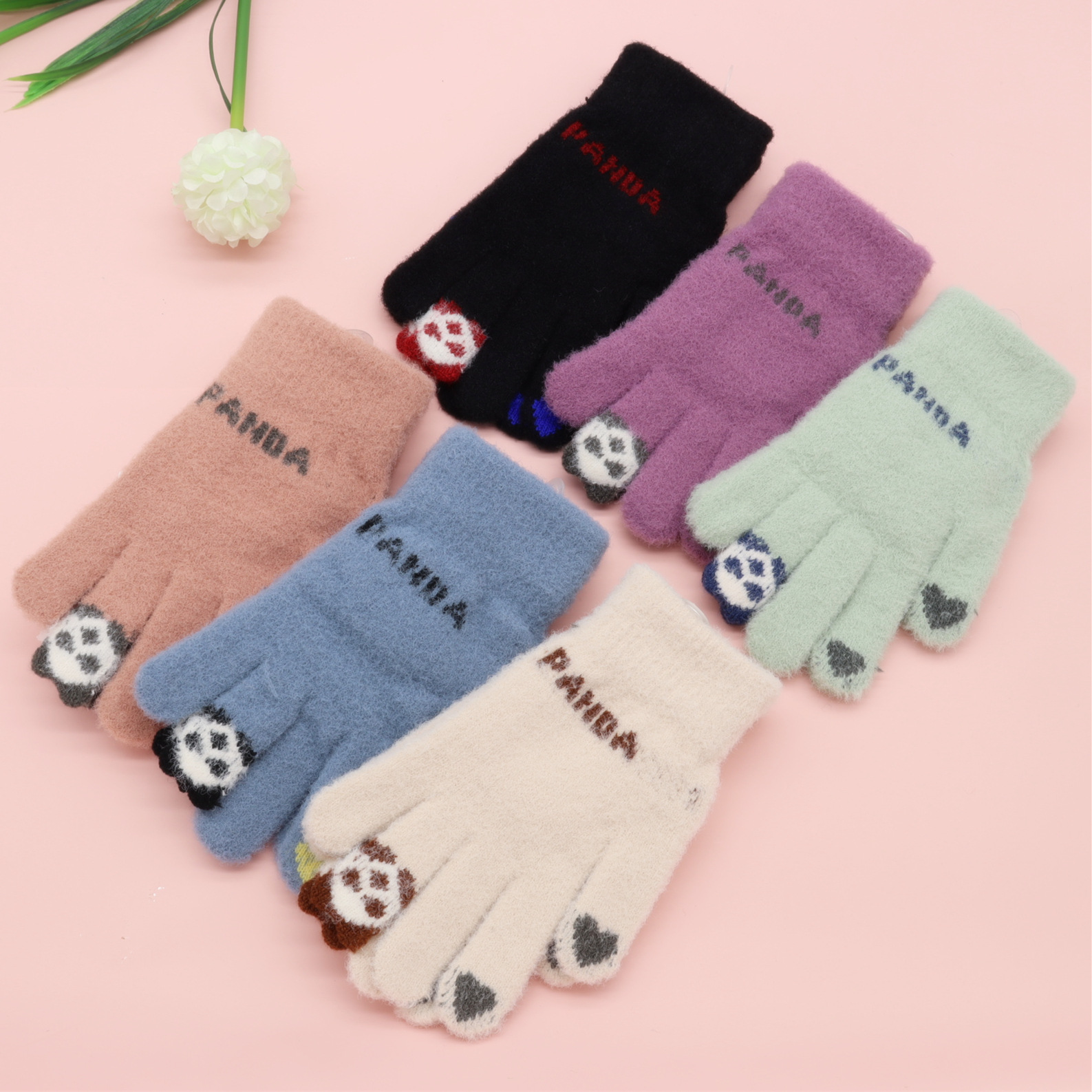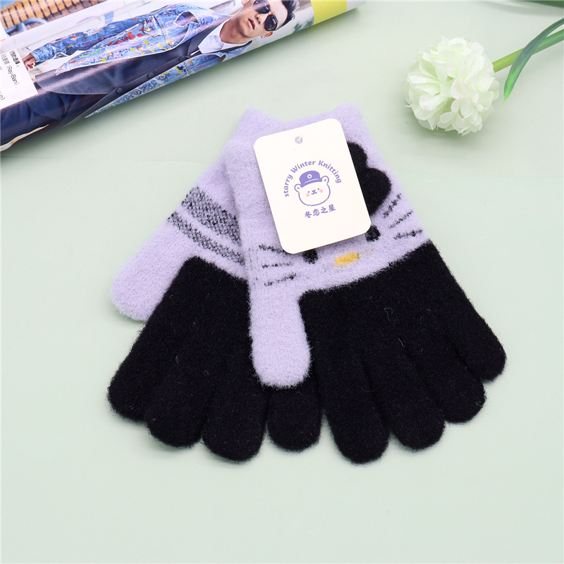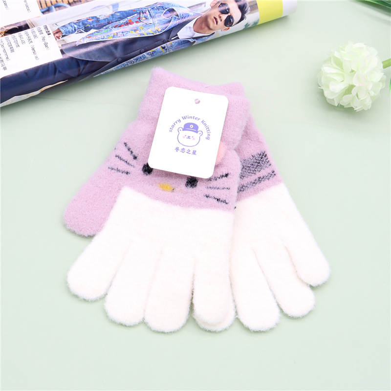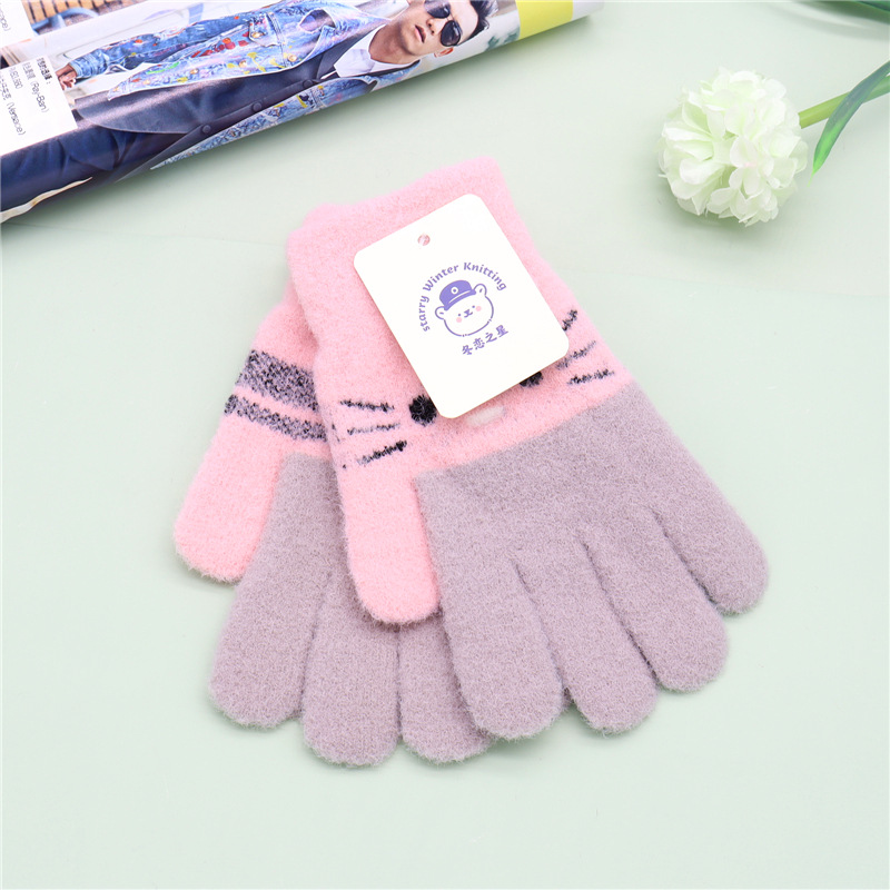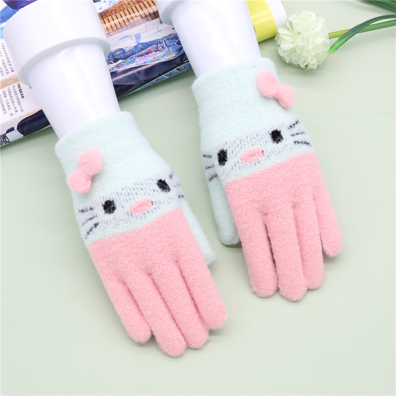 3 ~ 8 세 어린이 귀여운 전체 손가락 장갑 따뜻한 겨울 귀여운 양모 다섯 손가락 니트 두꺼운 고양이 크리스탈 원사스토어 가기