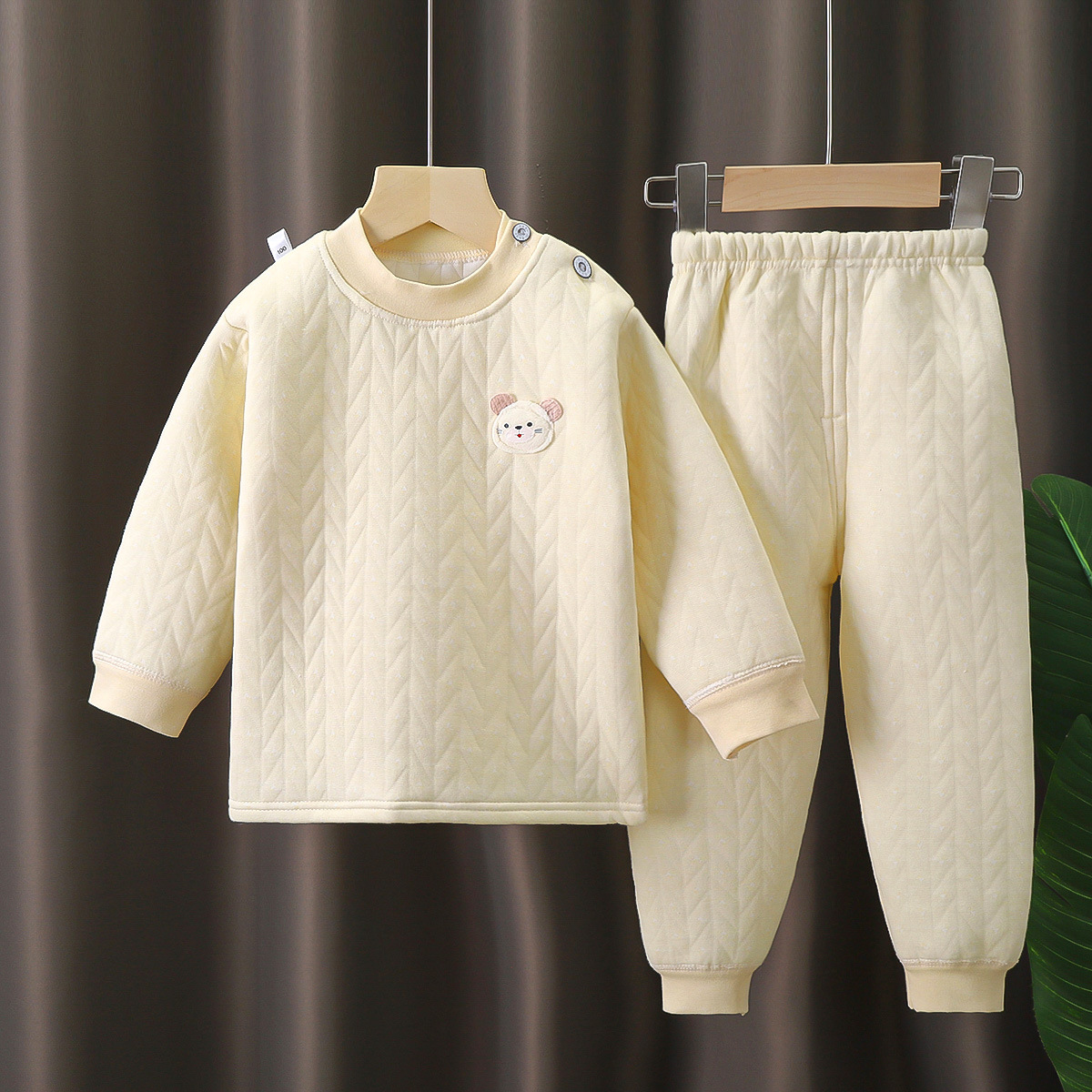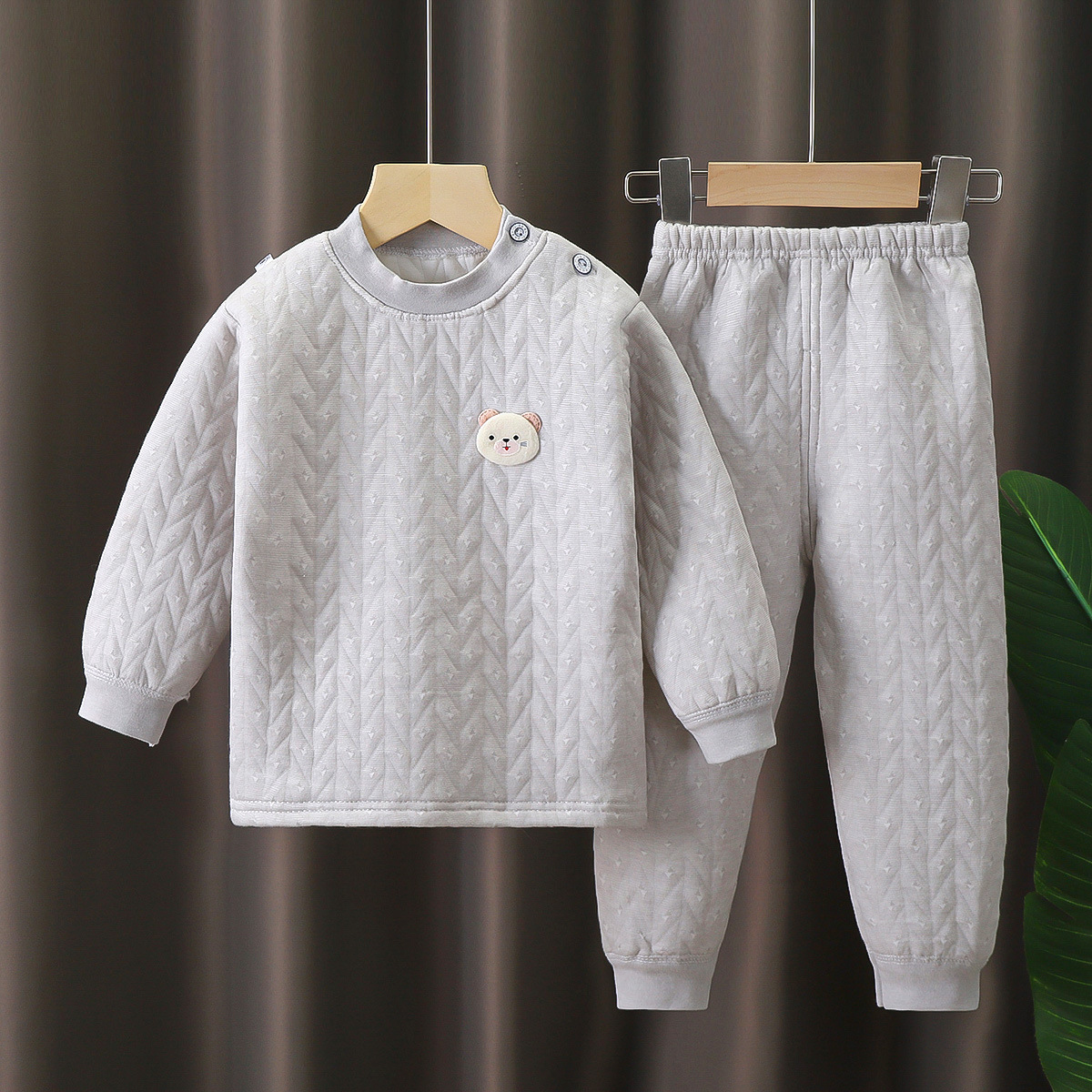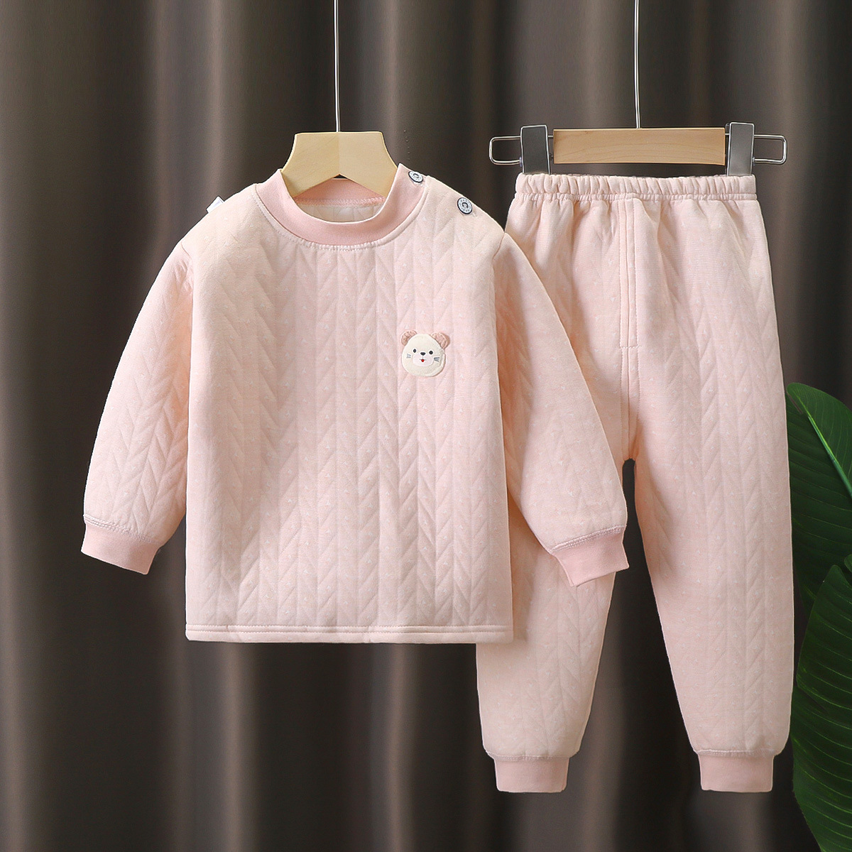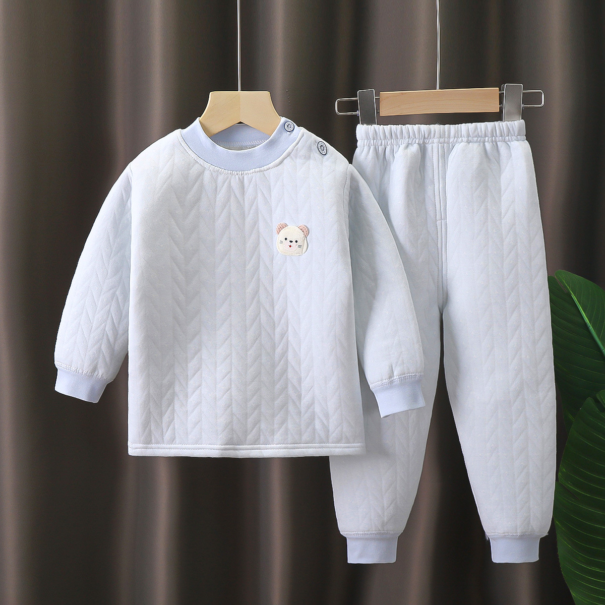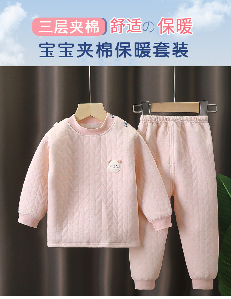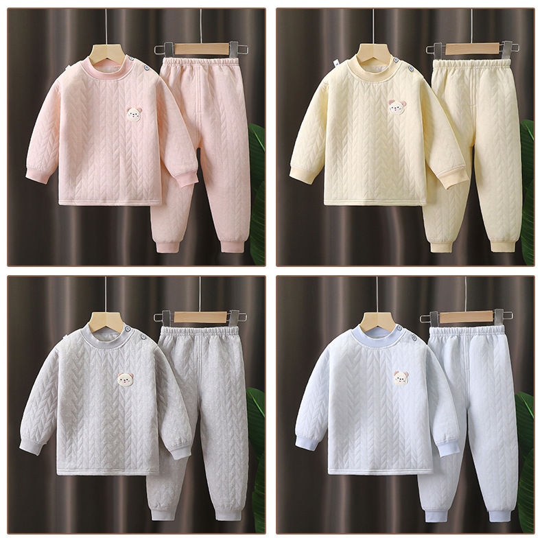 남성과 여성을위한 가을과 겨울 어린이 따뜻한 세트 면화 3 층 퀼트 속옷 아기 잠옷 집 옷