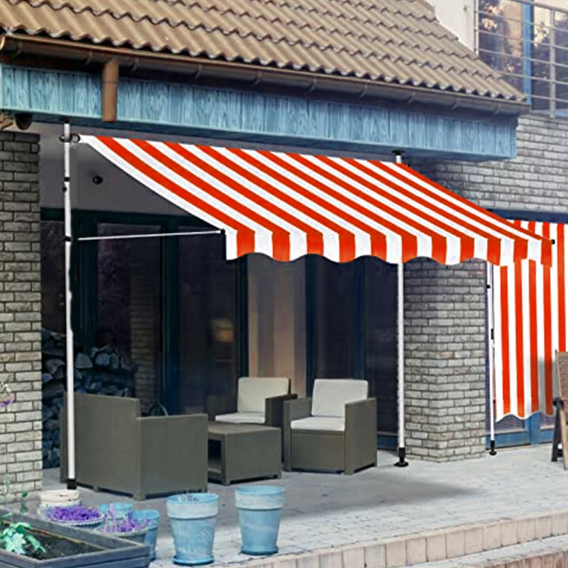 • 노란색과 흰색 줄무늬 차양 천 + 회색 브래킷♜
