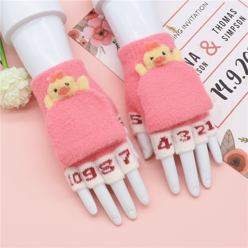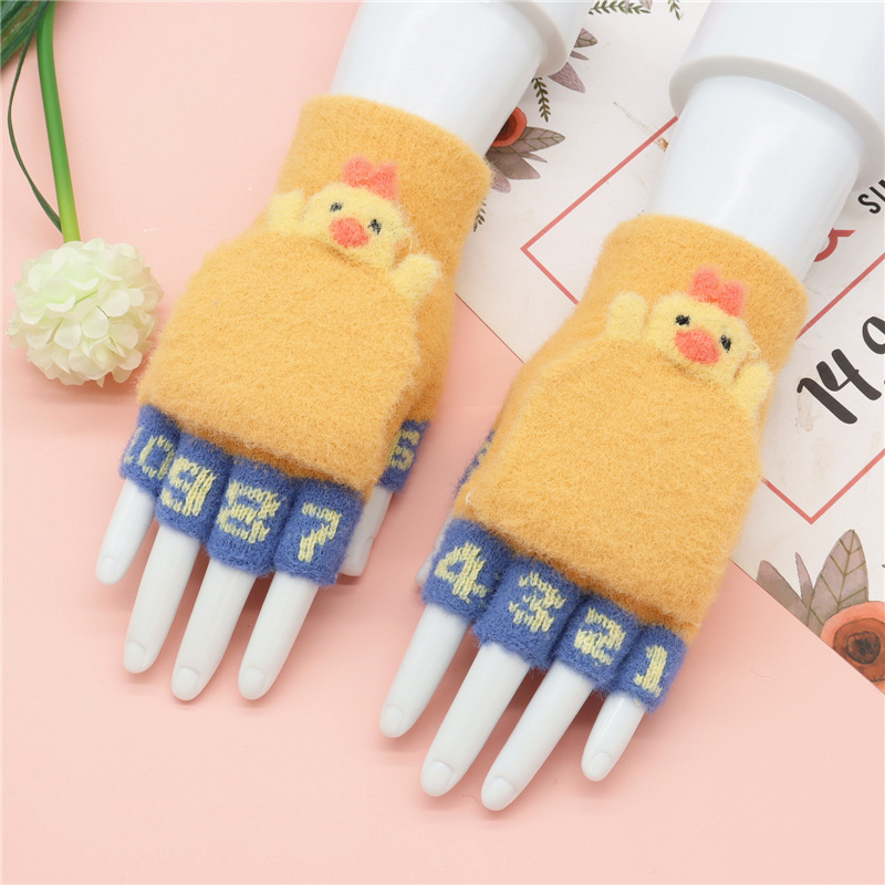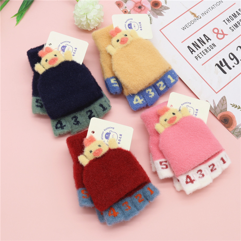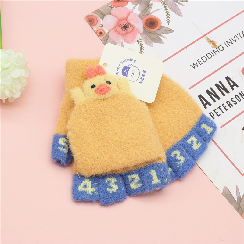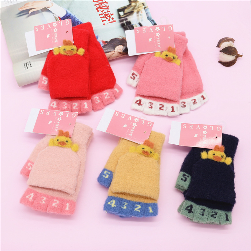 어린이 장갑 여성의 겨울 따뜻한 니트 반 손가락 플립 만화 학생 성인 아기 노란 오리 장갑