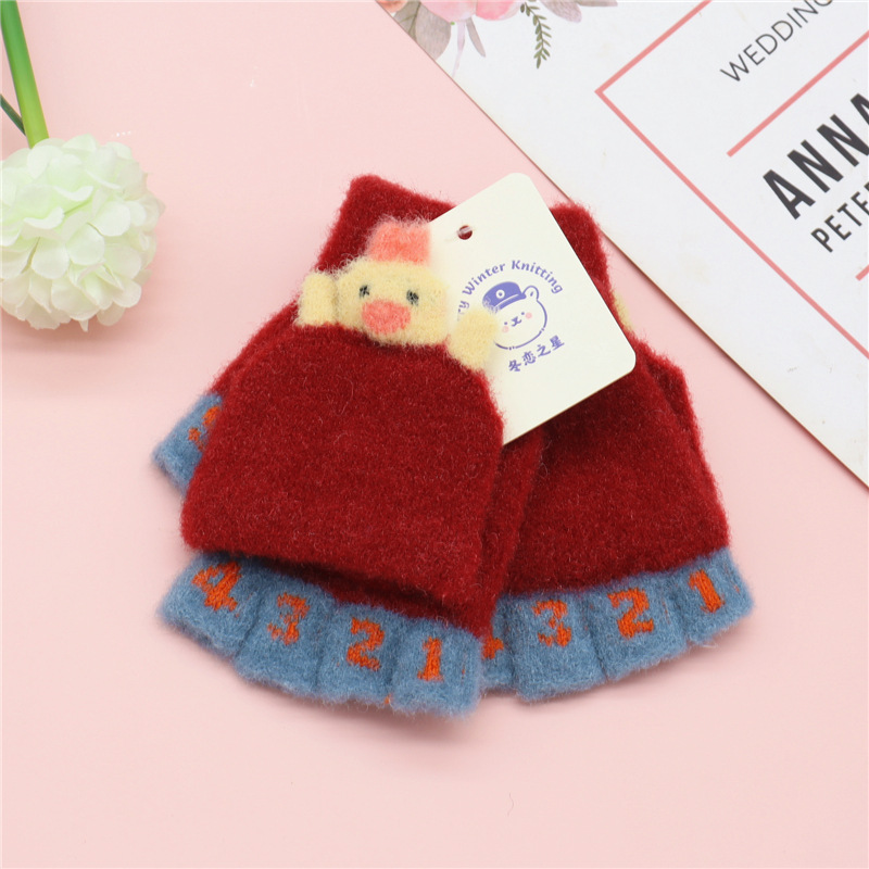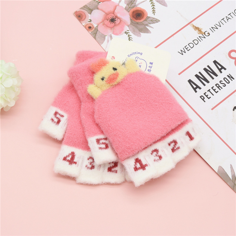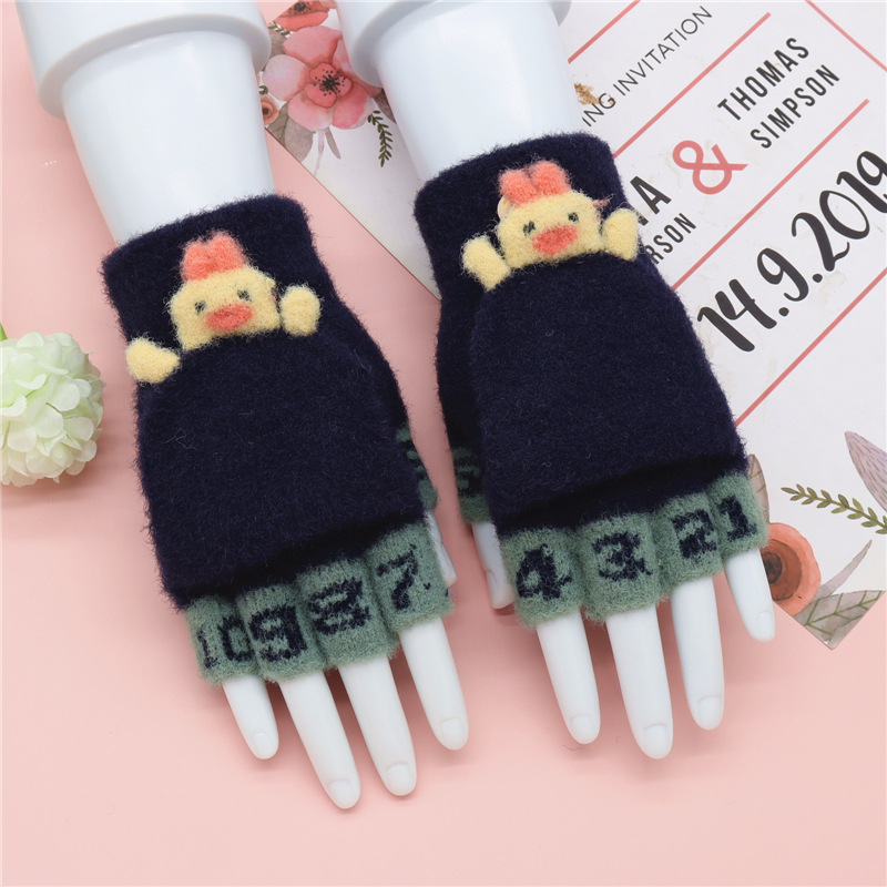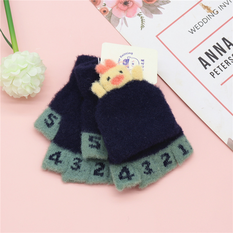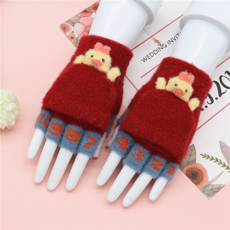 어린이 장갑 여성의 겨울 따뜻한 니트 반 손가락 플립 만화 학생 성인 아기 노란 오리 장갑