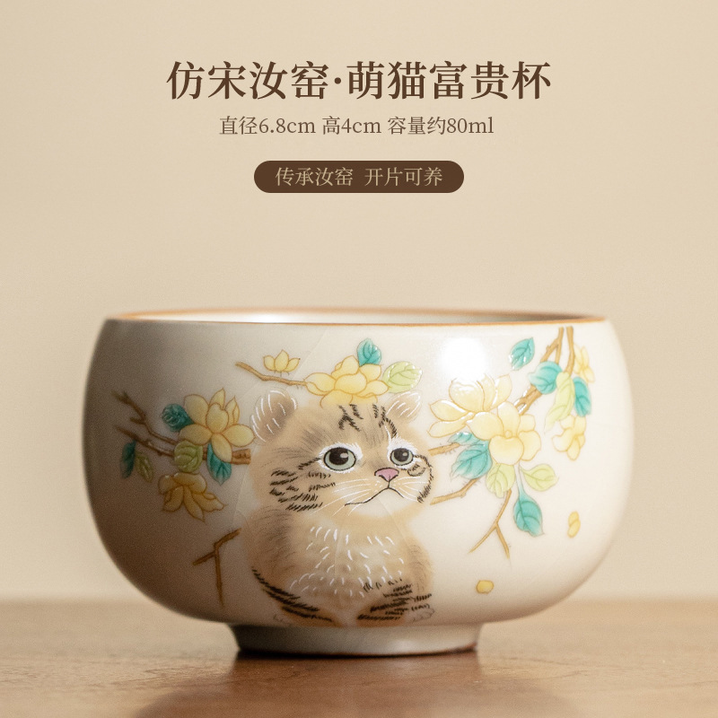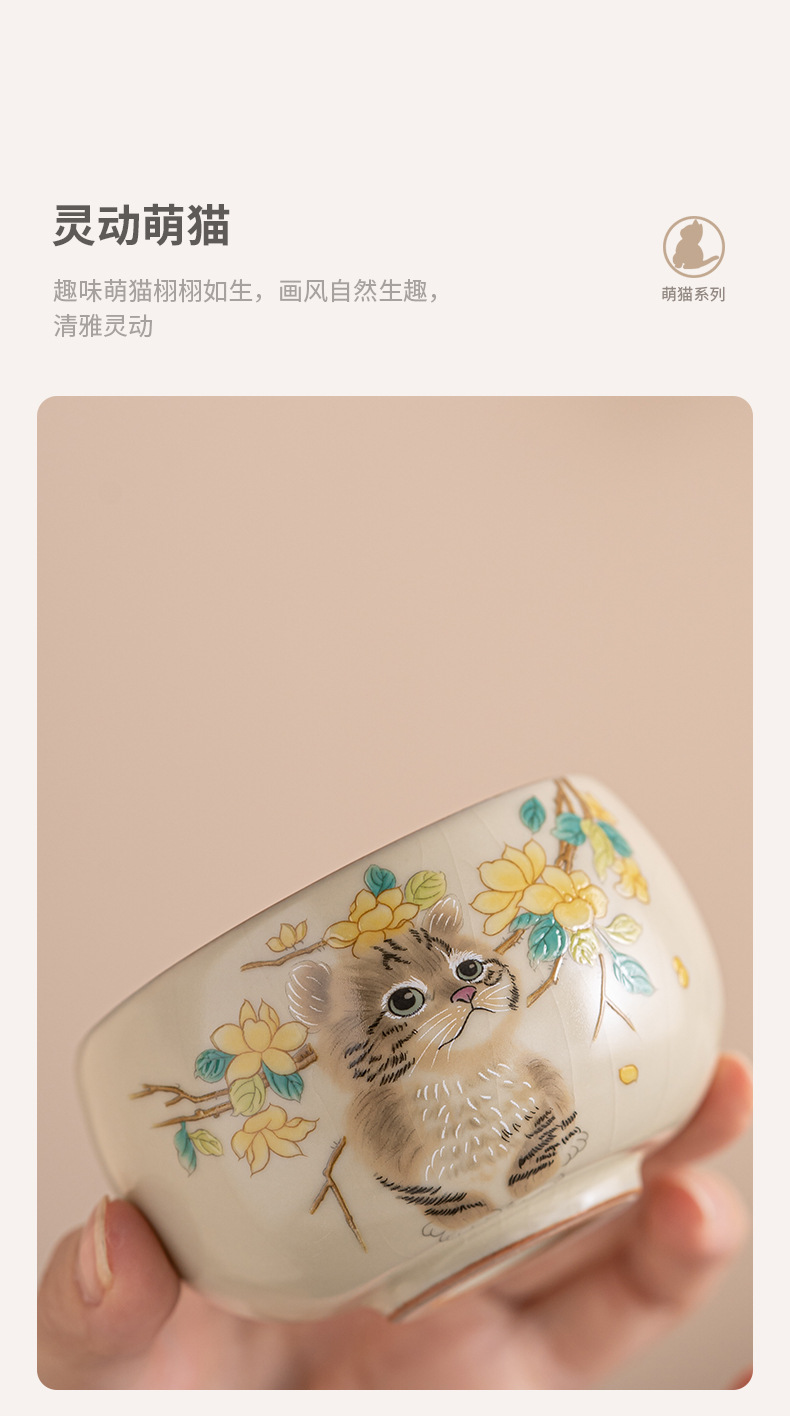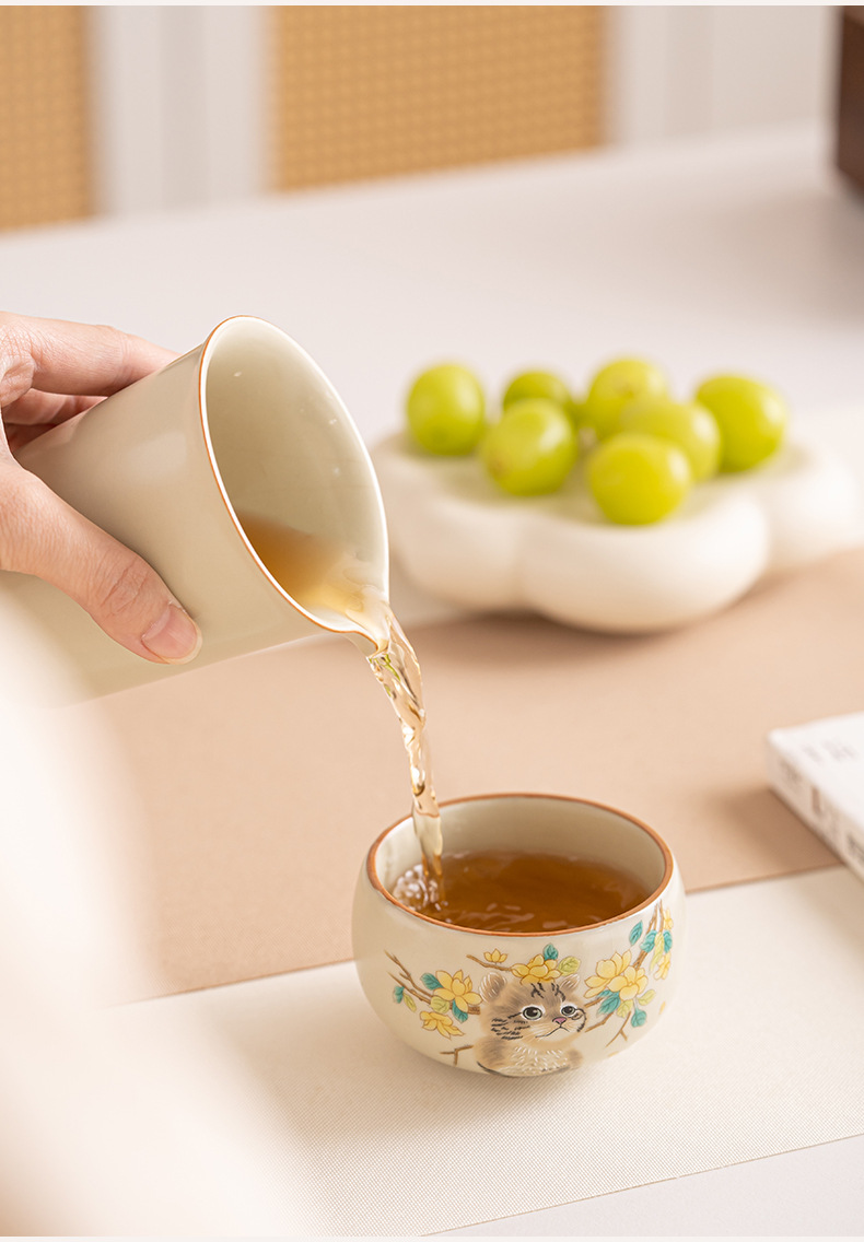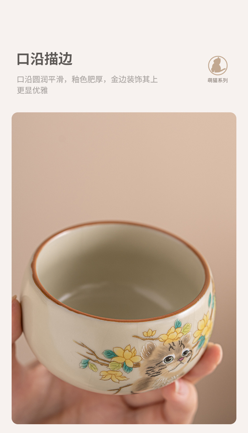 모방 노래 베이지 루이 야오 모에 고양이 티 컵 대용량 워터 컵 가정용 싱글 컵 오프닝 쿵푸 티 세트 마스터 컵스토어 가기