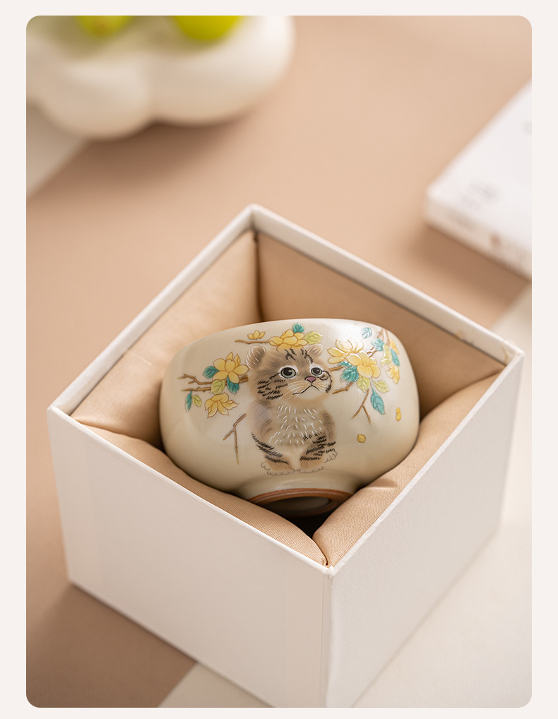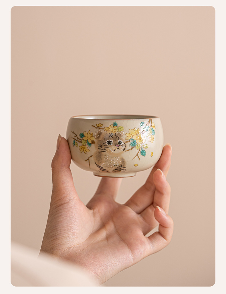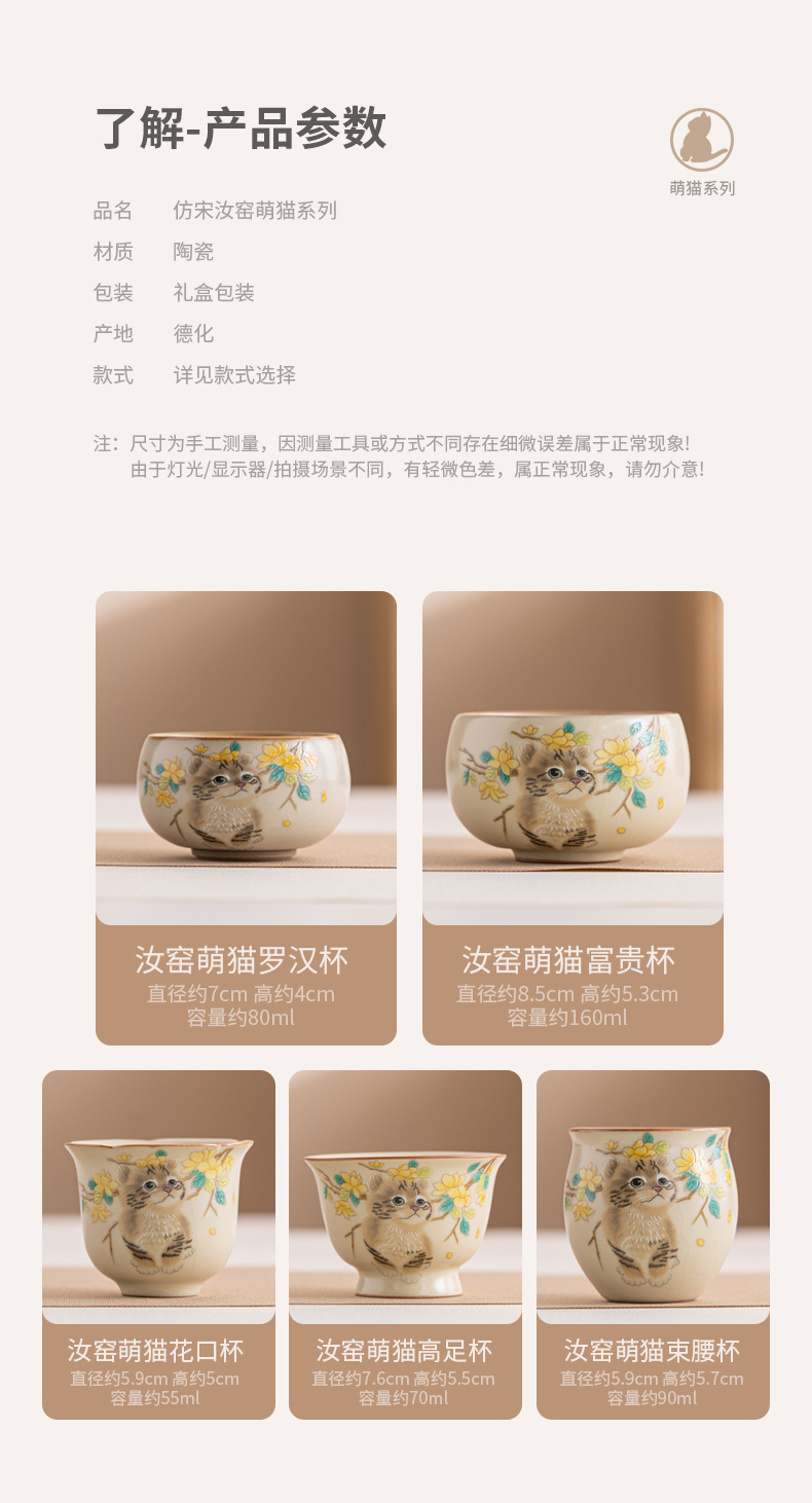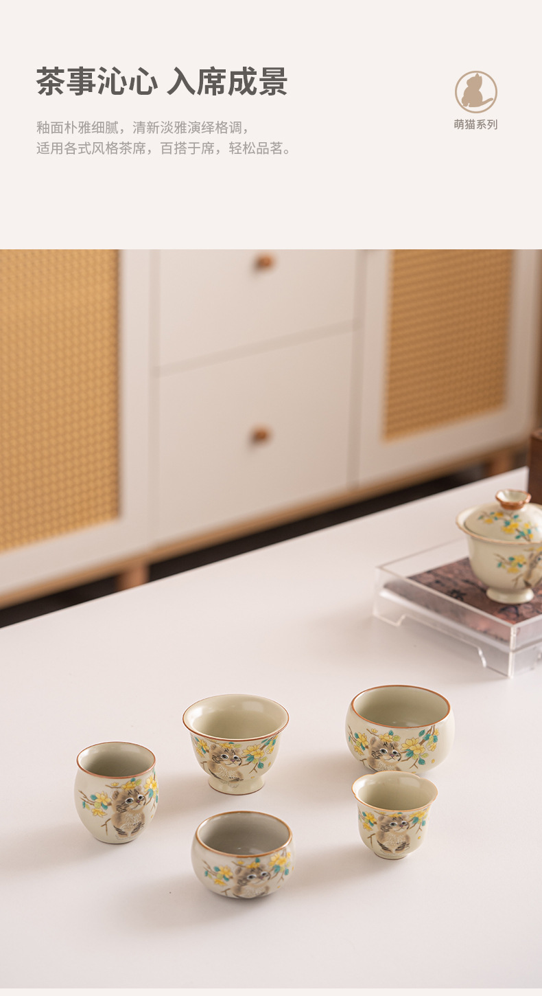 모방 노래 베이지 루이 야오 모에 고양이 티 컵 대용량 워터 컵 가정용 싱글 컵 오프닝 쿵푸 티 세트 마스터 컵스토어 가기