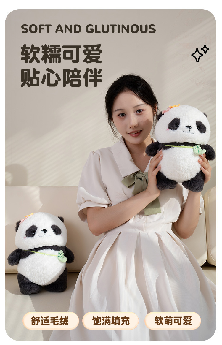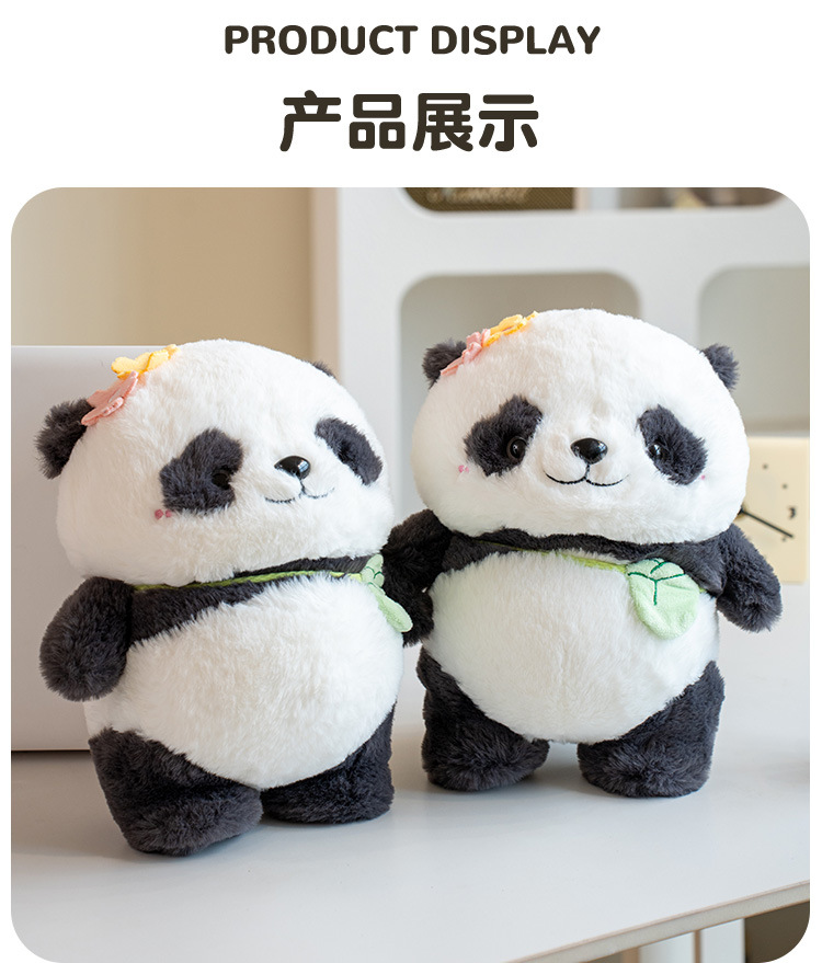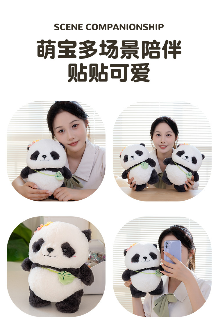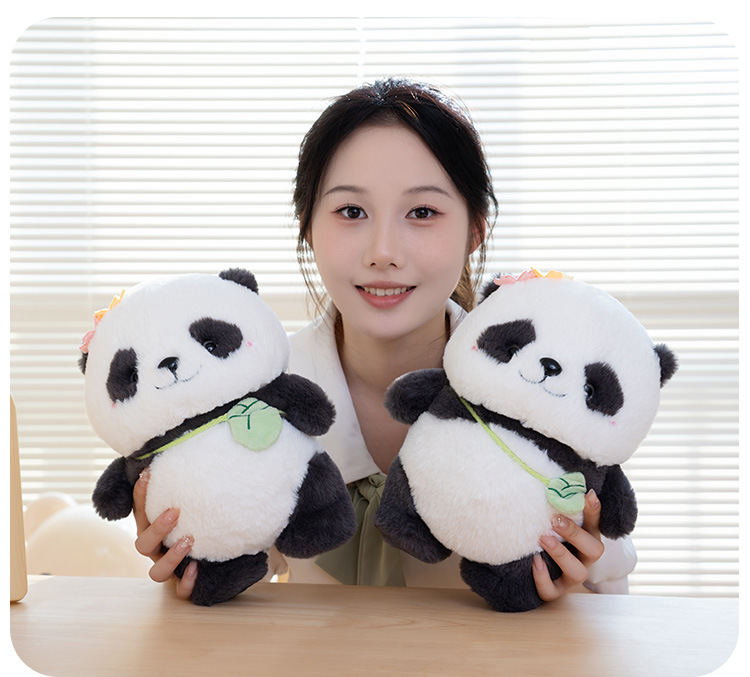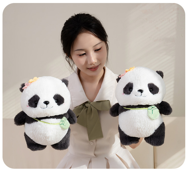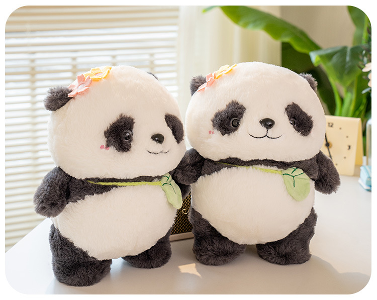 꽃 팬더 봉제 장난감 귀여운 시뮬레이션 팬더 인형 대나무 촬영 배낭 팬더 기념품 어린이 선물스토어 가기
