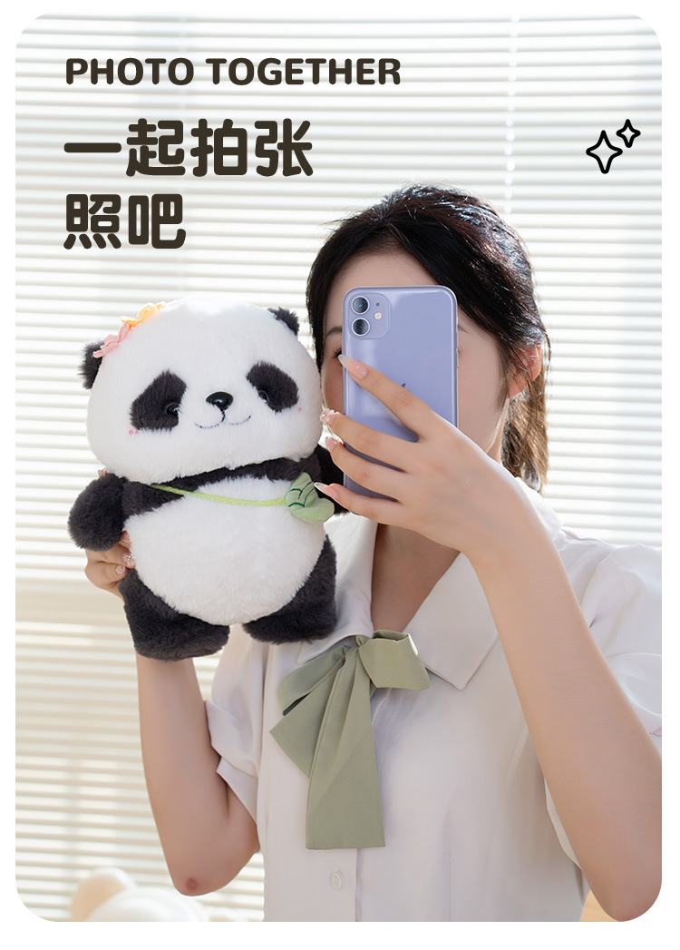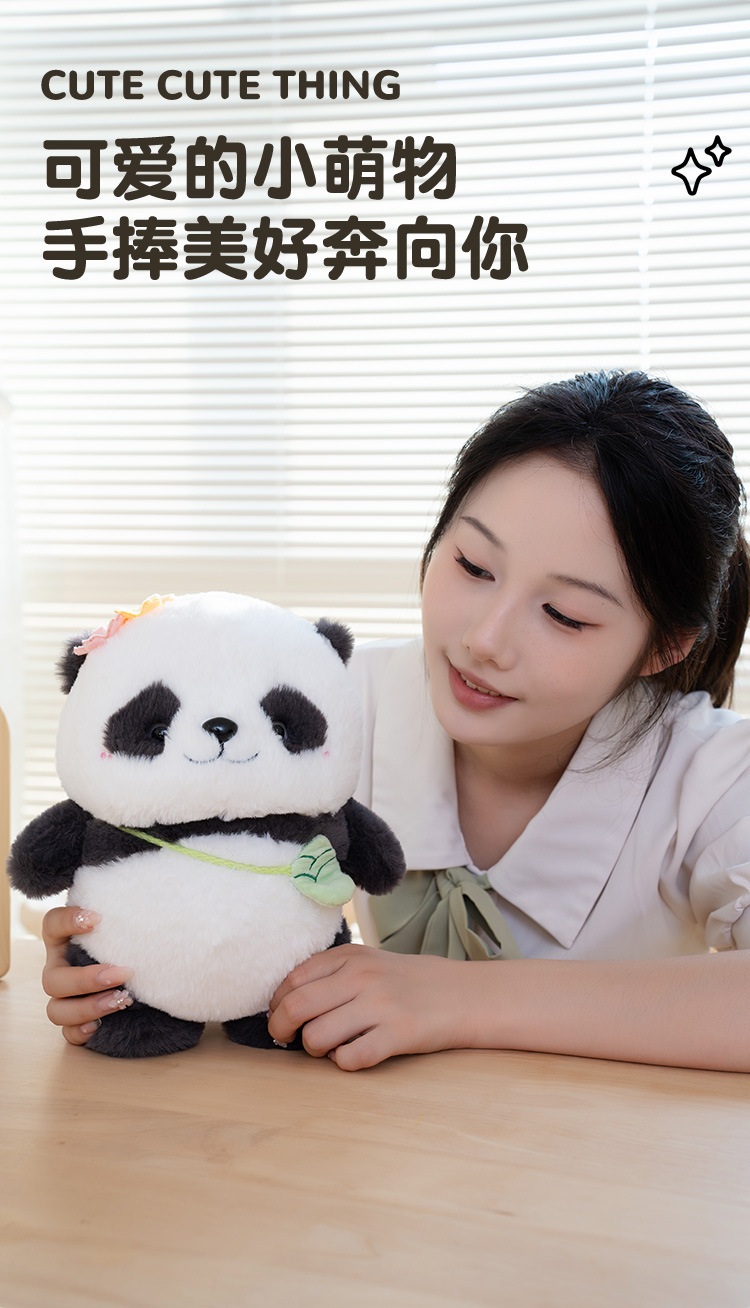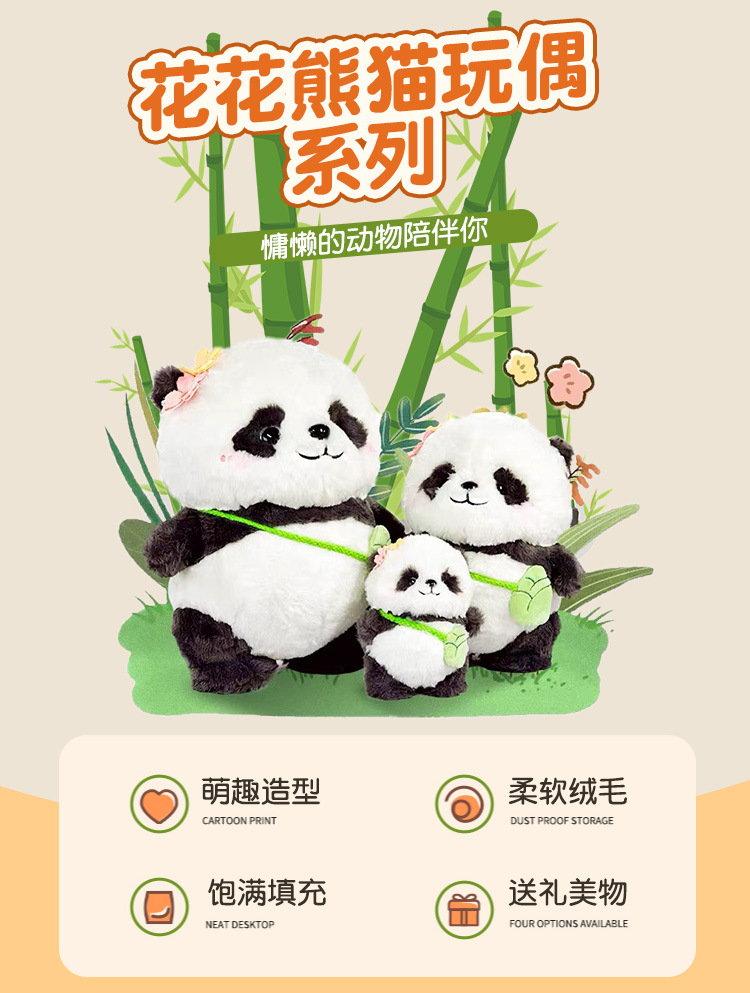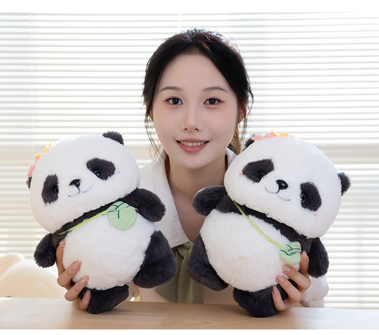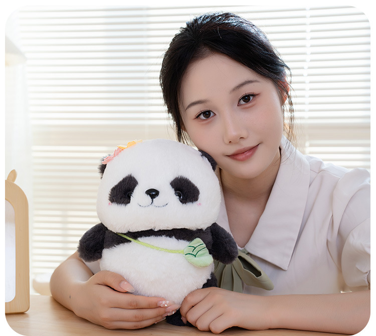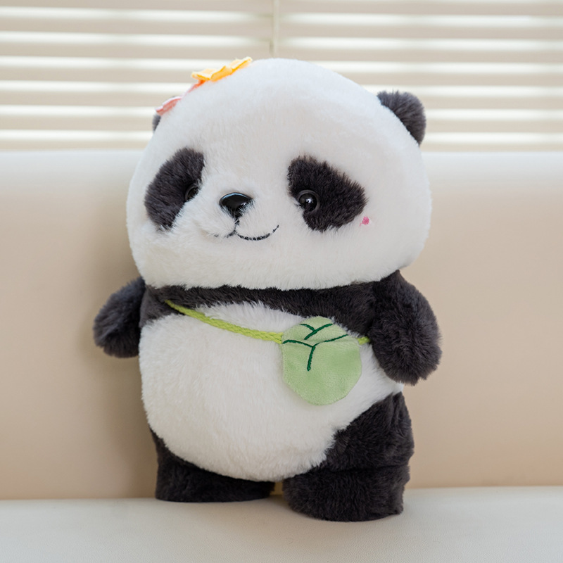 꽃 팬더 봉제 장난감 귀여운 시뮬레이션 팬더 인형 대나무 촬영 배낭 팬더 기념품 어린이 선물스토어 가기