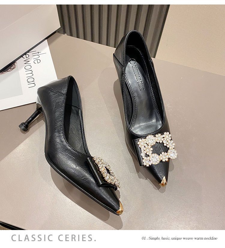 진짜 부드러운 가죽 하이힐 여성의 피곤하지 않은 발 2024 새로운 얇은 뒤꿈치 섹시한 패션 전문 신발 플러스 사이즈 작업 신발스토어 가기