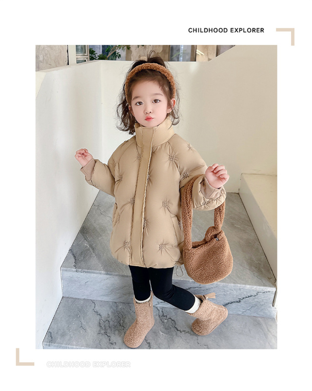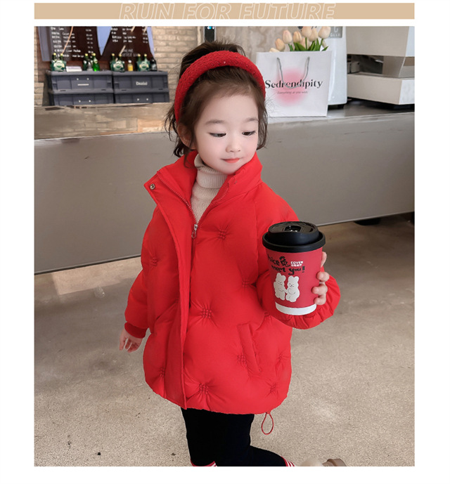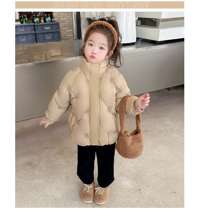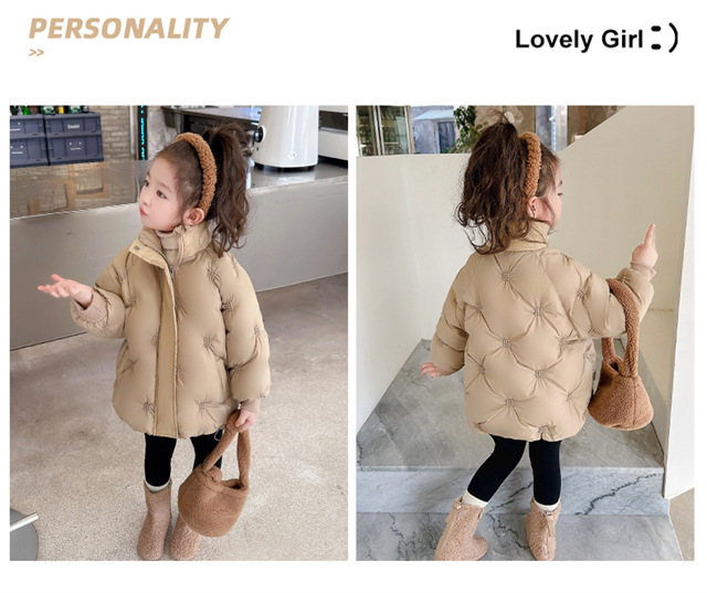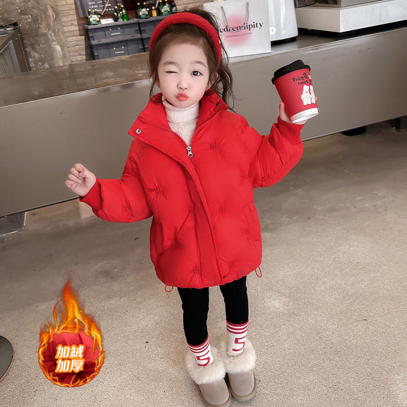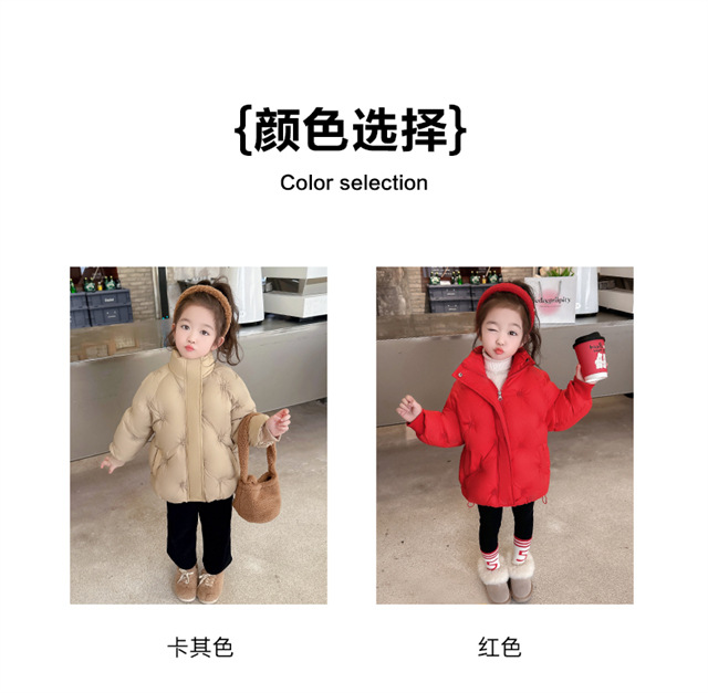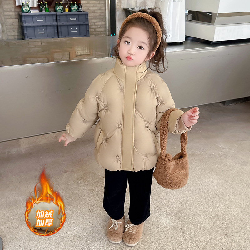 아기 소녀 겨울 2024 새로운 따뜻한 빵 의류 서양식 어린이 기모 두꺼운 단색 자수 코튼 코트스토어 가기