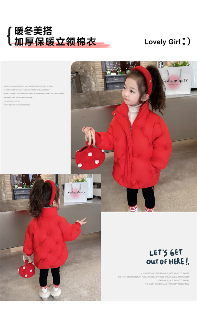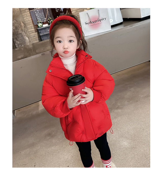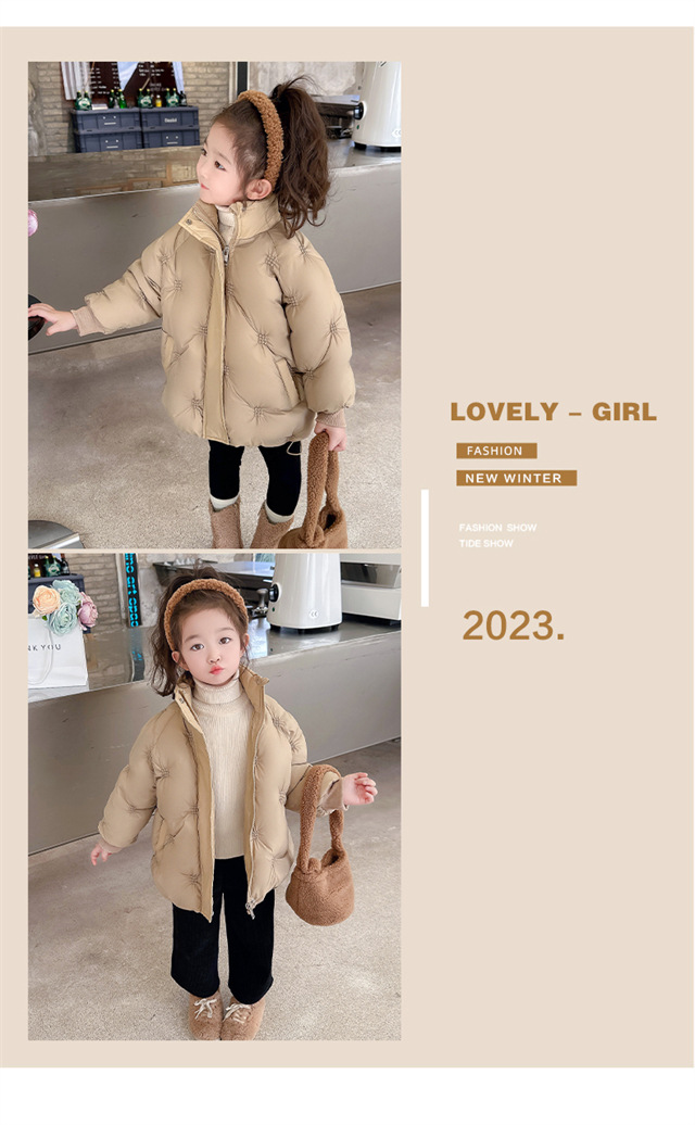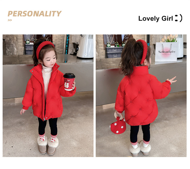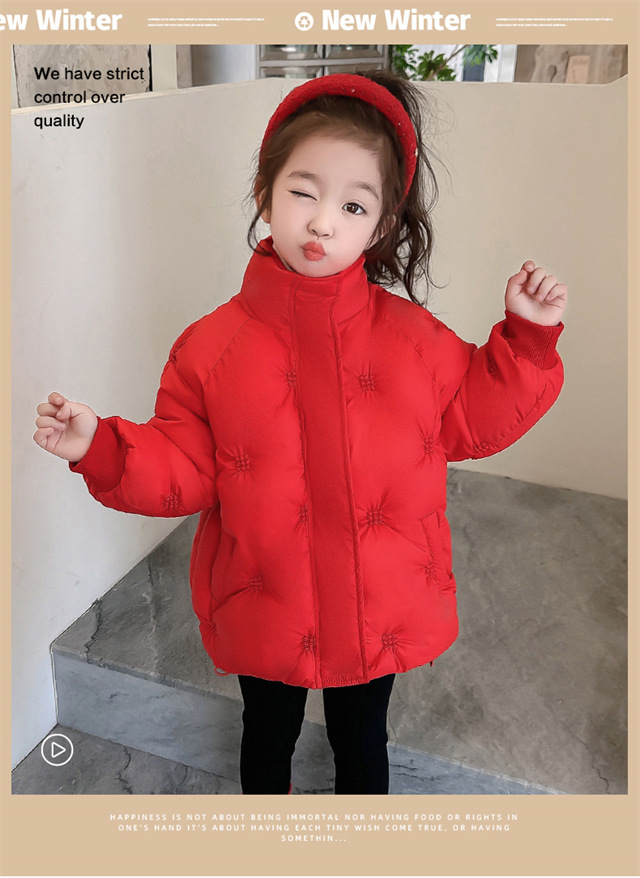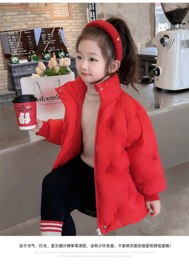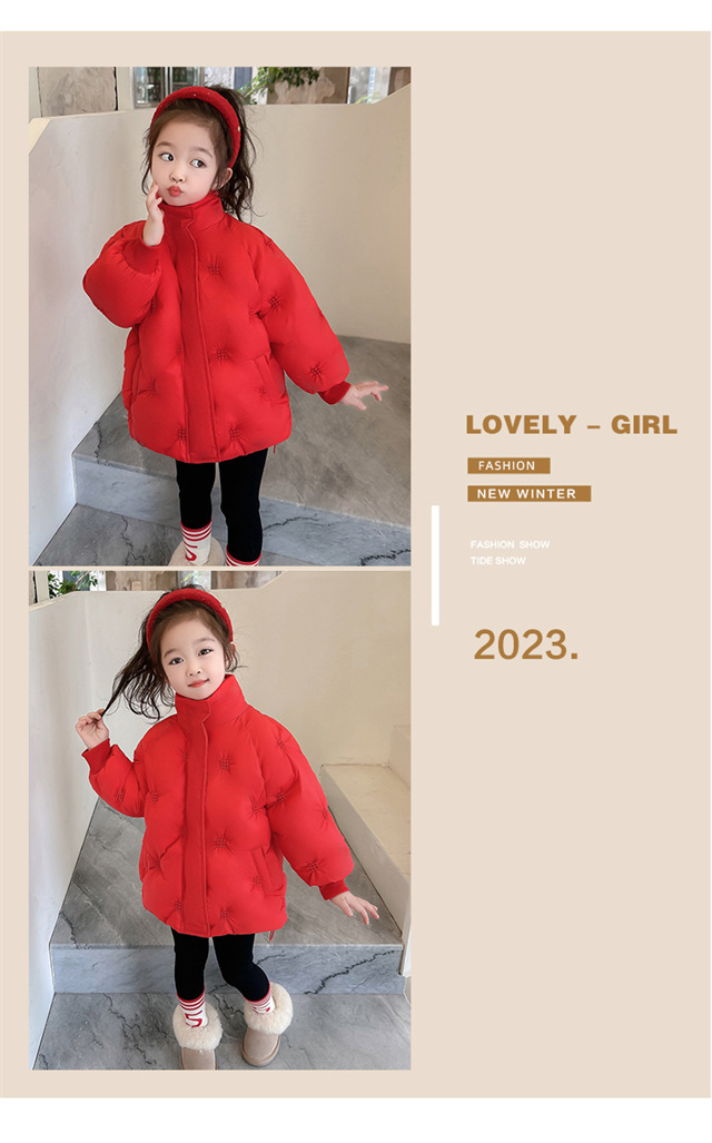아기 소녀 겨울 2024 새로운 따뜻한 빵 의류 서양식 어린이 기모 두꺼운 단색 자수 코튼 코트스토어 가기