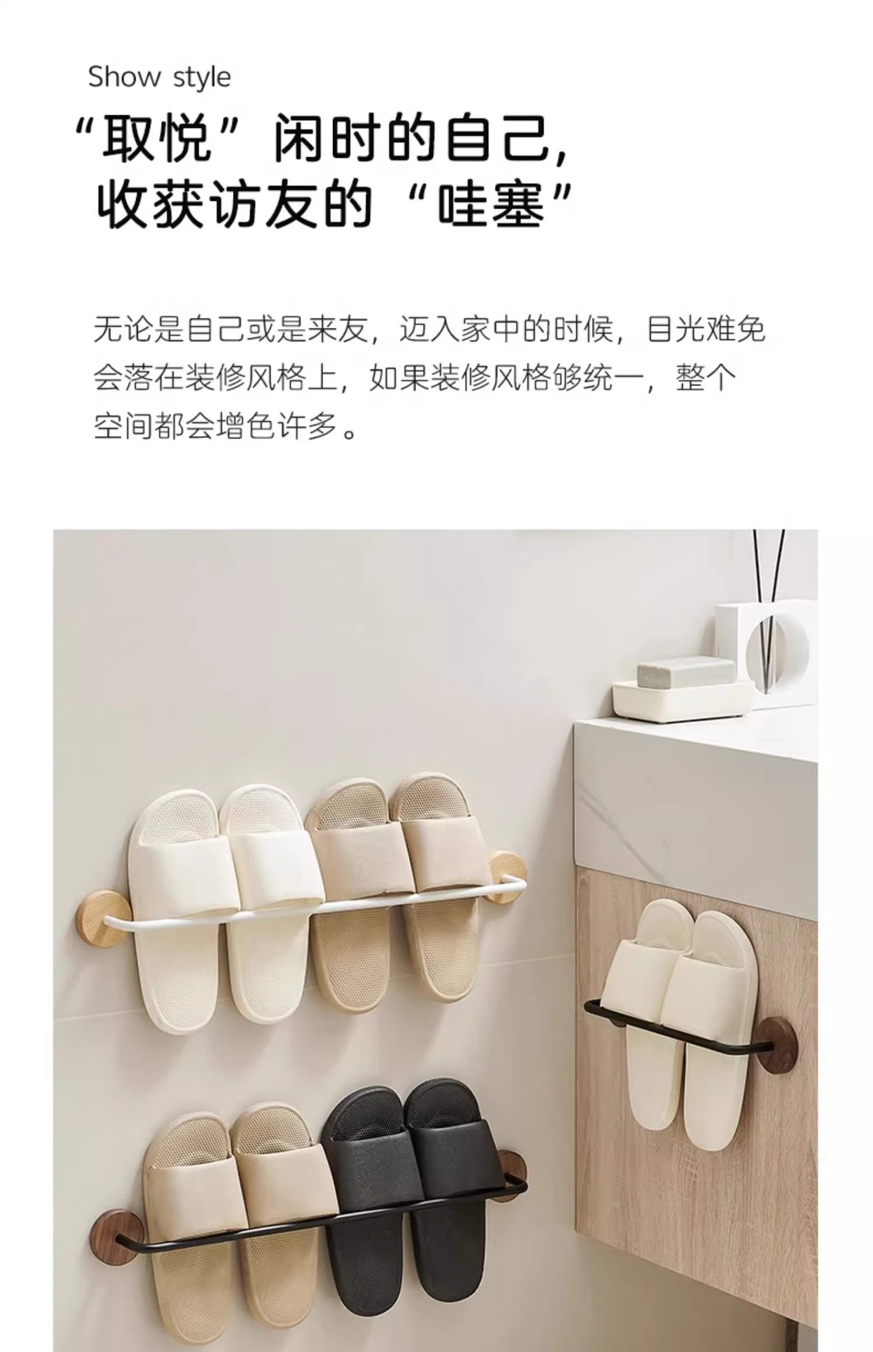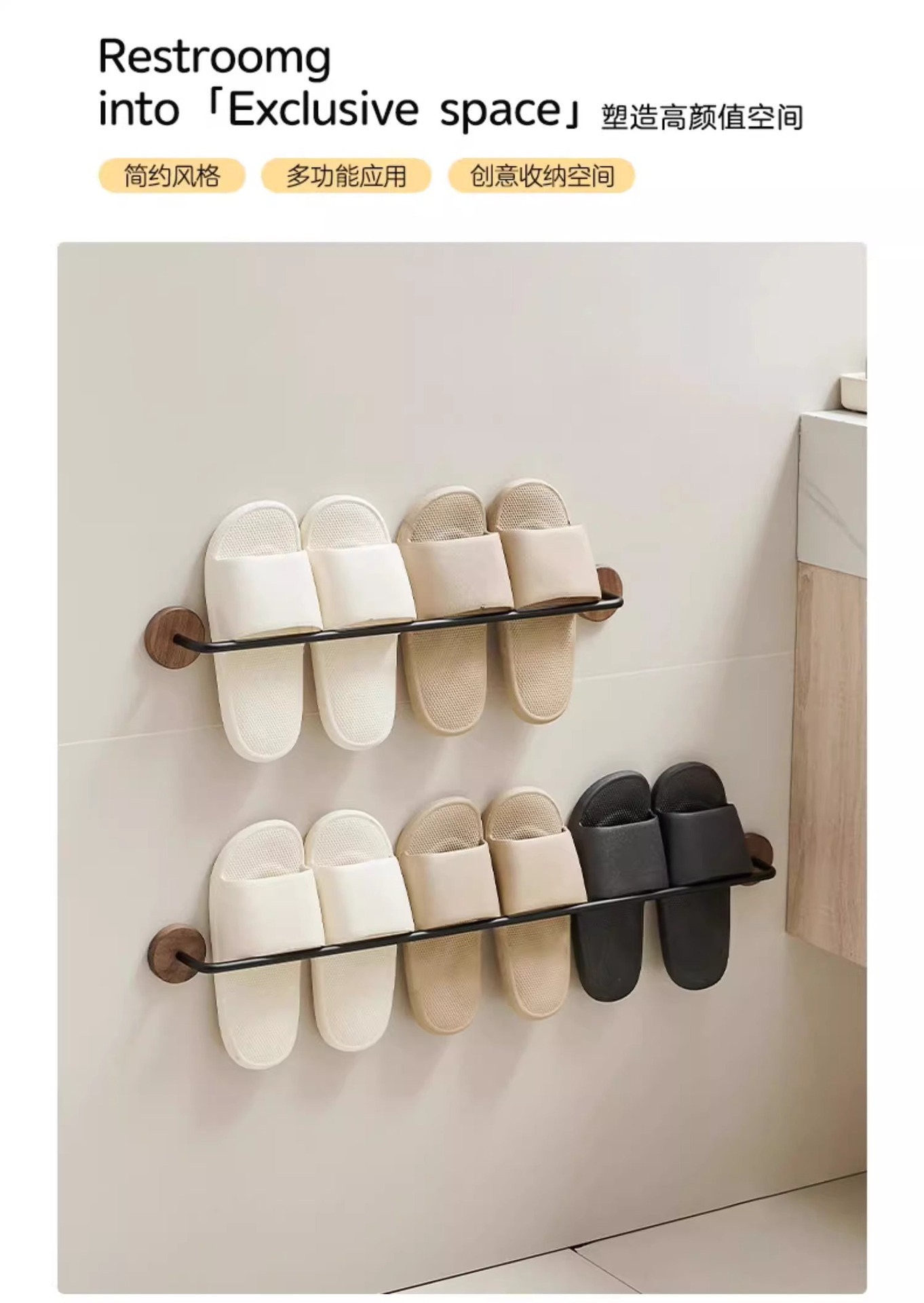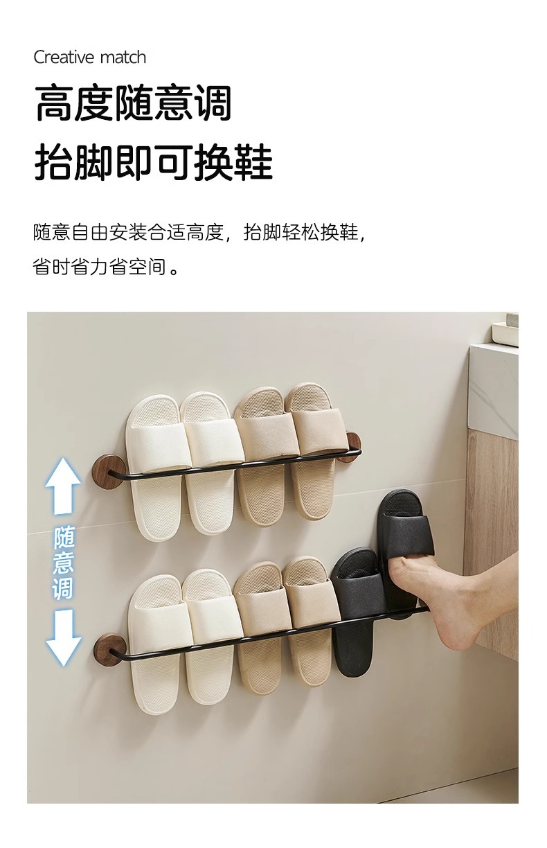 호두 욕실 슬리퍼 랙 펀치가없는 화장실 화장실 신발 랙 스토리지 랙 벽 교수형 도어 리어 스토리지 랙