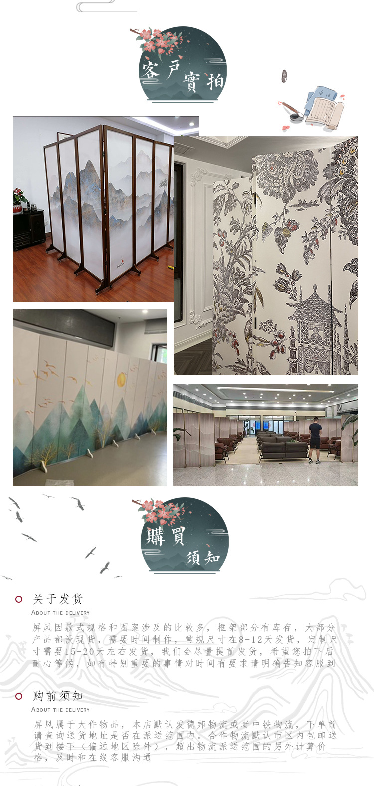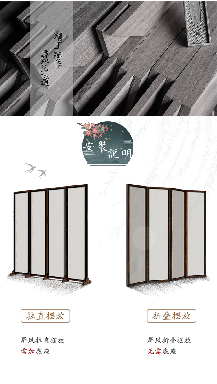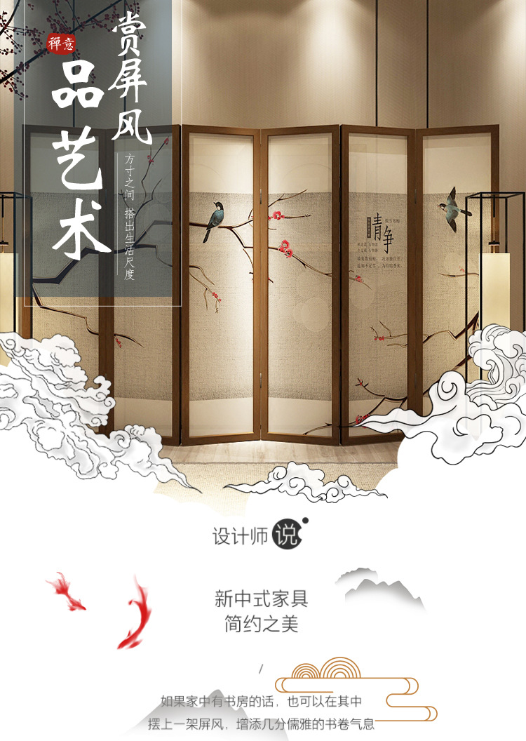 새로운 중국 스타일의 고전 풍경 스크린 파티션 거실 접이식 모바일 호텔 및 B&B 차단 장식 맞춤형 접이식 스크린
