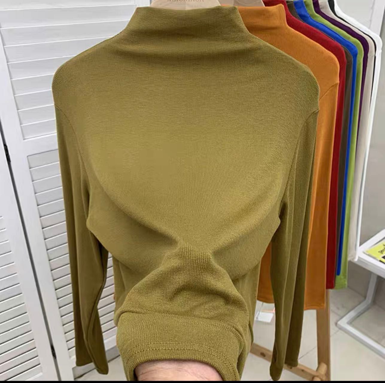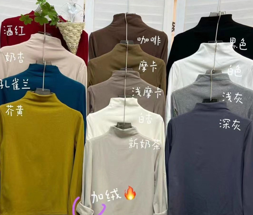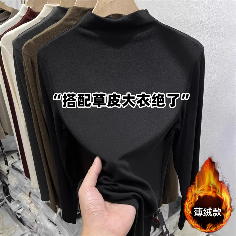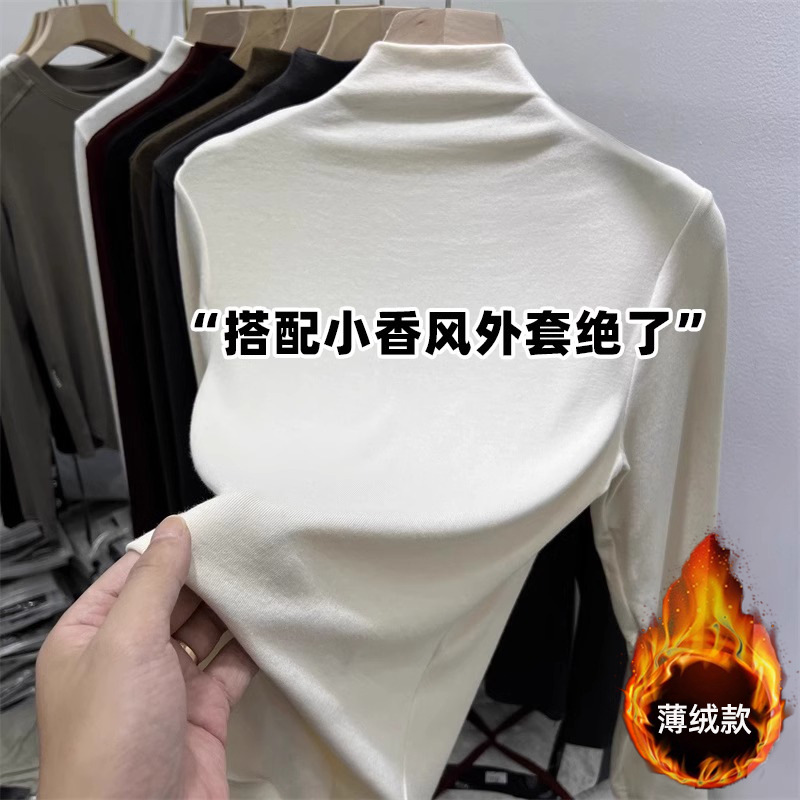 2024秋冬新款加磨毛内搭小立领纯色简约百搭显瘦半高领打底t恤女