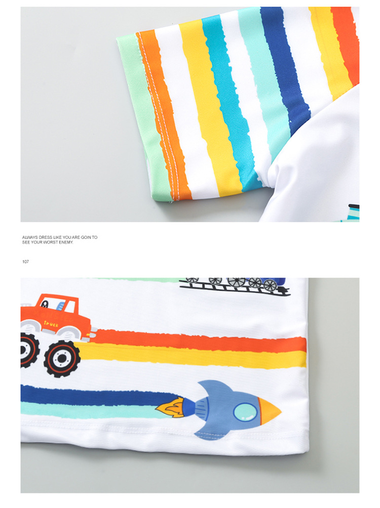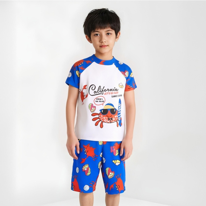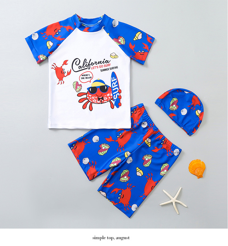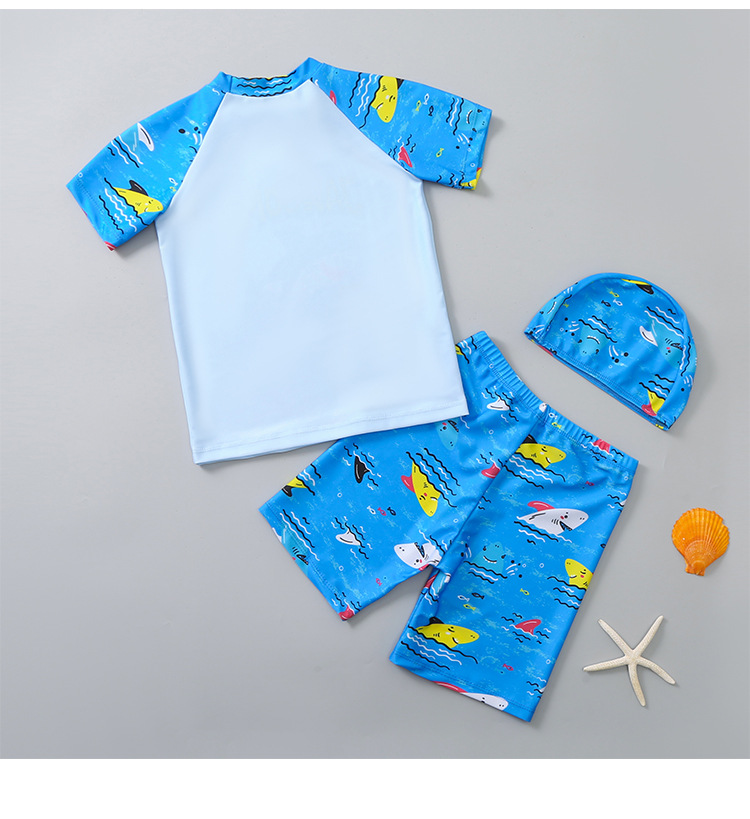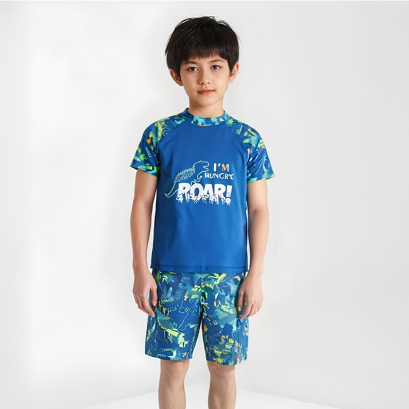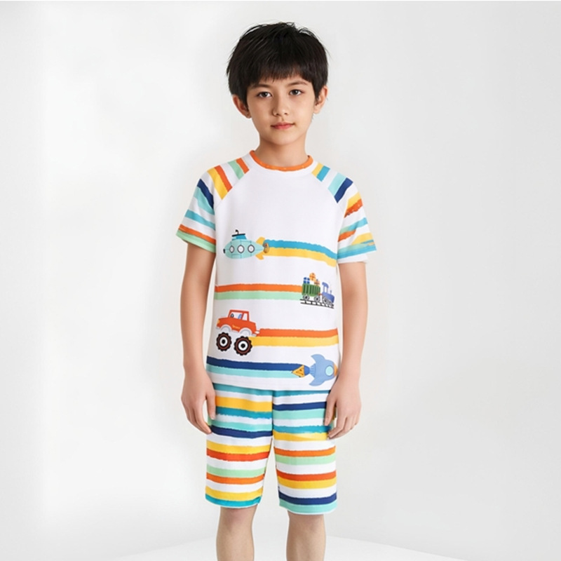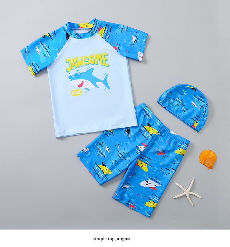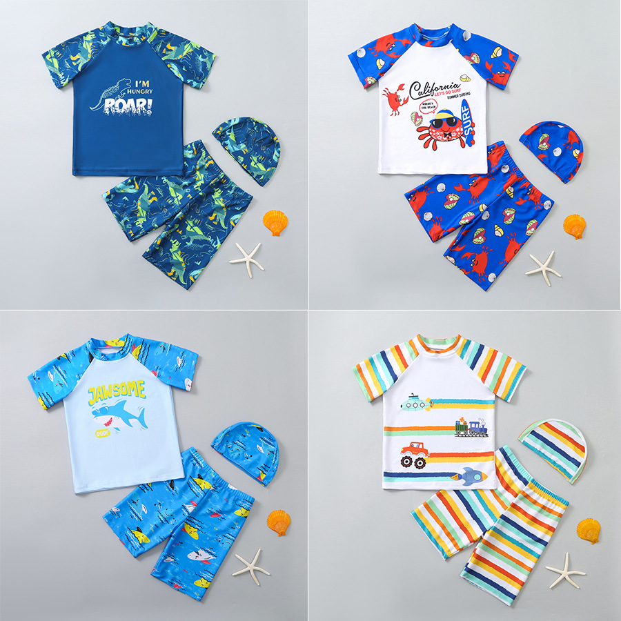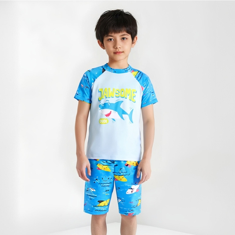 수영복 어린이 수영복 만화 소년 중년 어린이 및 소녀 분할 수영복 인쇄 세트 반팔 빠른 건조스토어 가기