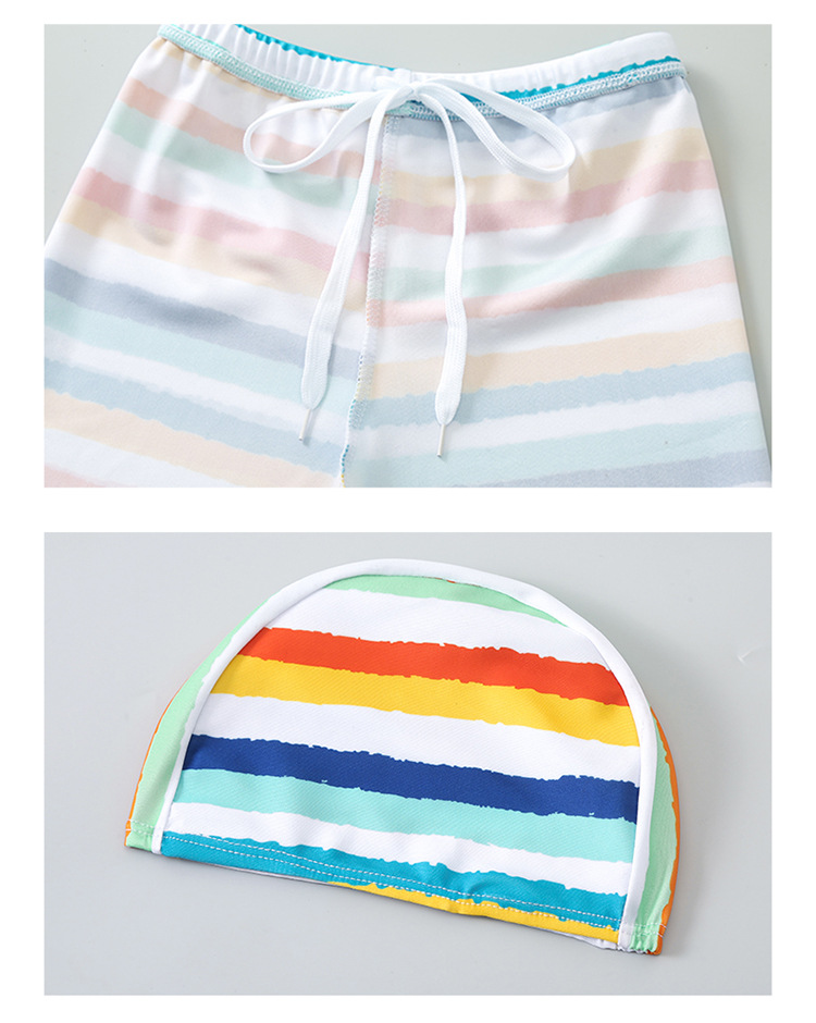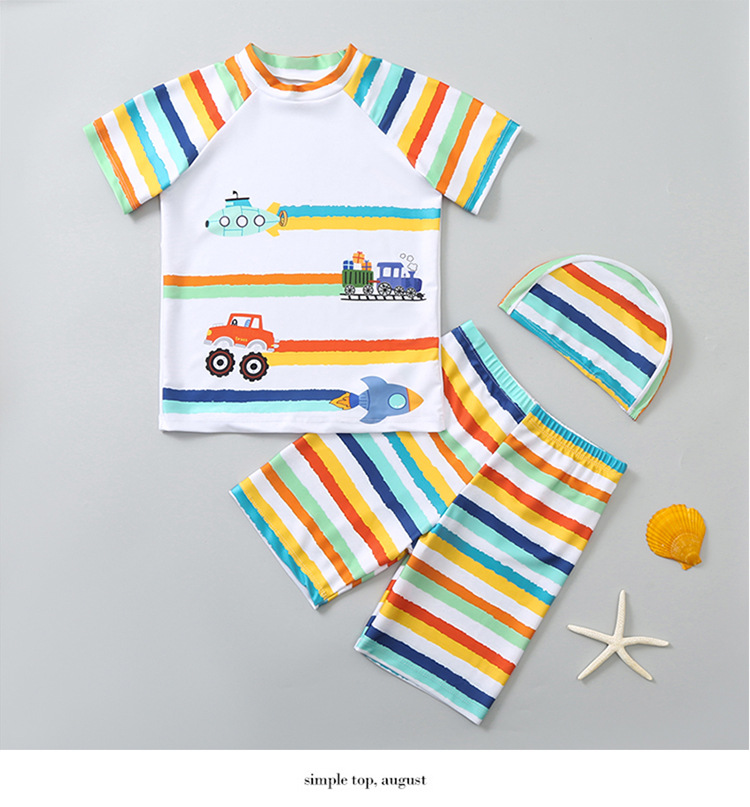 수영복 어린이 수영복 만화 소년 중년 어린이 및 소녀 분할 수영복 인쇄 세트 반팔 빠른 건조