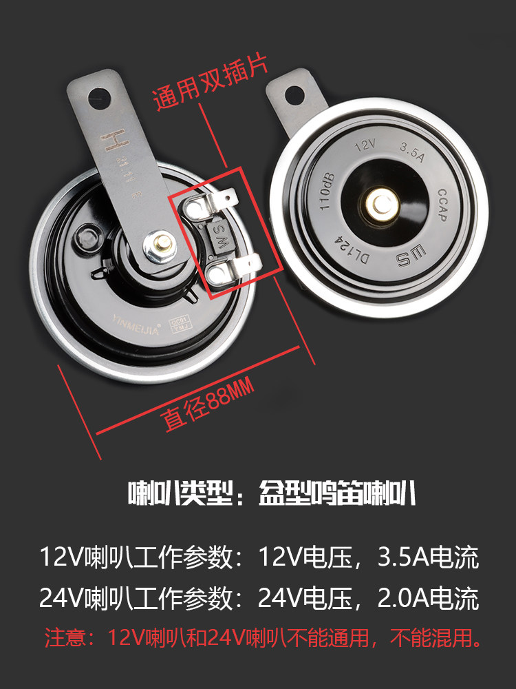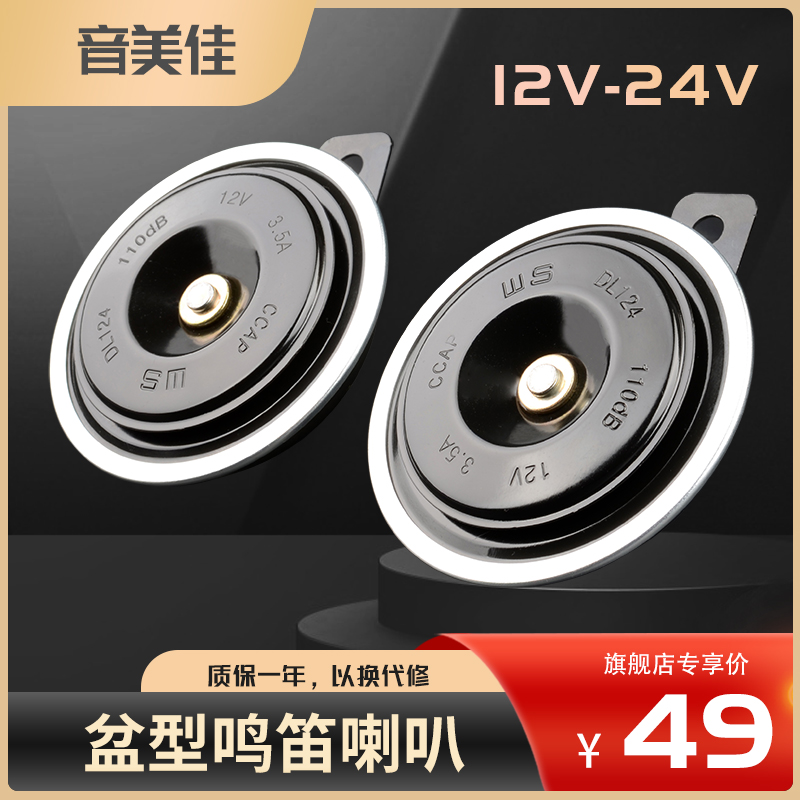 자동차 휘파람 전기 경적 12v 시끄러운 방수 엔지니어링 트럭 굴삭기 경적 24V 오토바이 분지 유형 수정스토어 가기