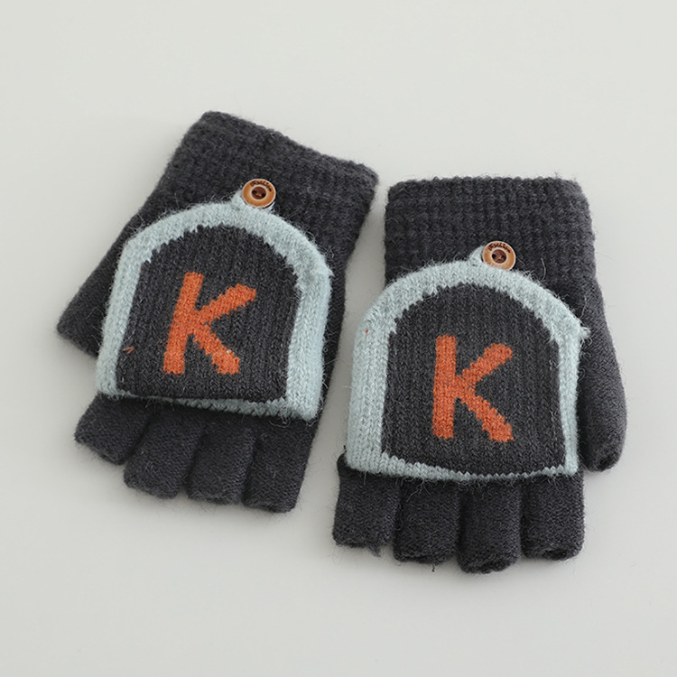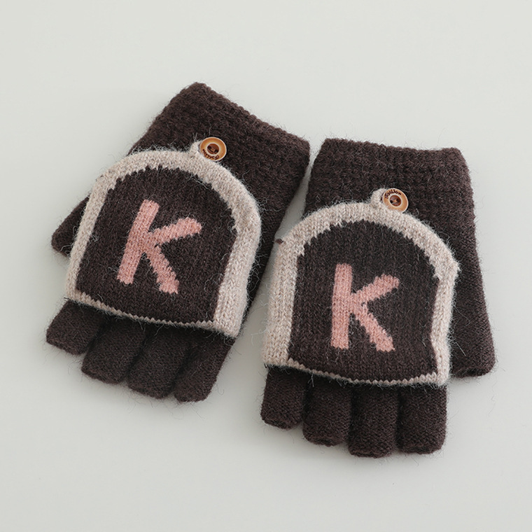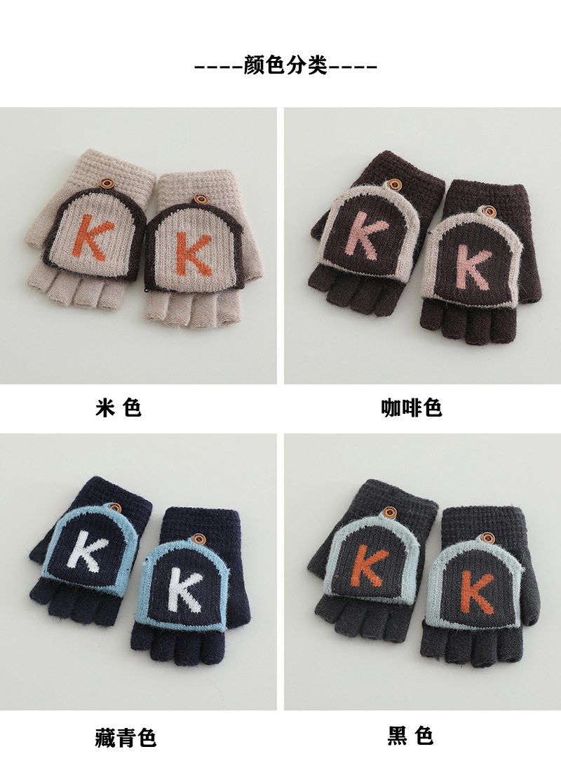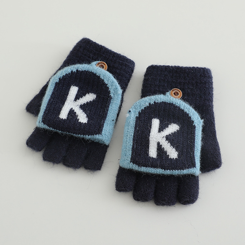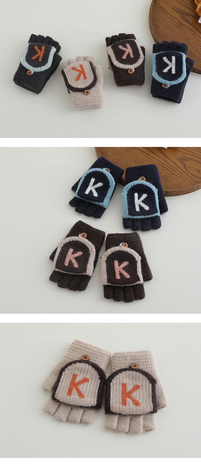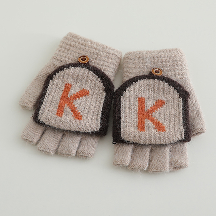 따뜻한 플립 커버 손가락 장갑을 읽는 소년 소녀 아기 K 편지 가을 겨울 니트 방한 장갑