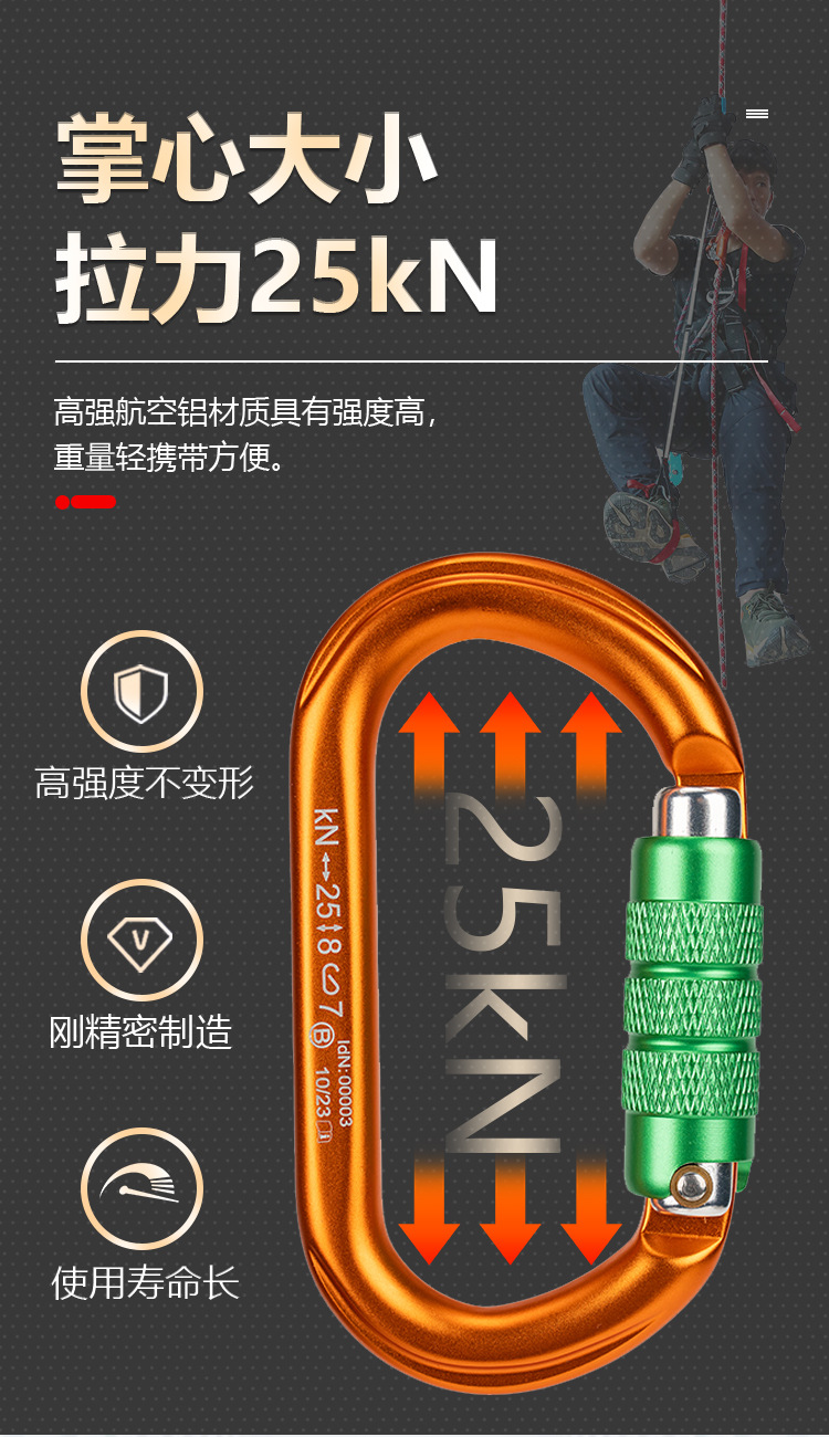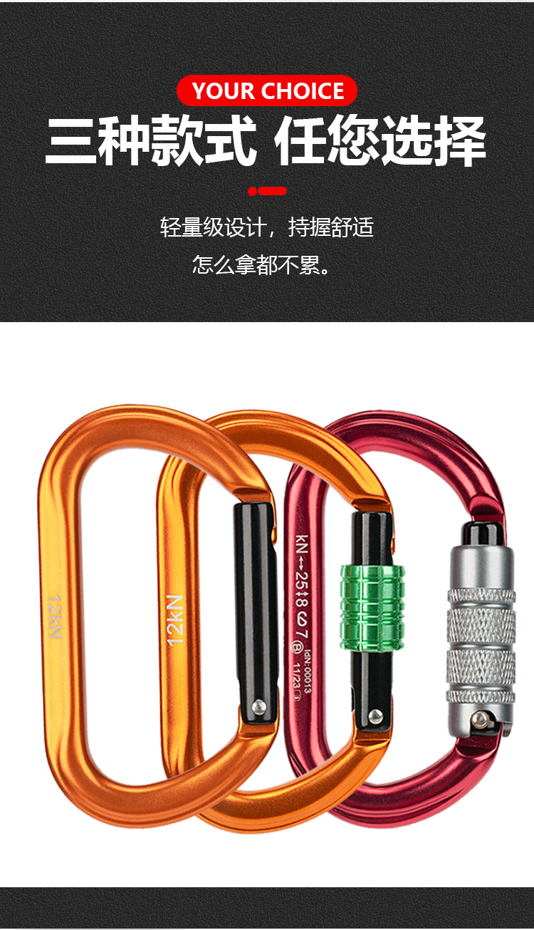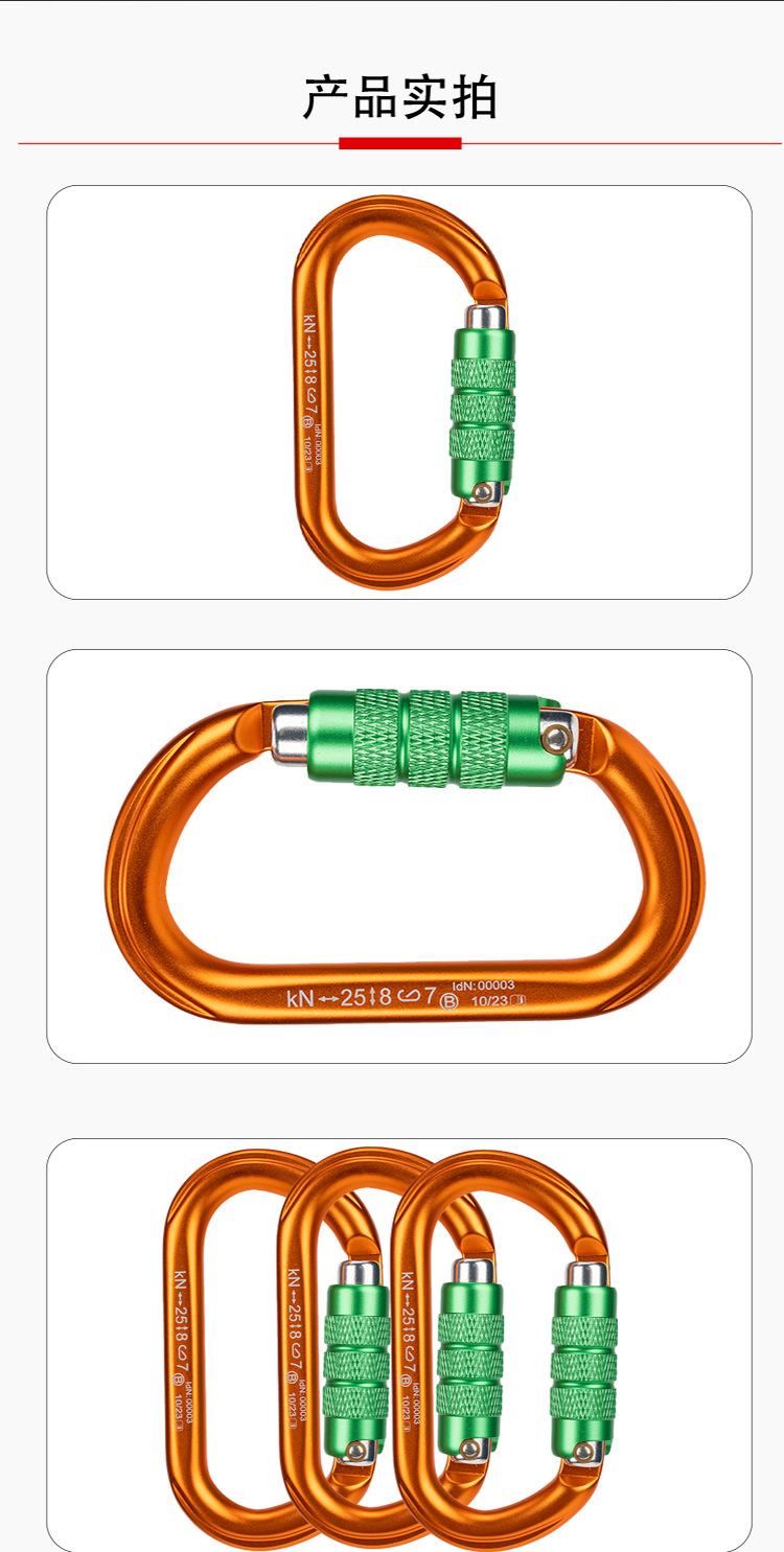 7075 알루미늄 합금 O형 메인락 등산용 잠금장치, 등반용 하중지지 후크, 자동잠금 야외 장비 안전 잠금 버클
